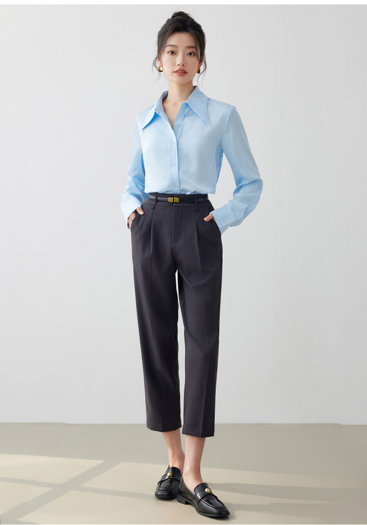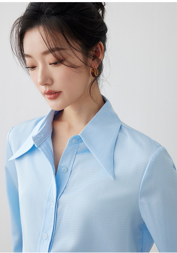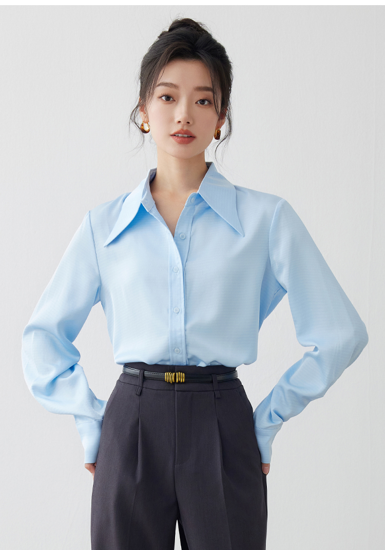 IWY/早春新款蓝色衬衫女气质商务国考公务员面试西装内搭AB195