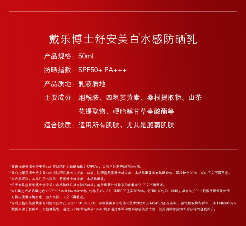 戴乐博士舒安美白水感防晒乳隔离防紫外线防汗清爽面部男女SPF50+