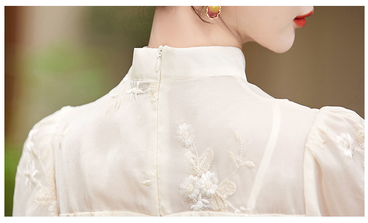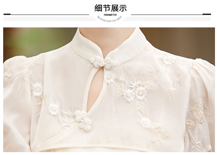 中式改良旗袍上衣女春秋中国风复古立领气质盘扣印花刺绣长袖衬衫 YX2051