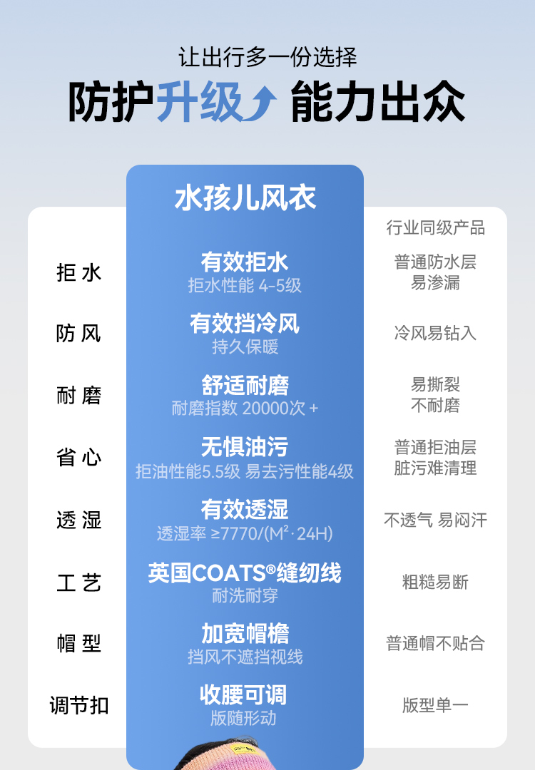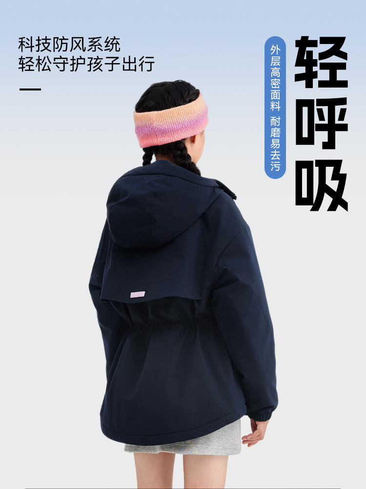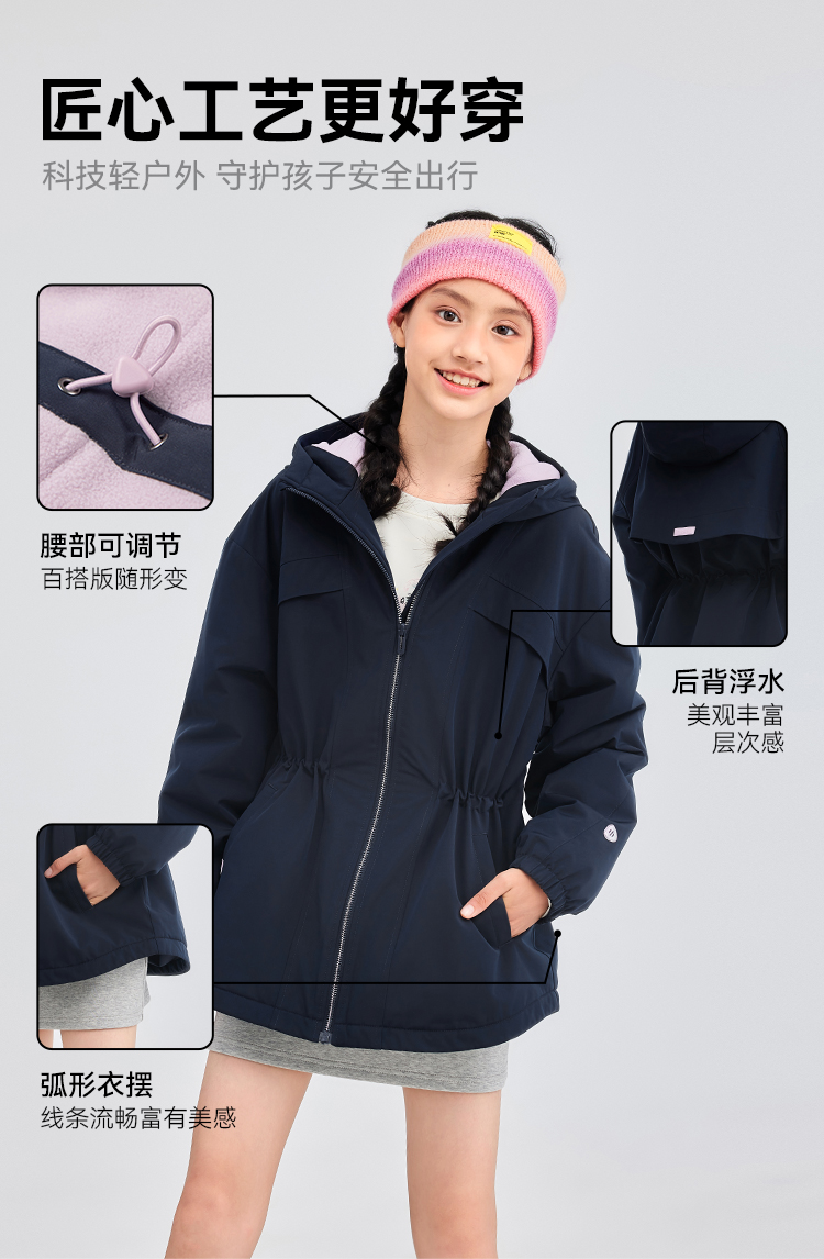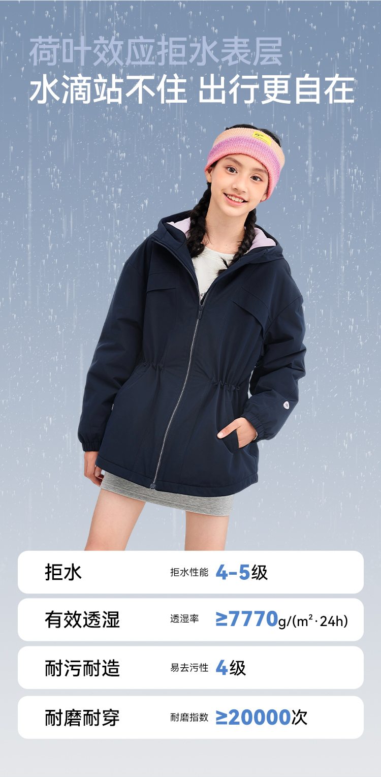 水孩儿童装女童外套厚2025秋季新品亲子装防泼水透湿风衣连帽上衣
