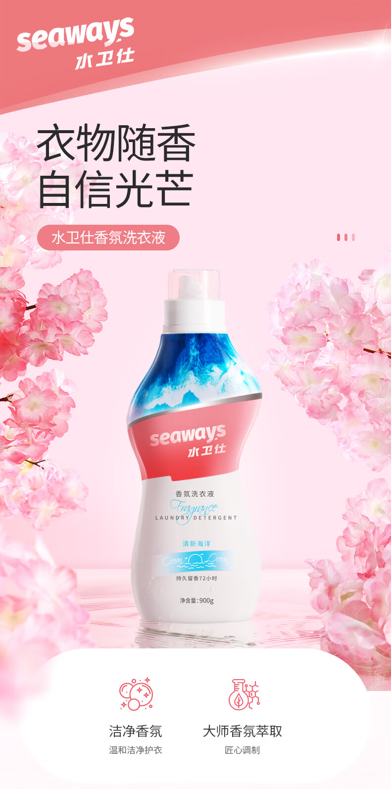 水卫仕 留香洗衣液(淡粉樱花)900g/瓶