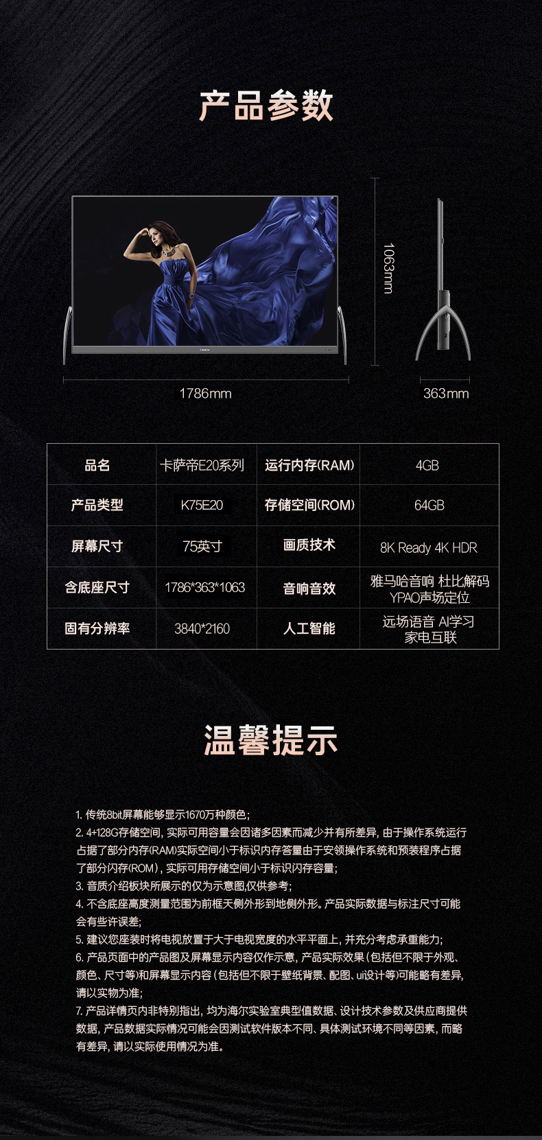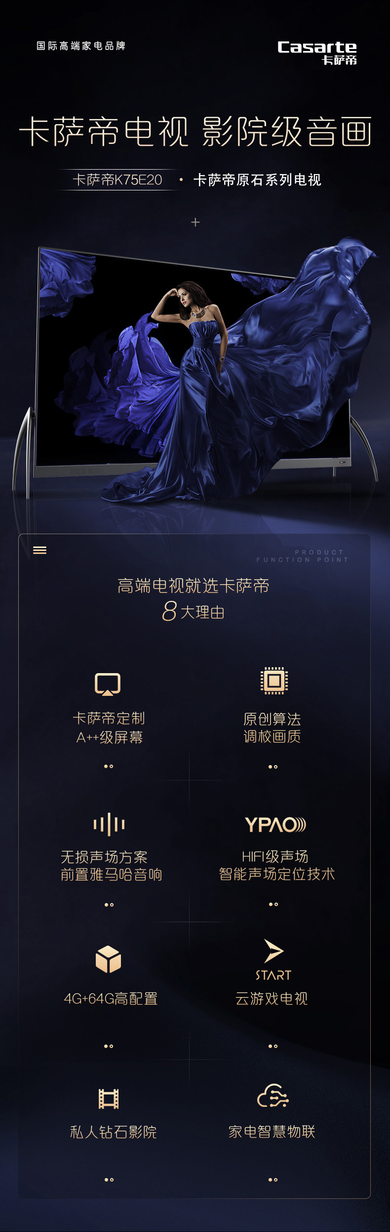 卡萨帝(Casarte) 原石系列K75E20 75英寸超薄智慧全面屏4K高清云游戏电视 K75E20