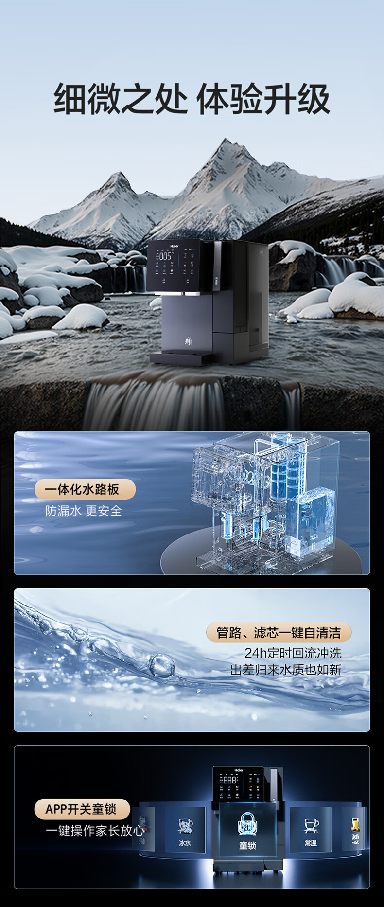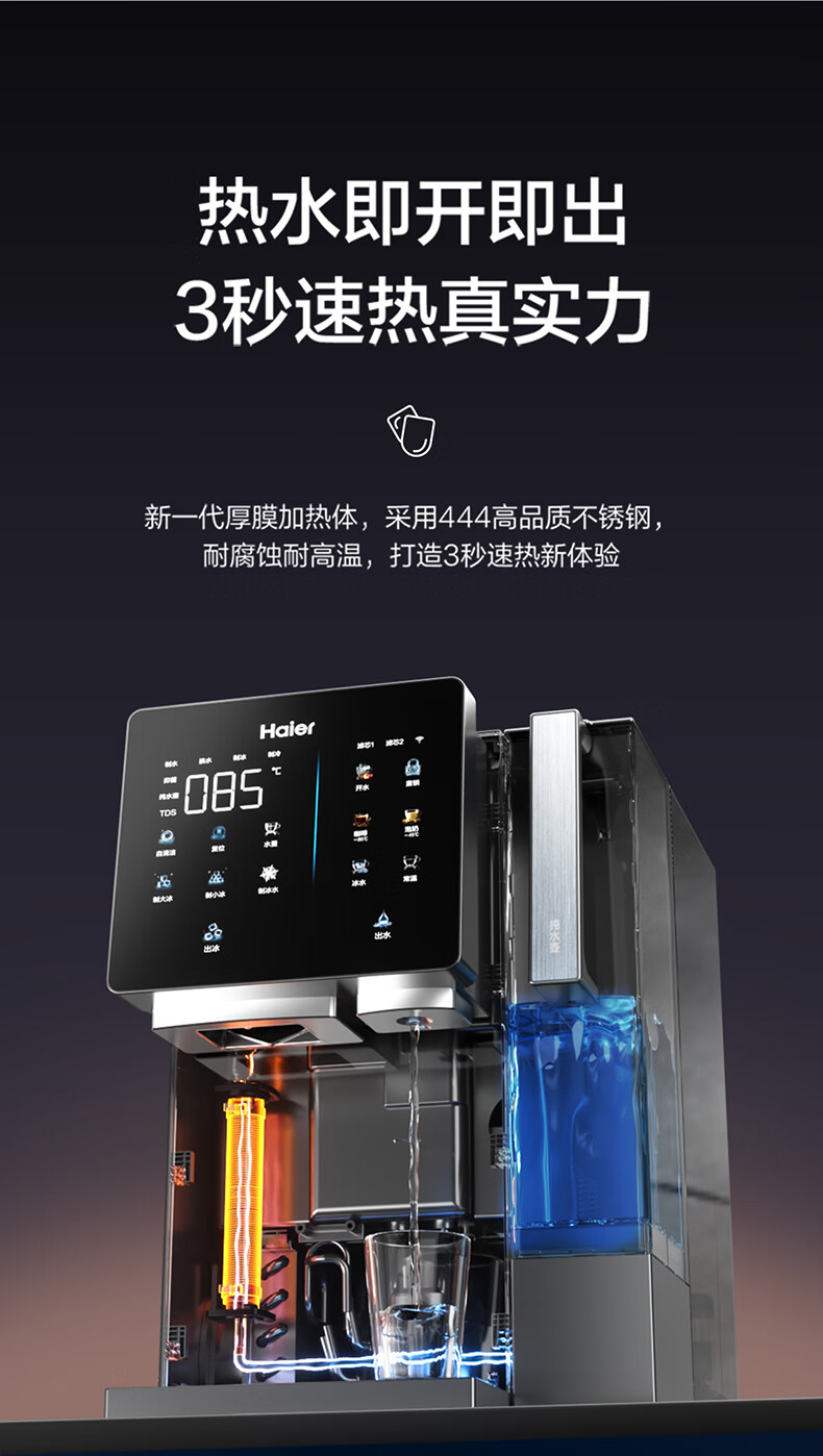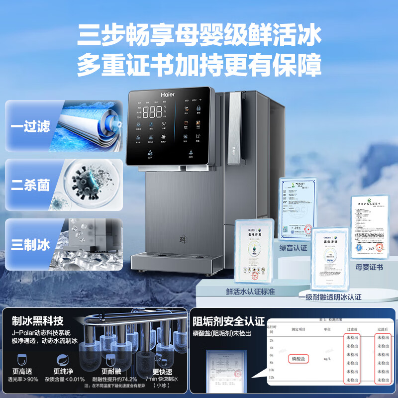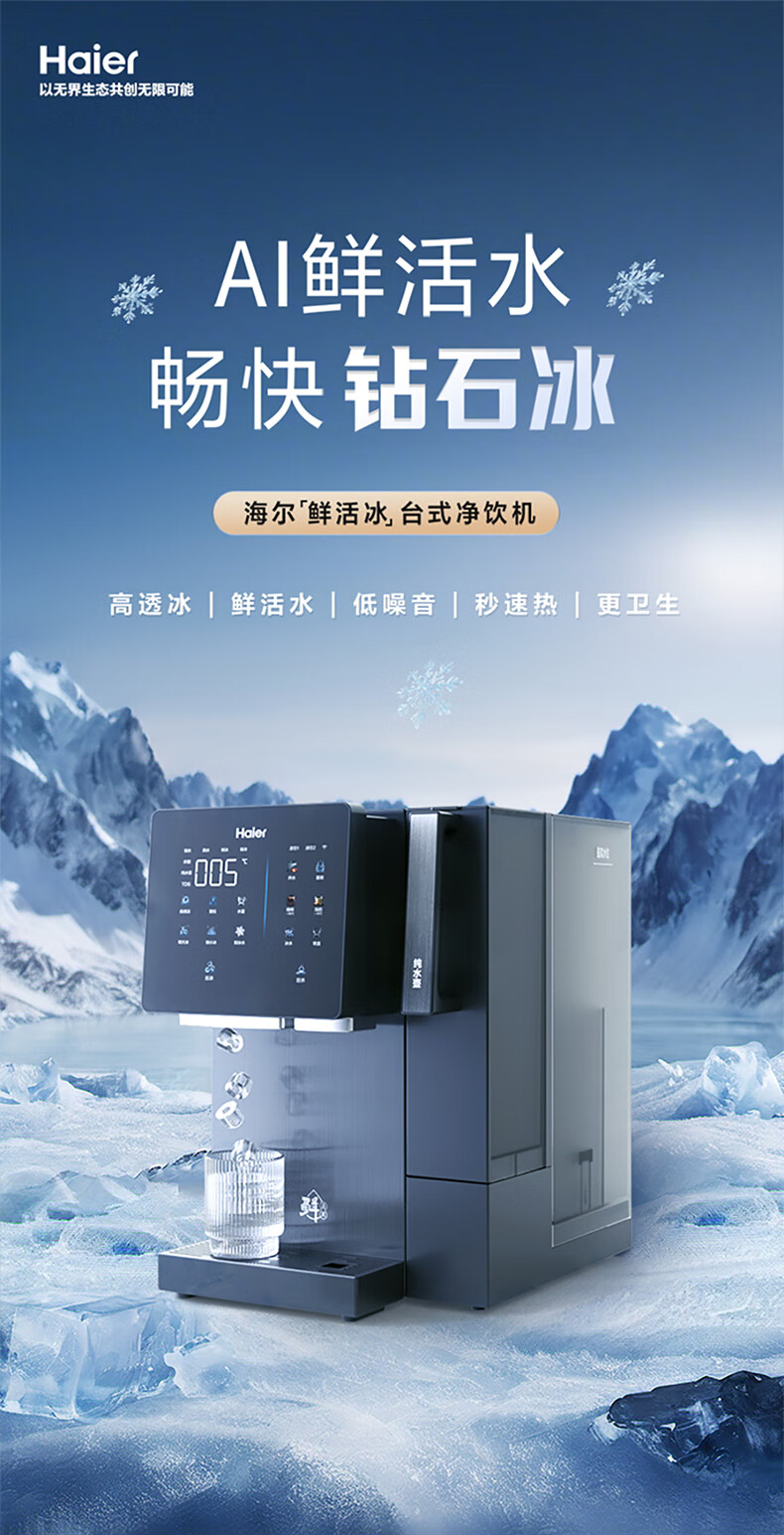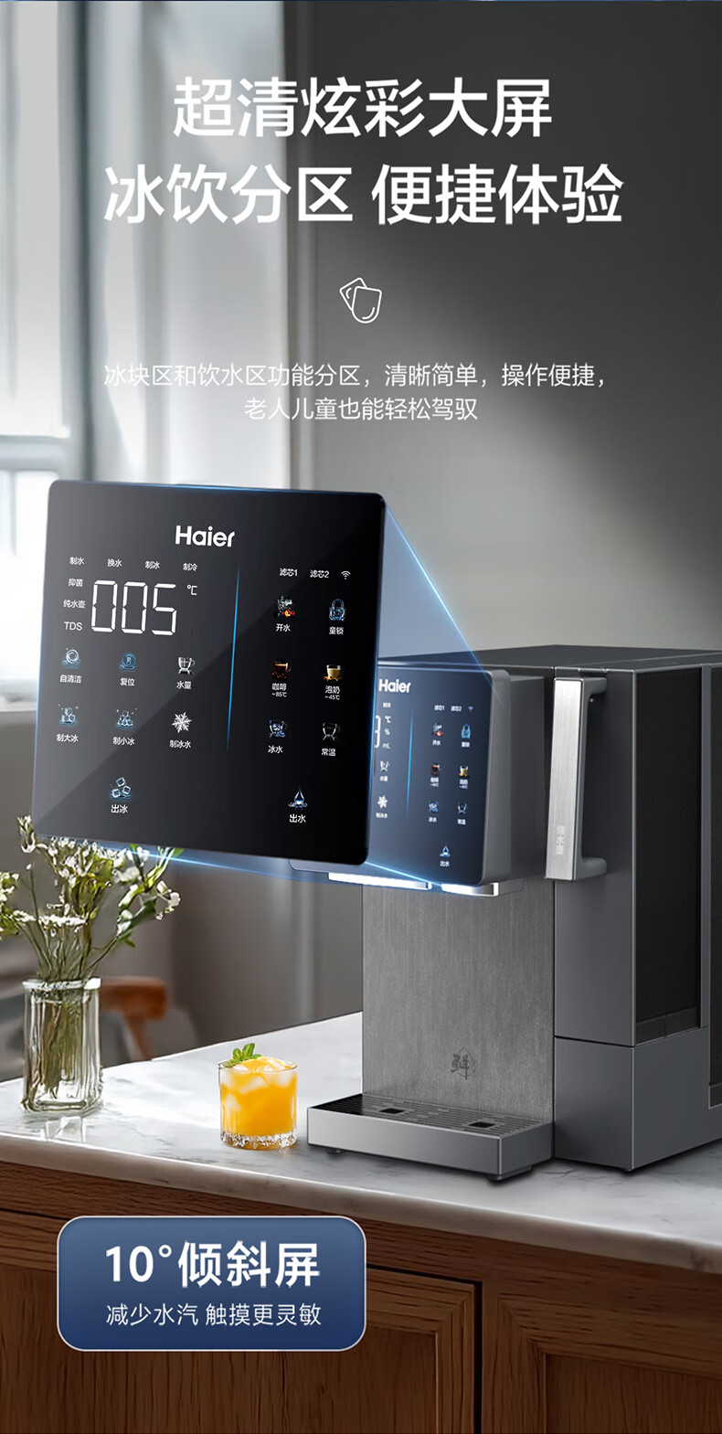 海尔(Haier)鲜活冰净水器鲜活水制冰机冷热一体台式净饮机 RO反渗透免安装直饮净水机 HTS75-2LXZB11U1