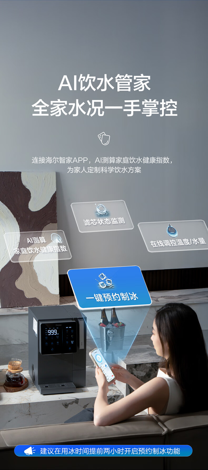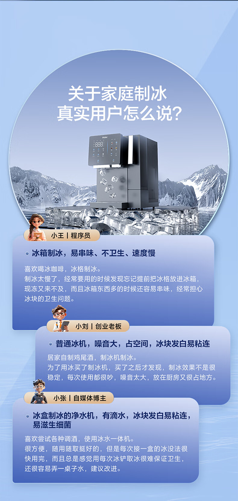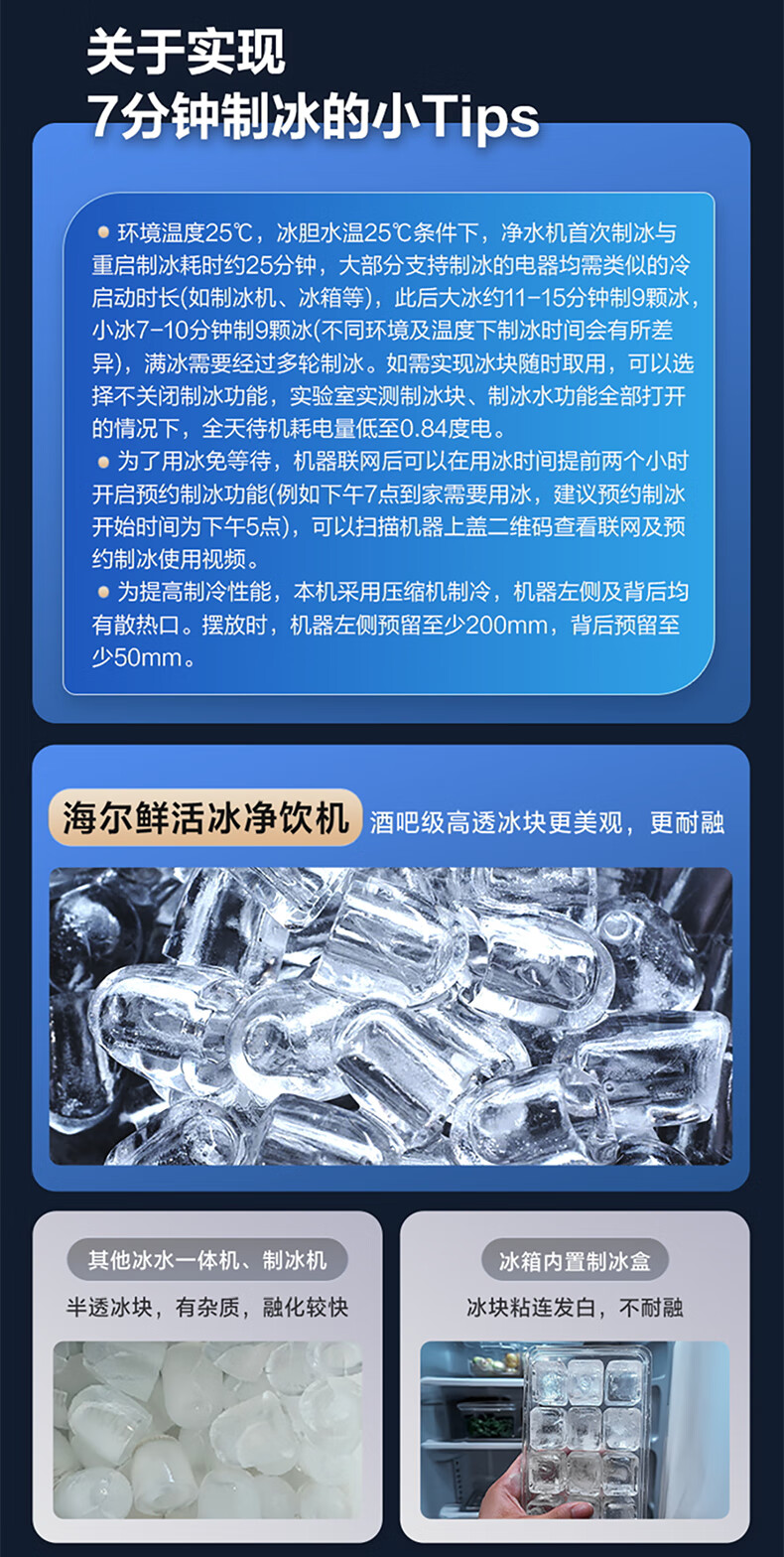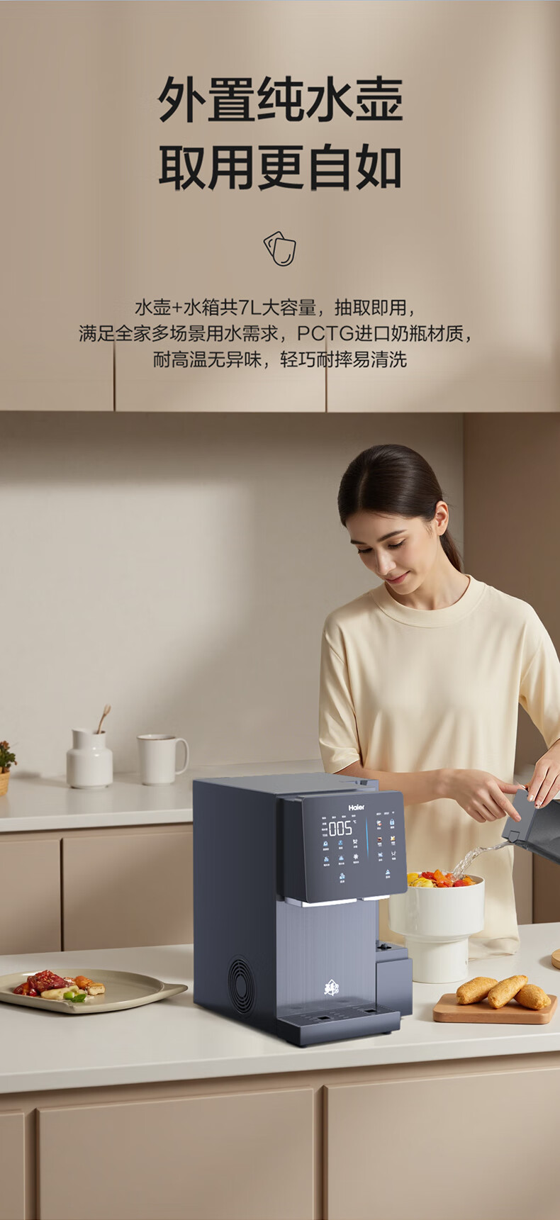 海尔(Haier)鲜活冰净水器鲜活水制冰机冷热一体台式净饮机 RO反渗透免安装直饮净水机 HTS75-2LXZB11U1