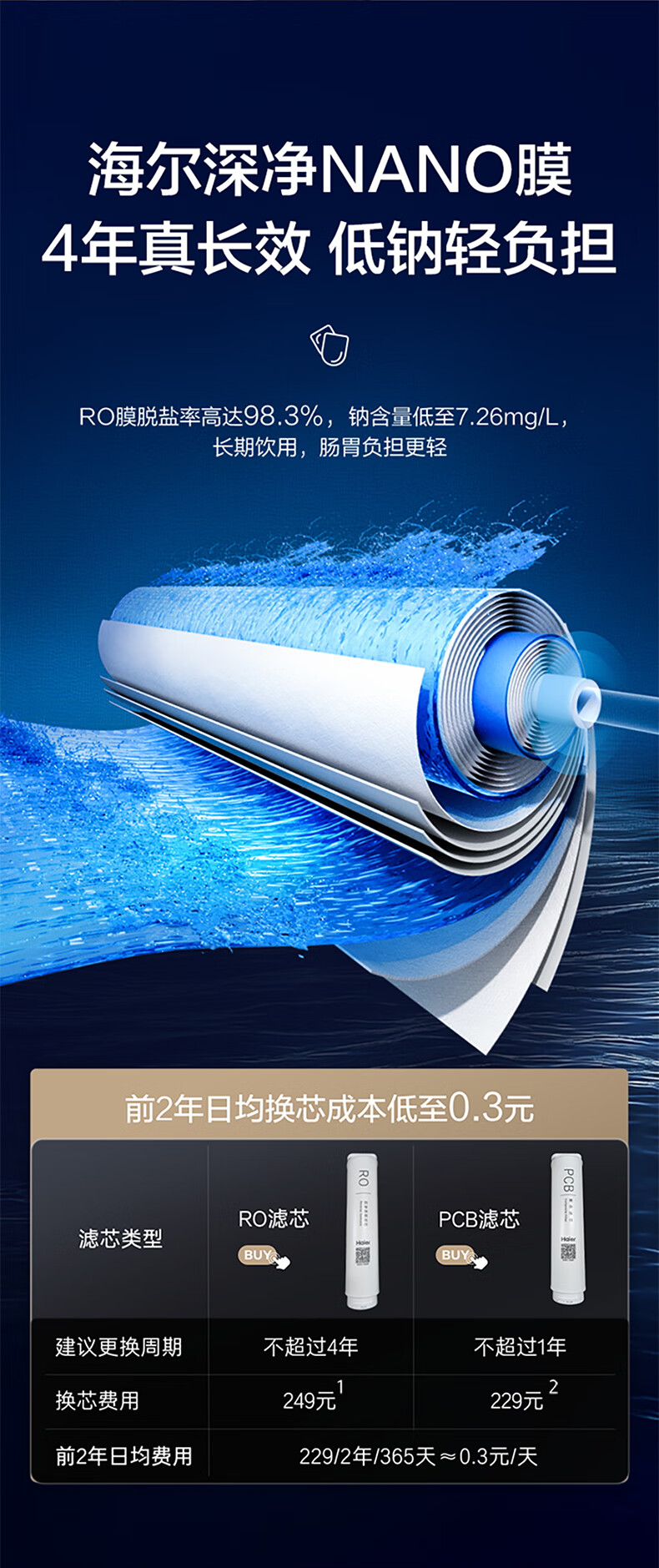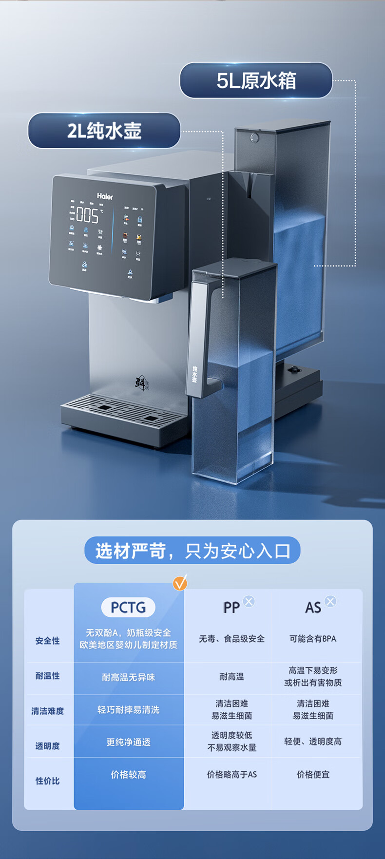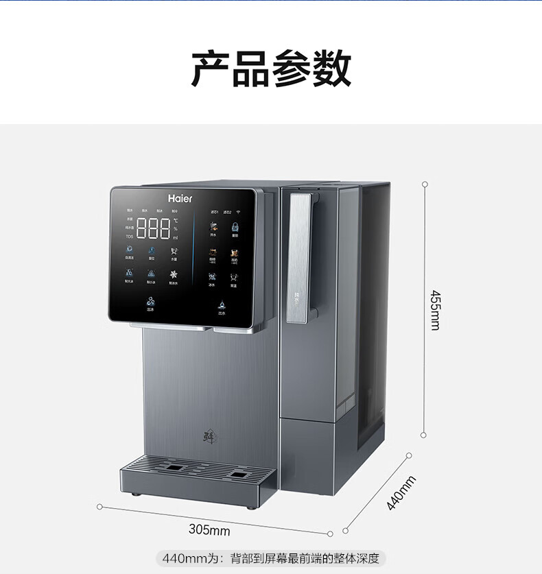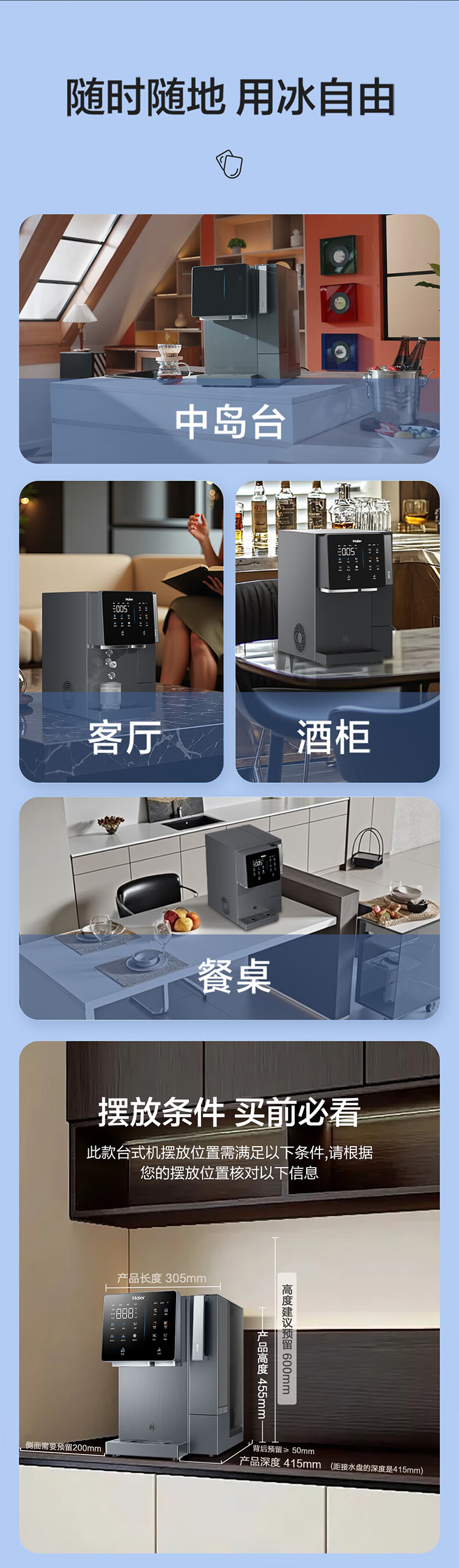 海尔(Haier)鲜活冰净水器鲜活水制冰机冷热一体台式净饮机 RO反渗透免安装直饮净水机 HTS75-2LXZB11U1