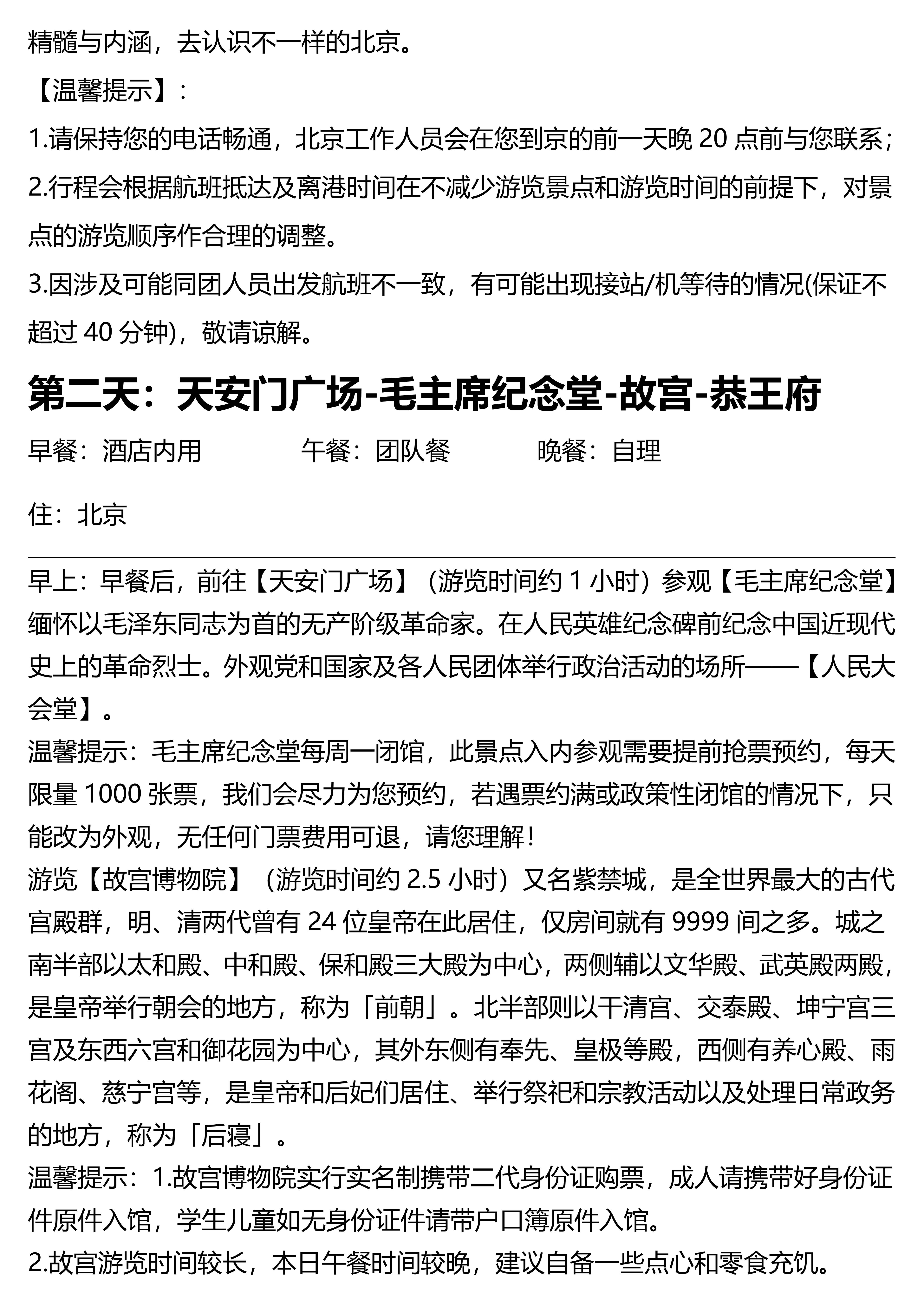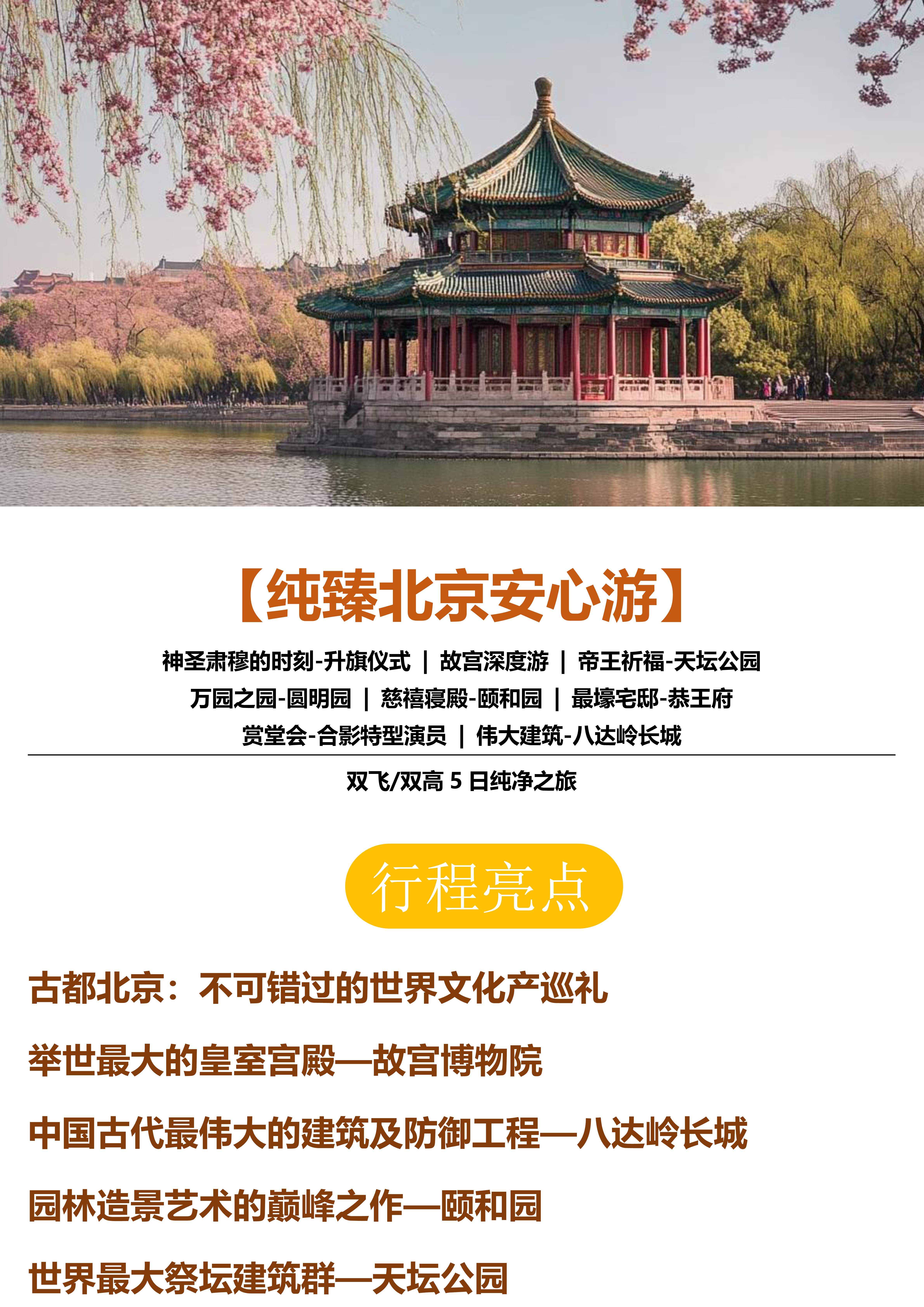 【纯臻北京安心游】双飞/双高5日纯净之旅
