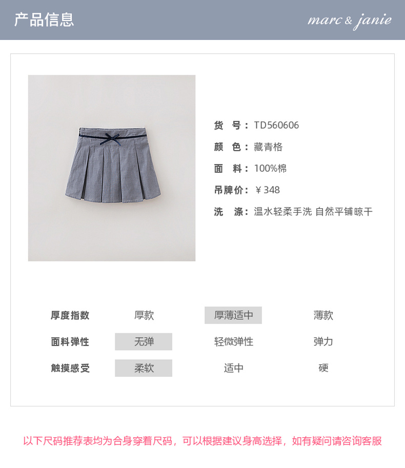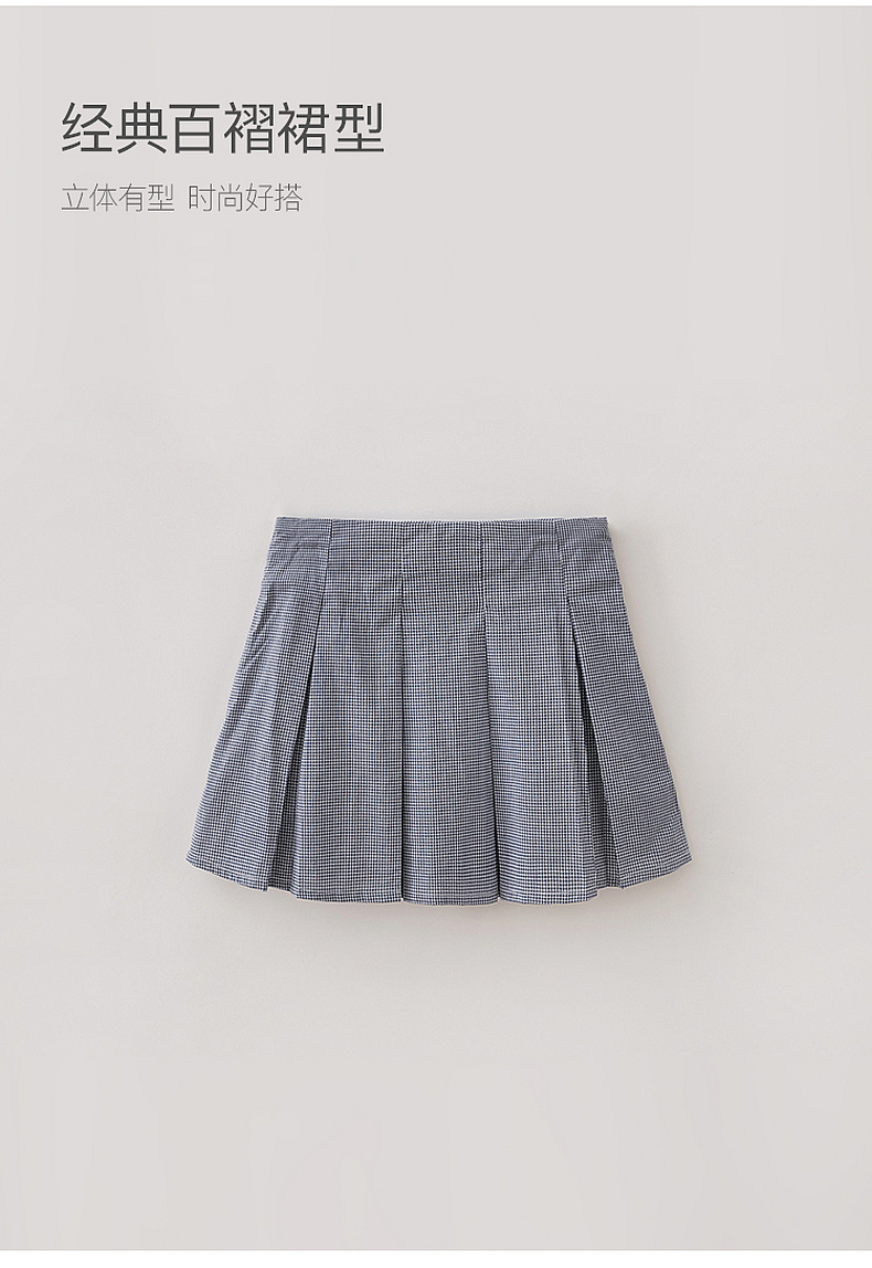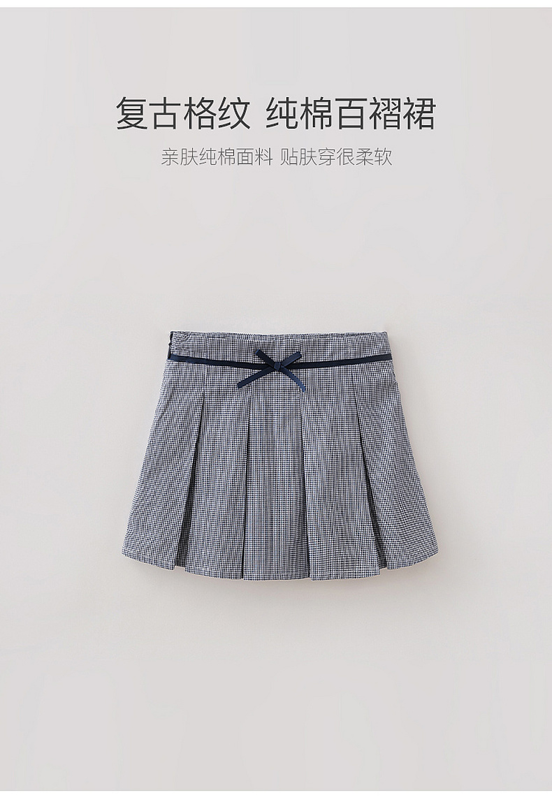 马克珍妮复古格纹女童Miu系纯棉百褶裙2026年夏装新款560606
