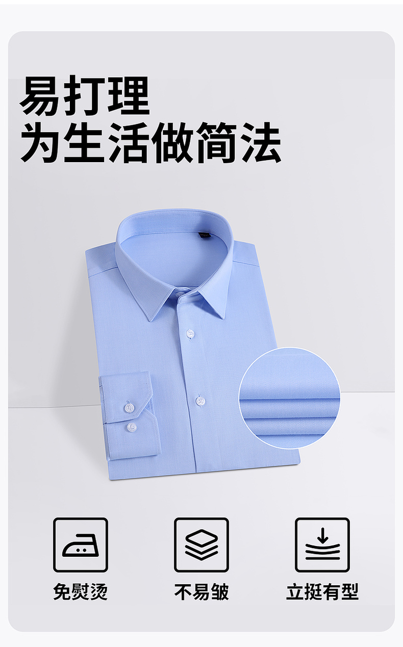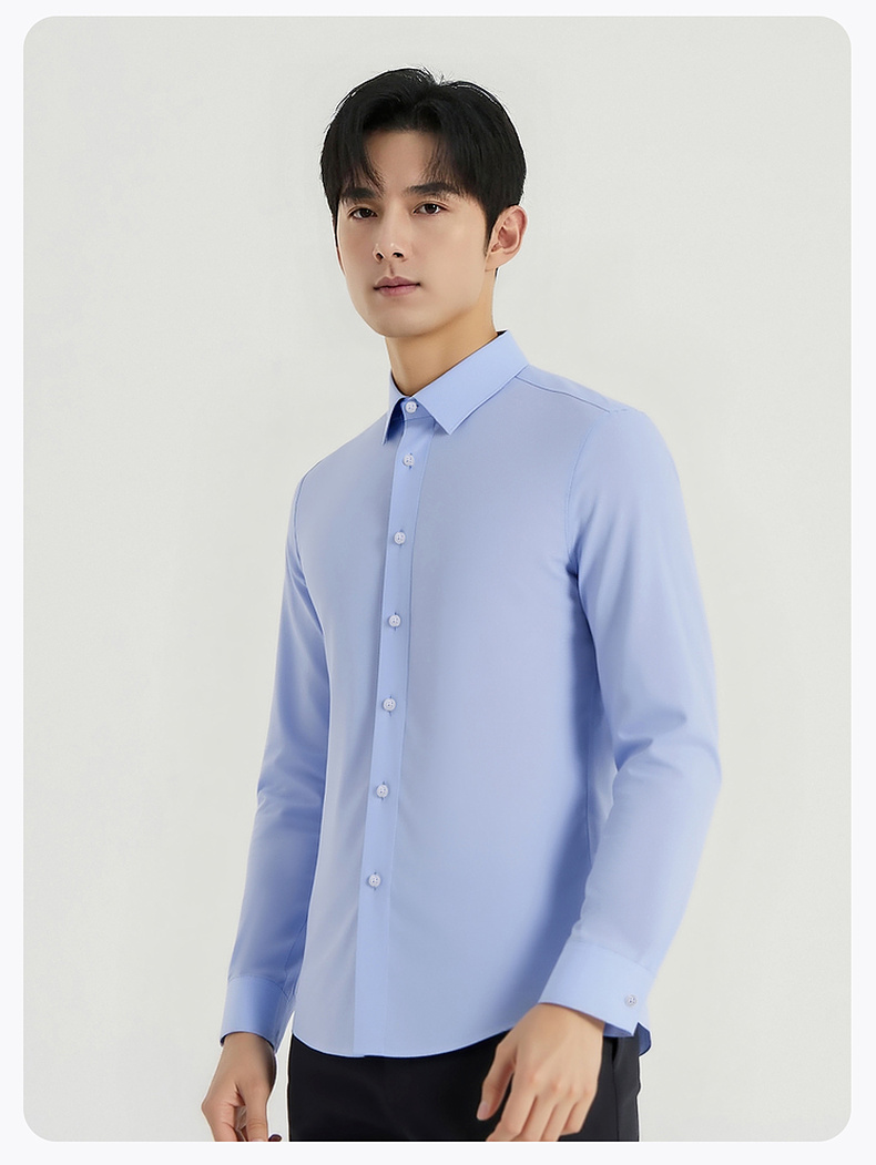 【100%棉】圣得西2025秋季新款男士抗皱免烫正装通勤纯色长袖衬衫