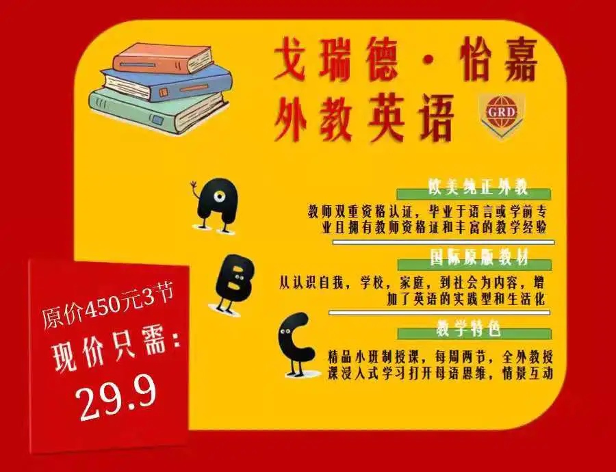 【戈瑞德·怡嘉·欧美纯外教英语@净月】29.9抢3次外教课,带孩子提高英语思维,练纯正口语。
