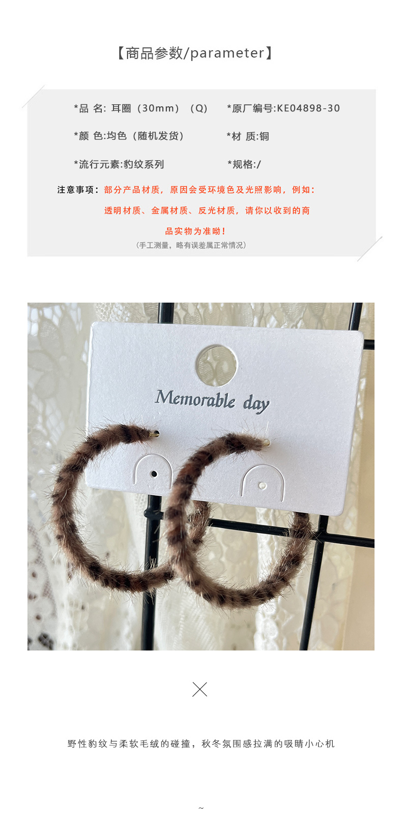 复古港风豹纹大圈圈耳环女秋冬季素圈耳饰耳环(30mm)-纪念日百货门店同款168197927