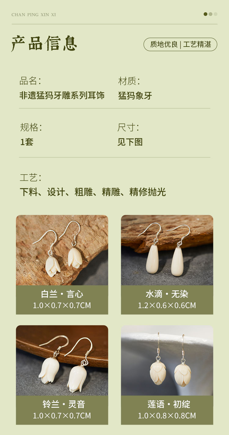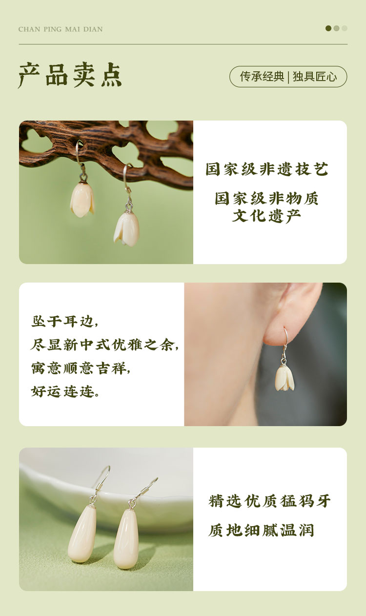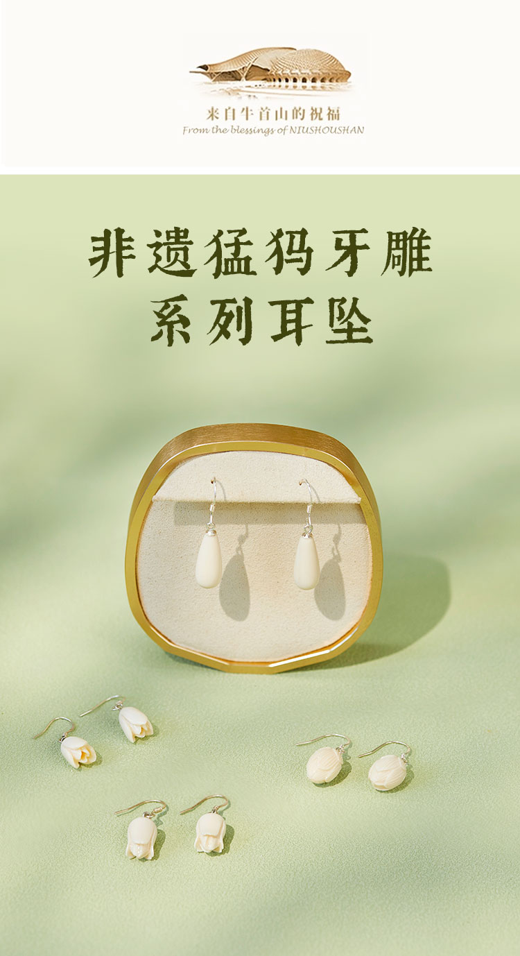 牛首山文创非遗猛犸牙雕系列耳坠耳环女高级感耳饰限量南京纪念品