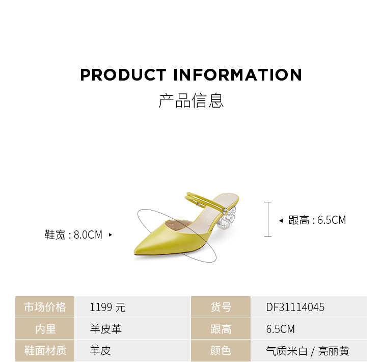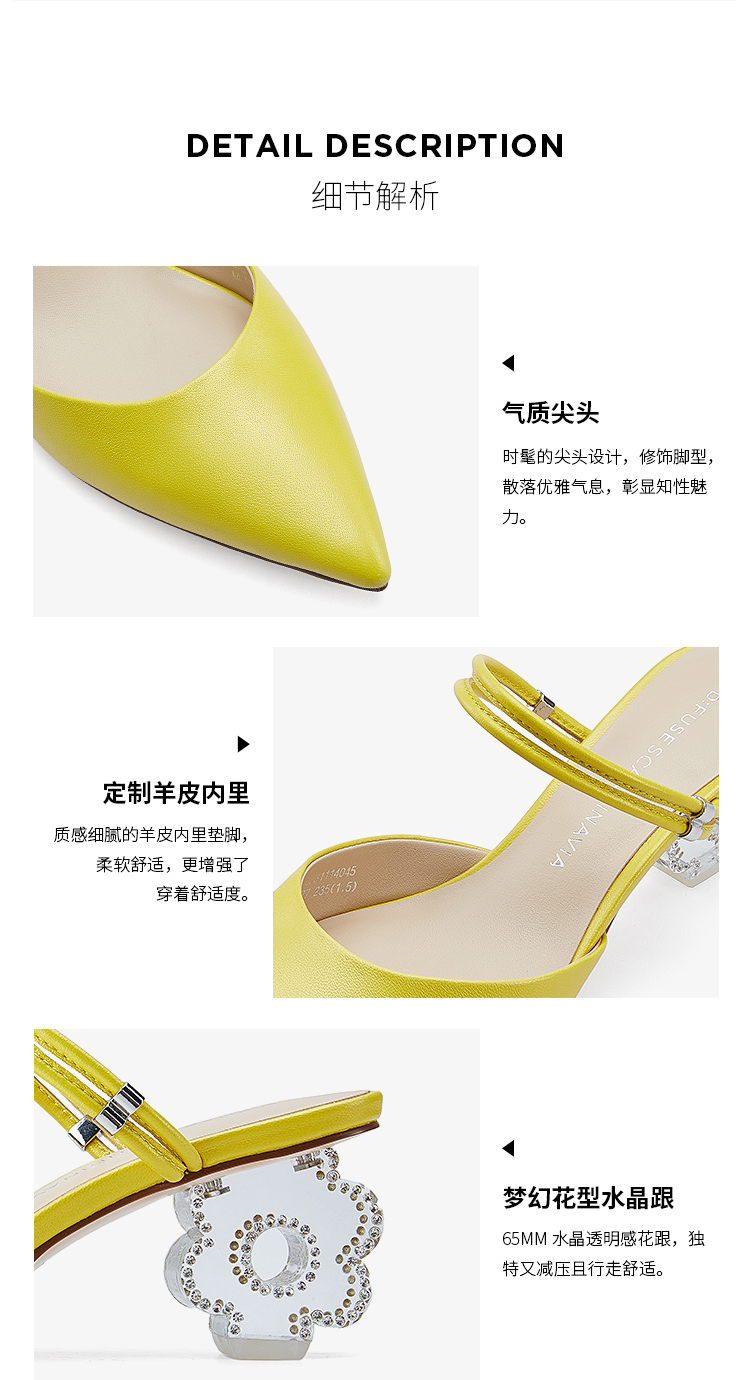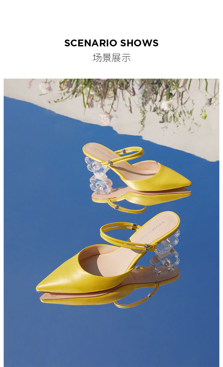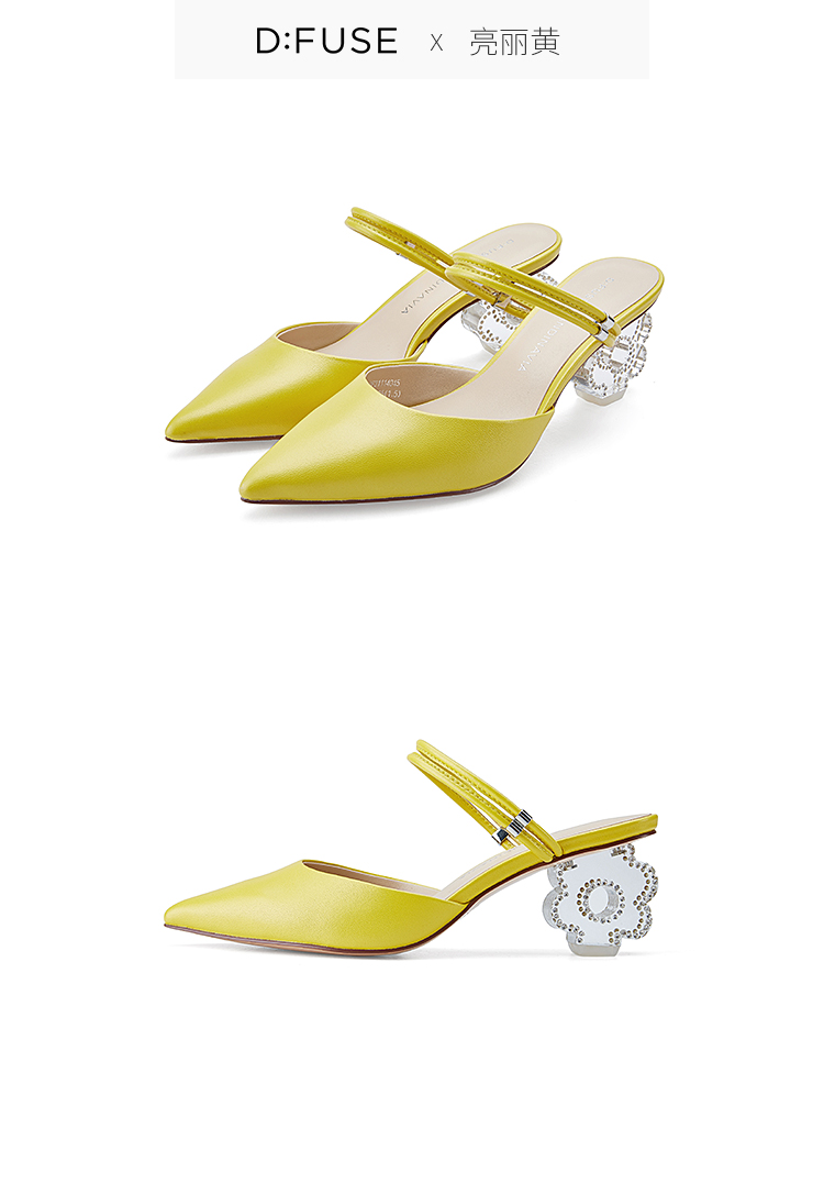 DFuse迪芙斯2023春季新款羊皮仙女水晶跟包头拖鞋单鞋DF31114045