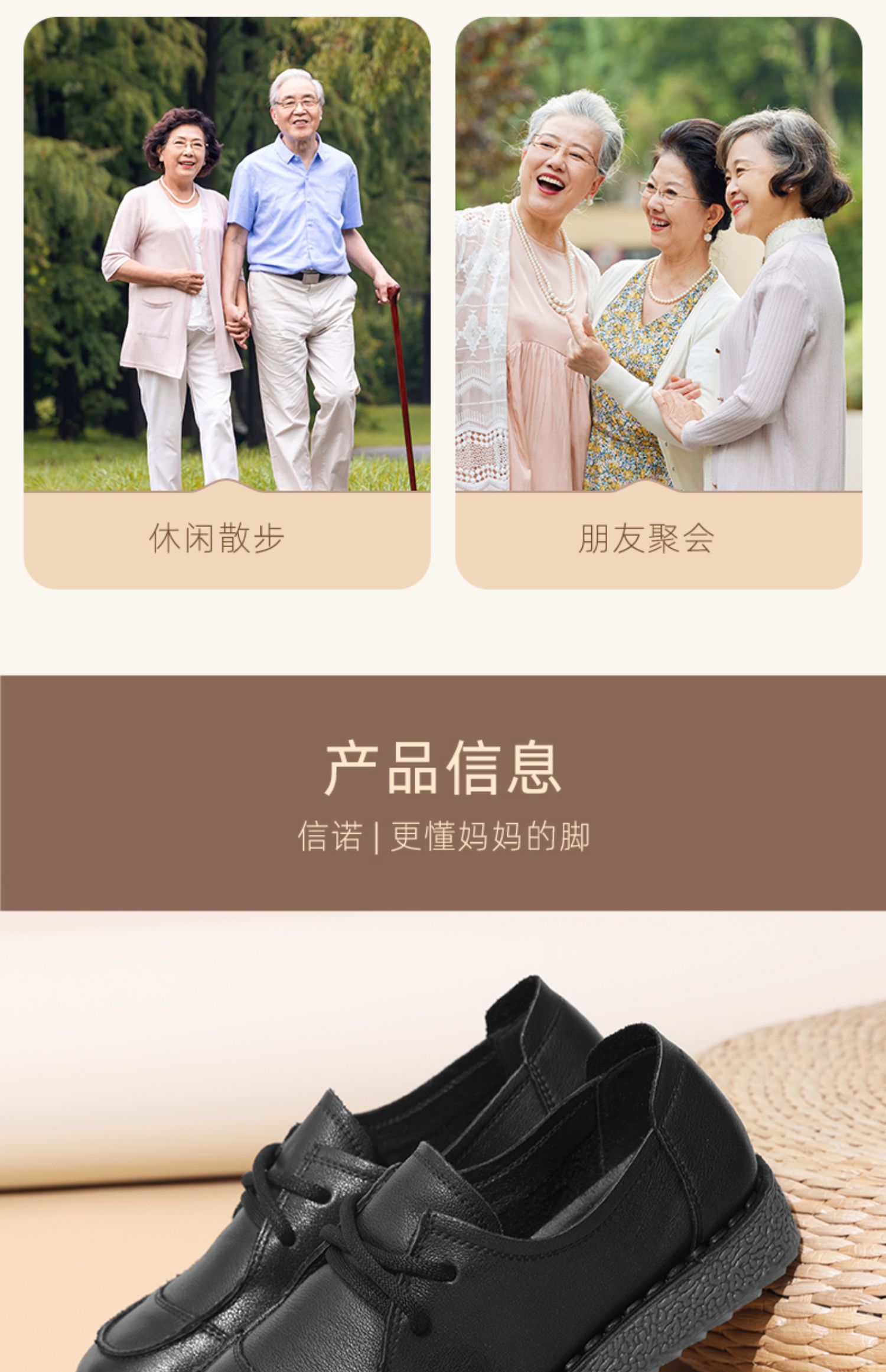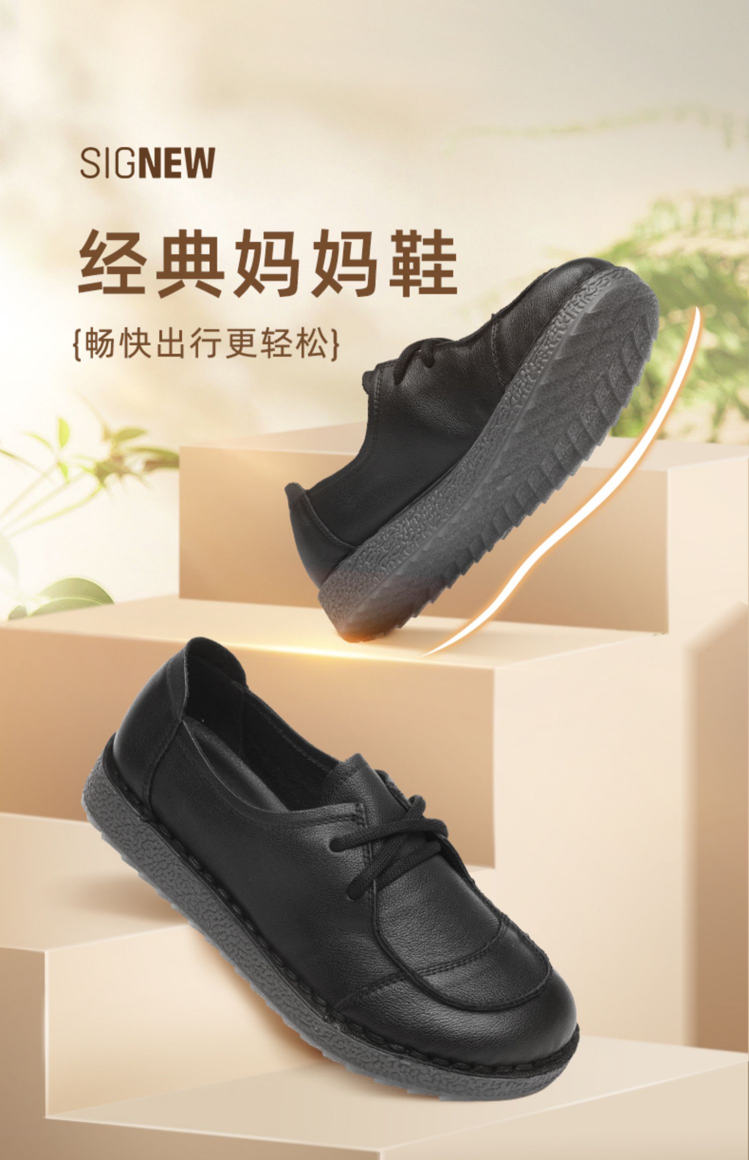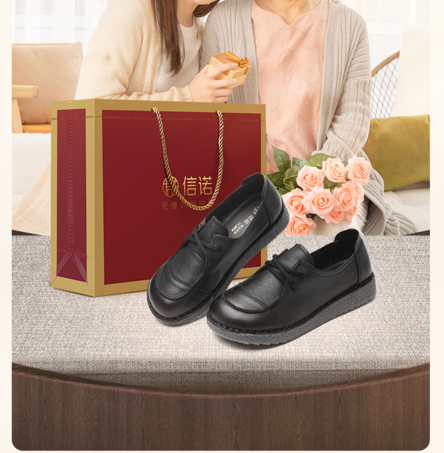信诺真皮舒适妈妈鞋2025新款春秋款超软平底中老年女单鞋休闲皮鞋X5C032-22
