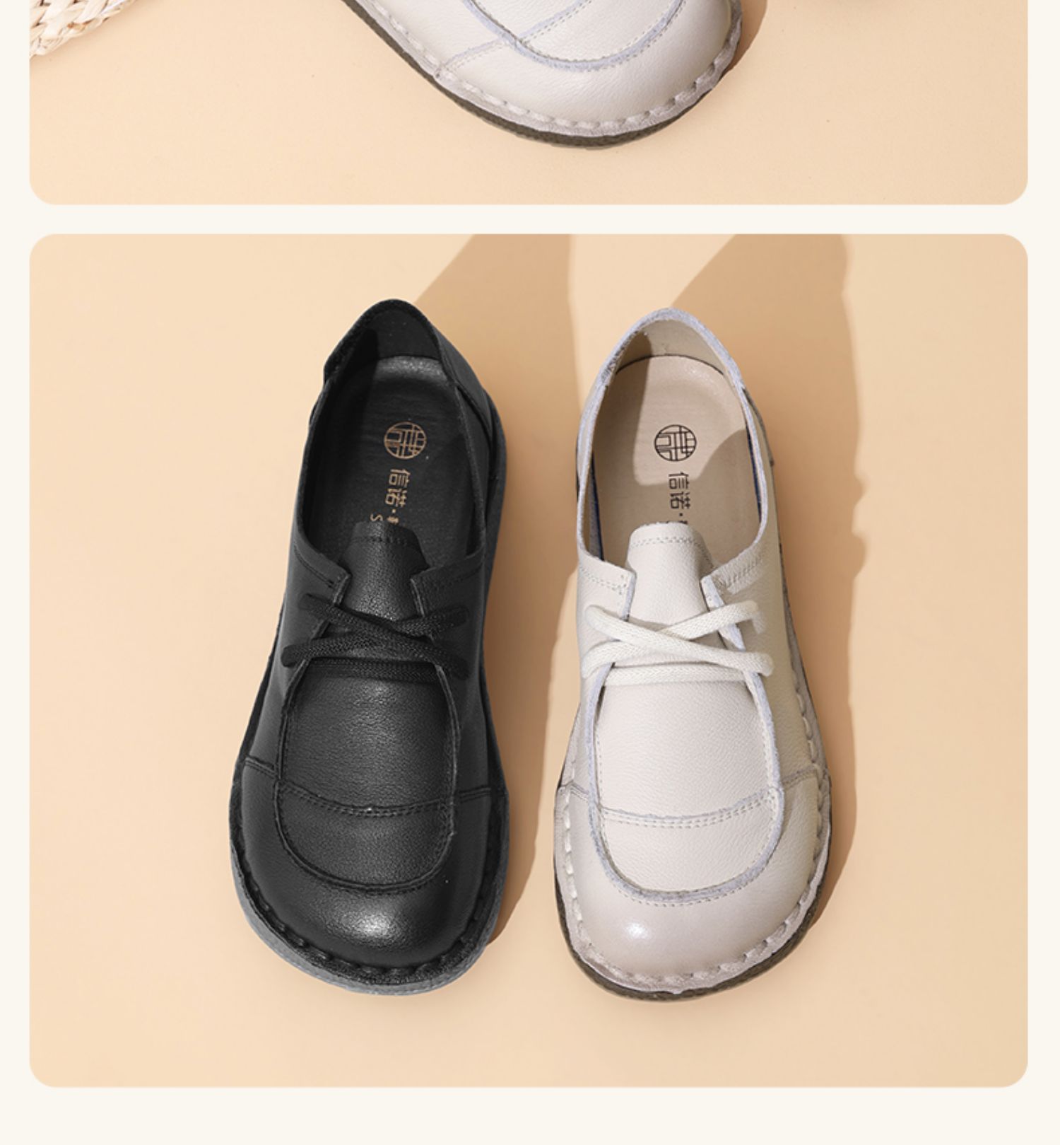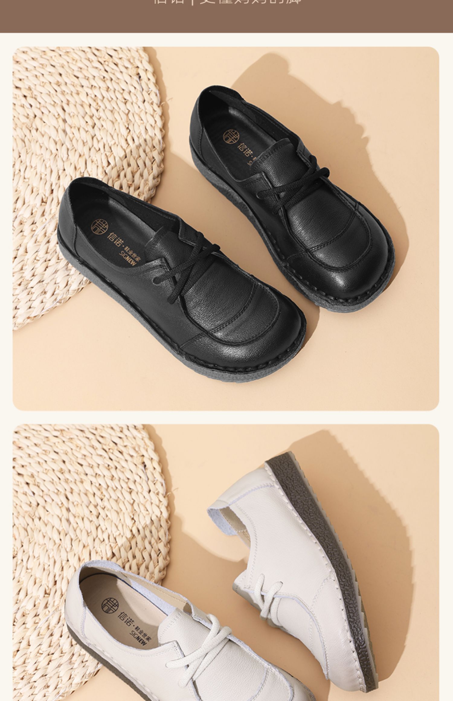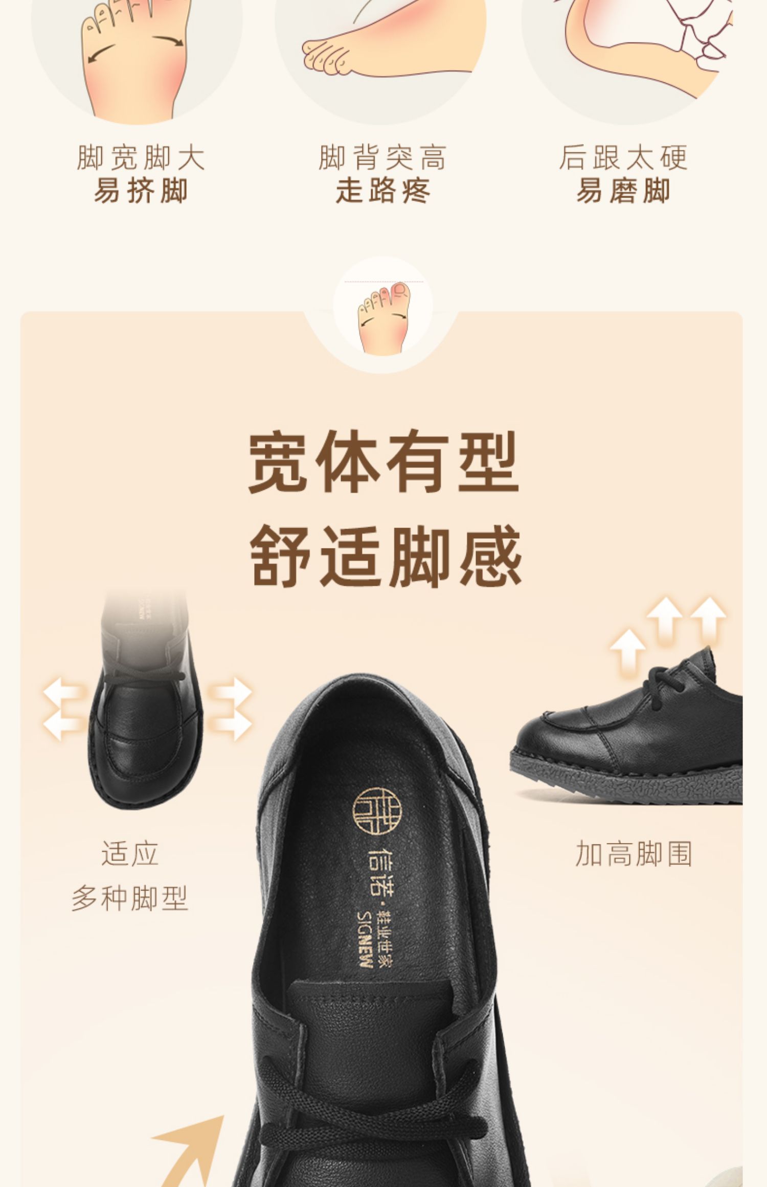 信诺真皮舒适妈妈鞋2025新款春秋款超软平底中老年女单鞋休闲皮鞋X5C032-22