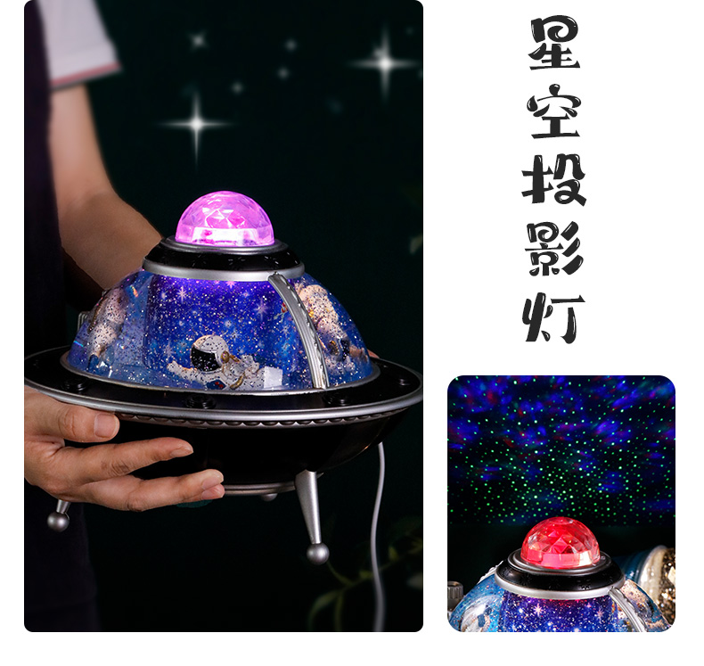 WDL音乐盒 火箭飞碟旋转投影蓝牙音响