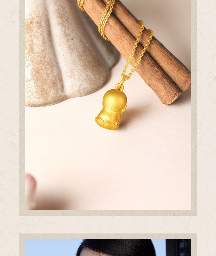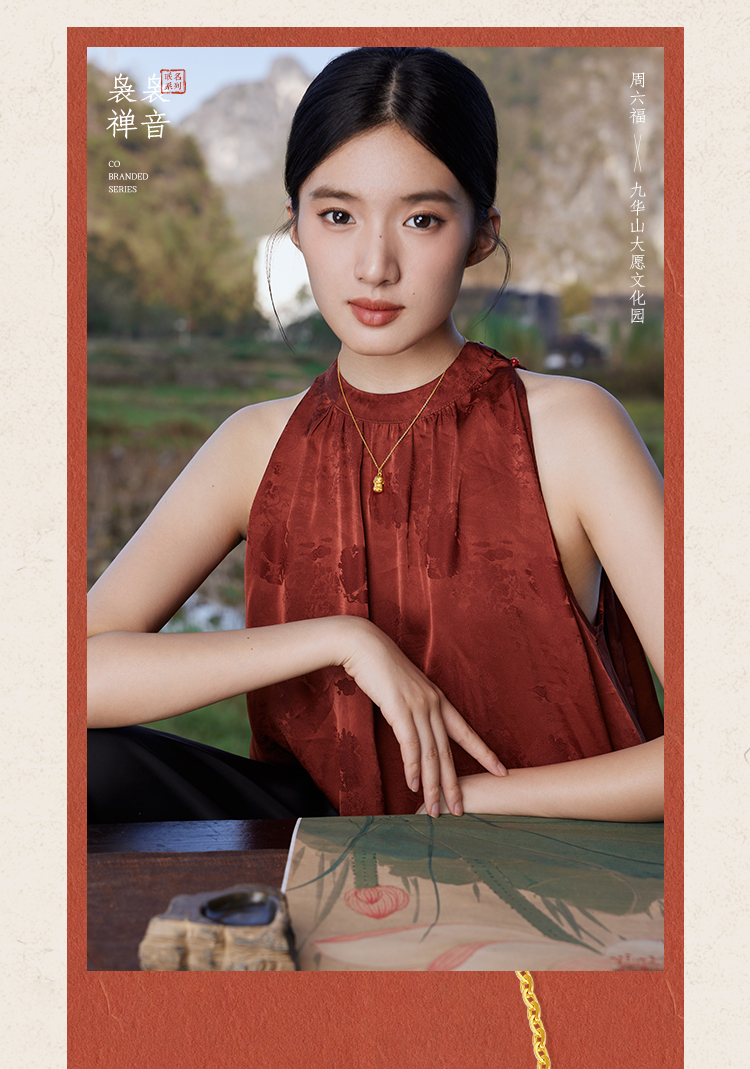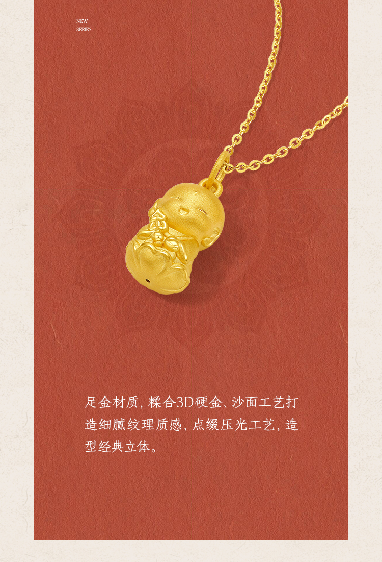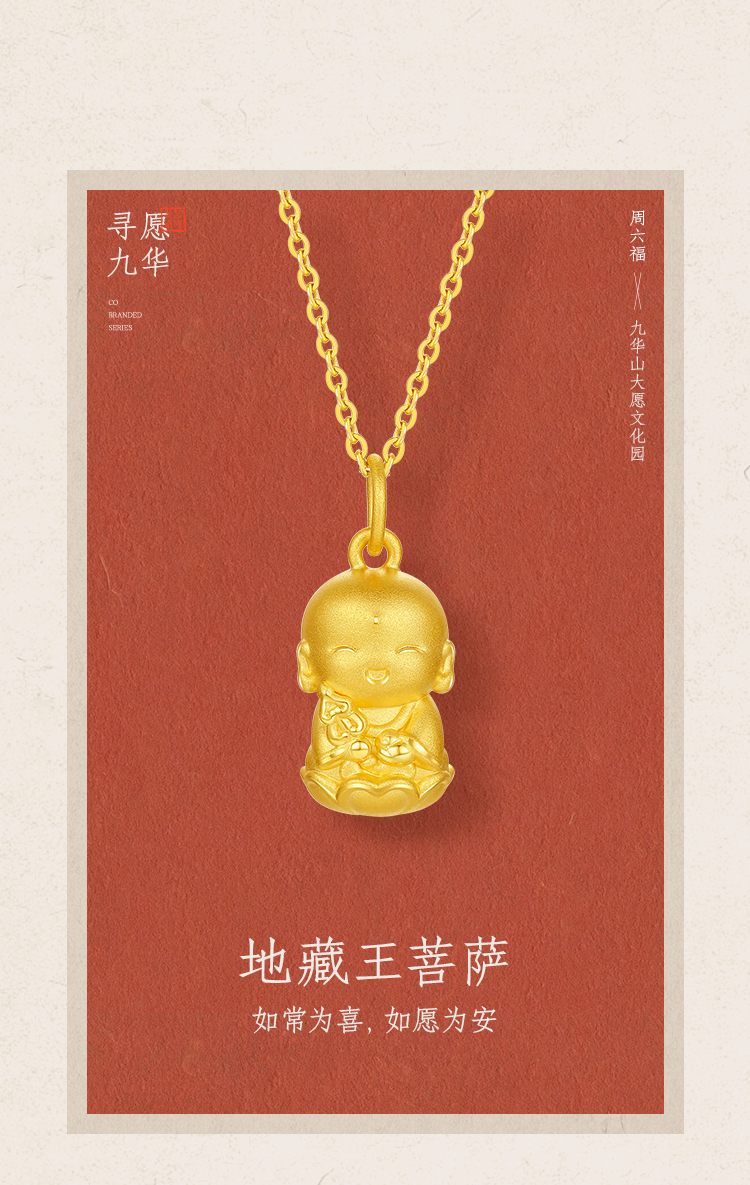 周六福黄金吊坠女3d硬金定价九华山联名地藏山菩萨足金佛像平安