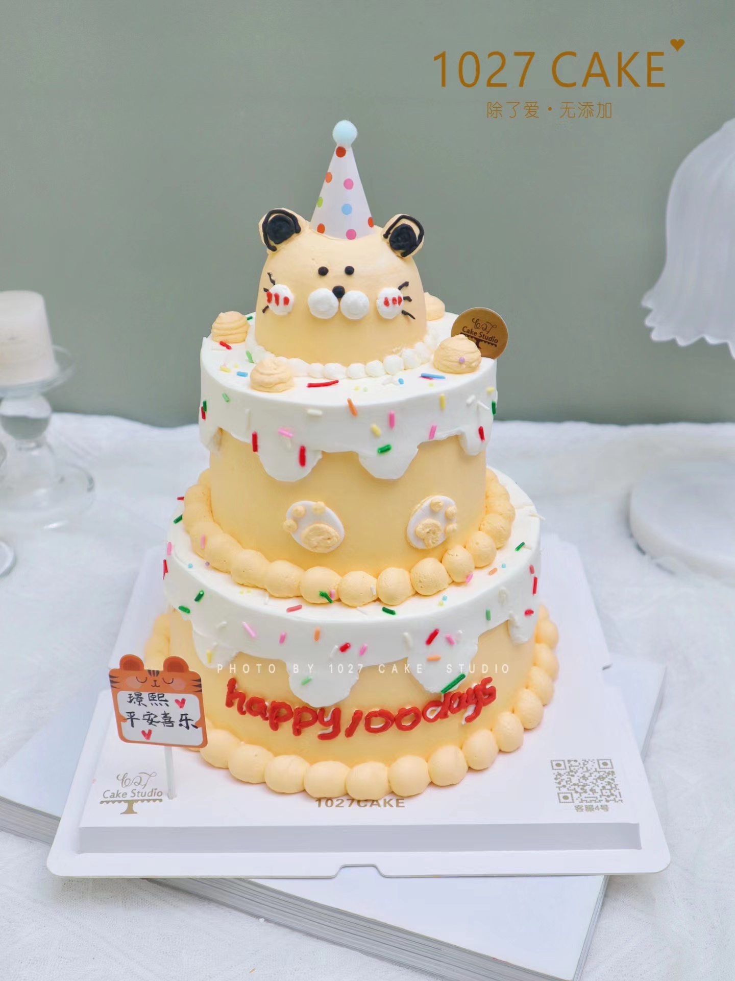 1027CAKE | 双层 立体小老虎蛋糕 百天 周岁