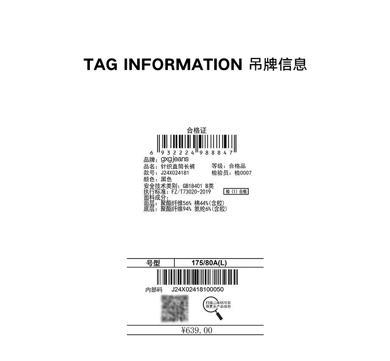 gxg.jeans男装冬季直筒针织直筒长裤 日常通勤简约舒适休闲裤J24X024181