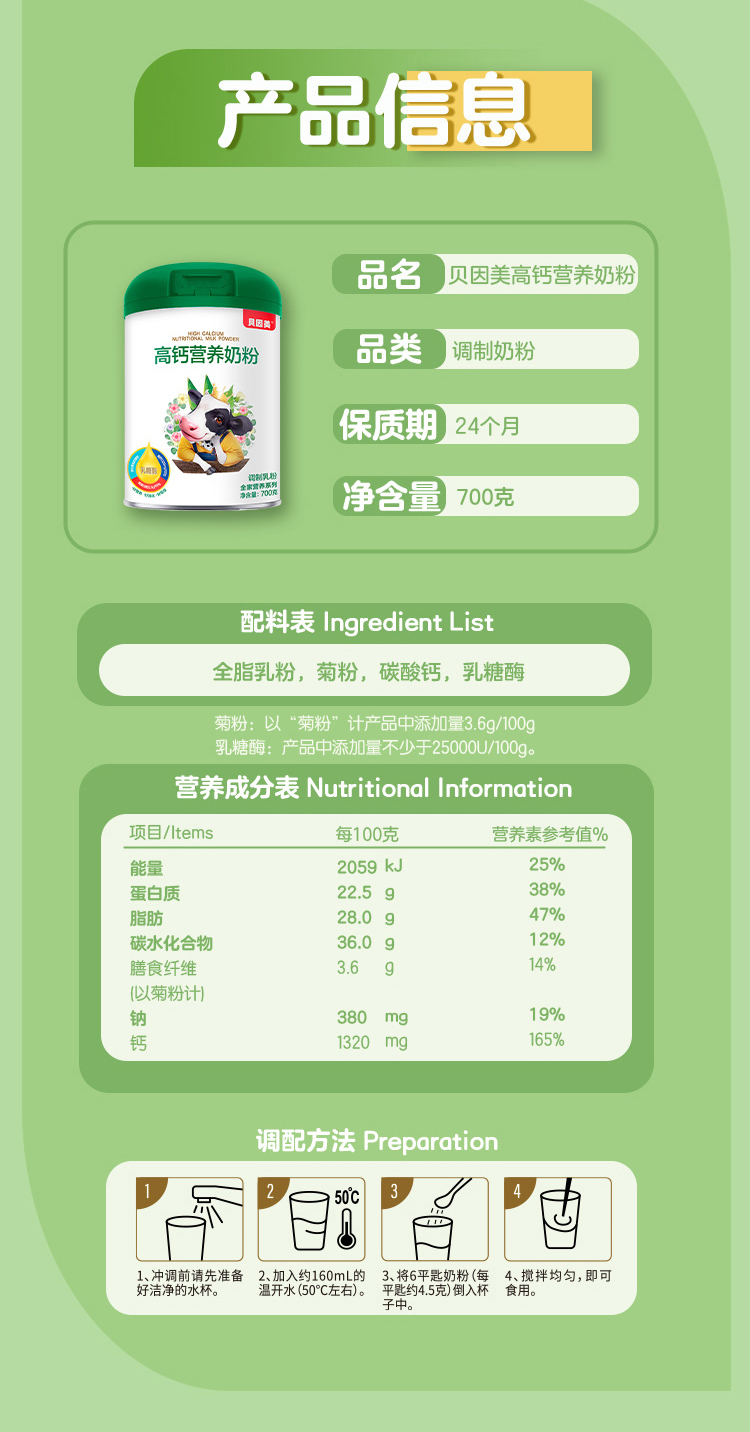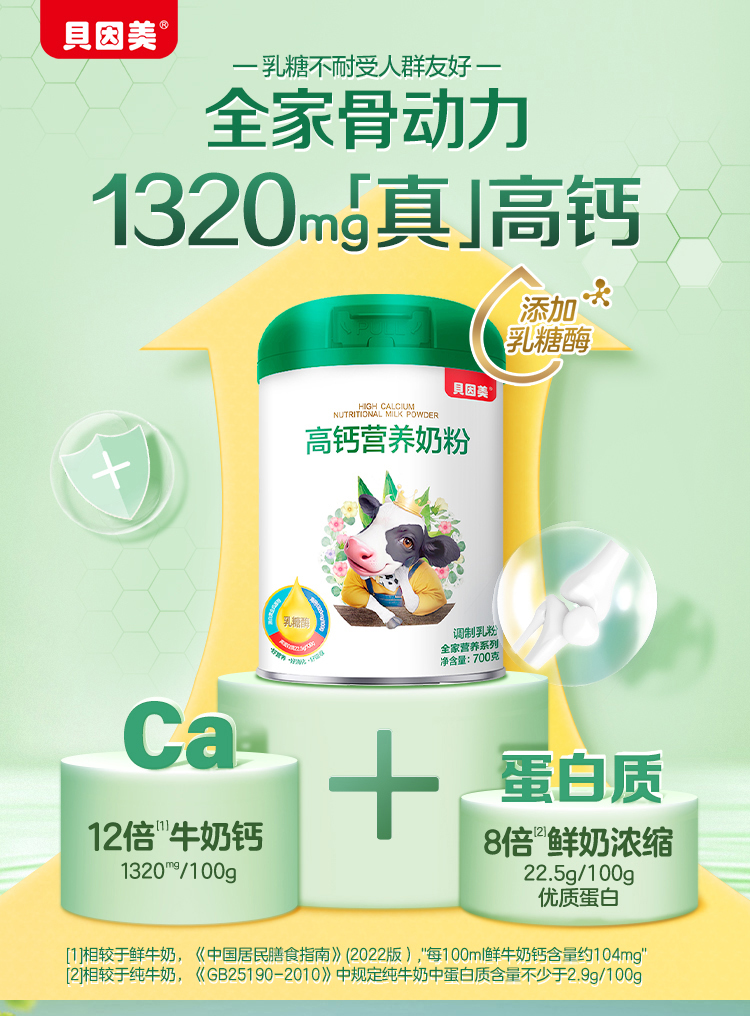 【乳糖酶升级版】贝因美高钙营养奶粉700克全家营养礼盒