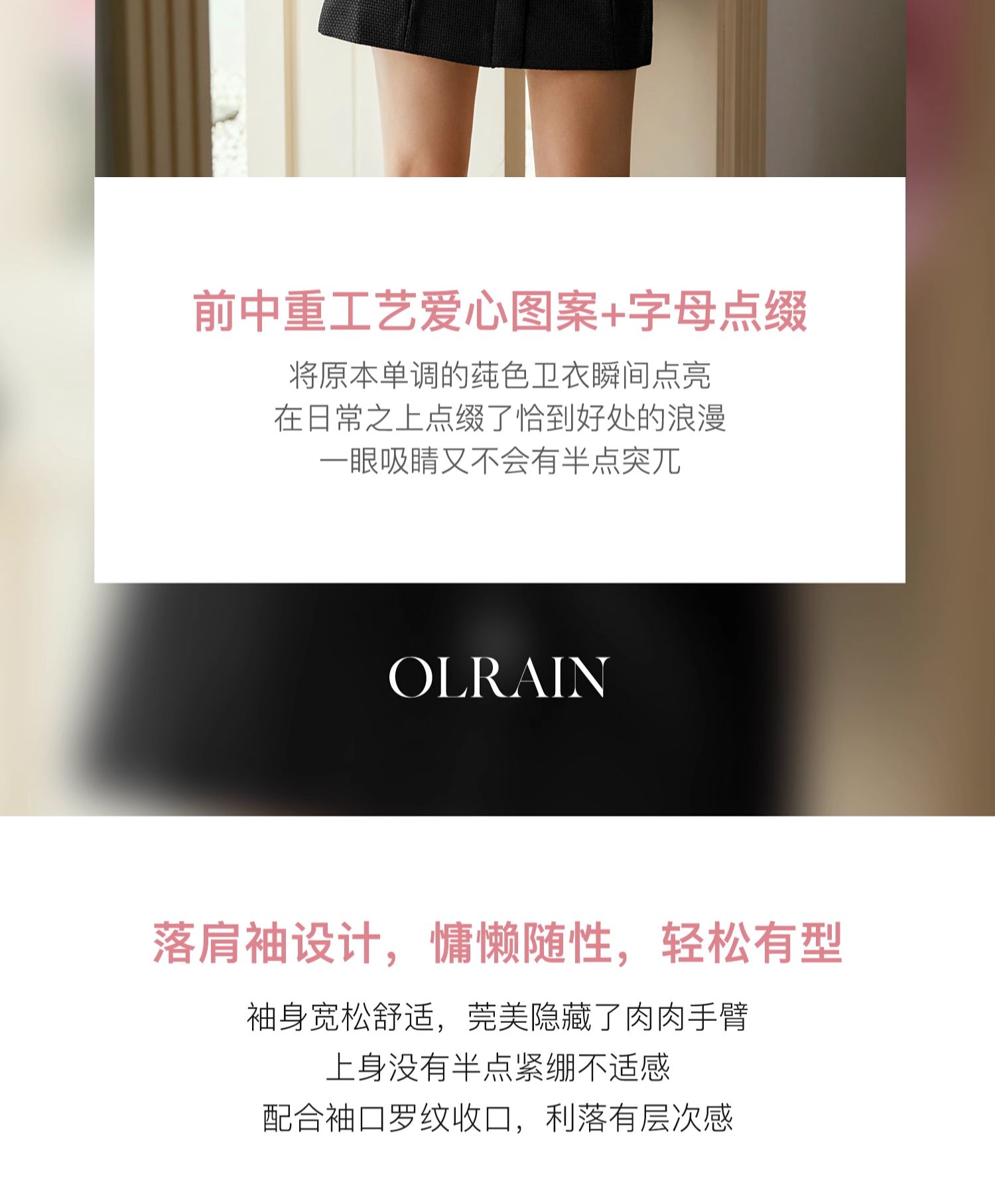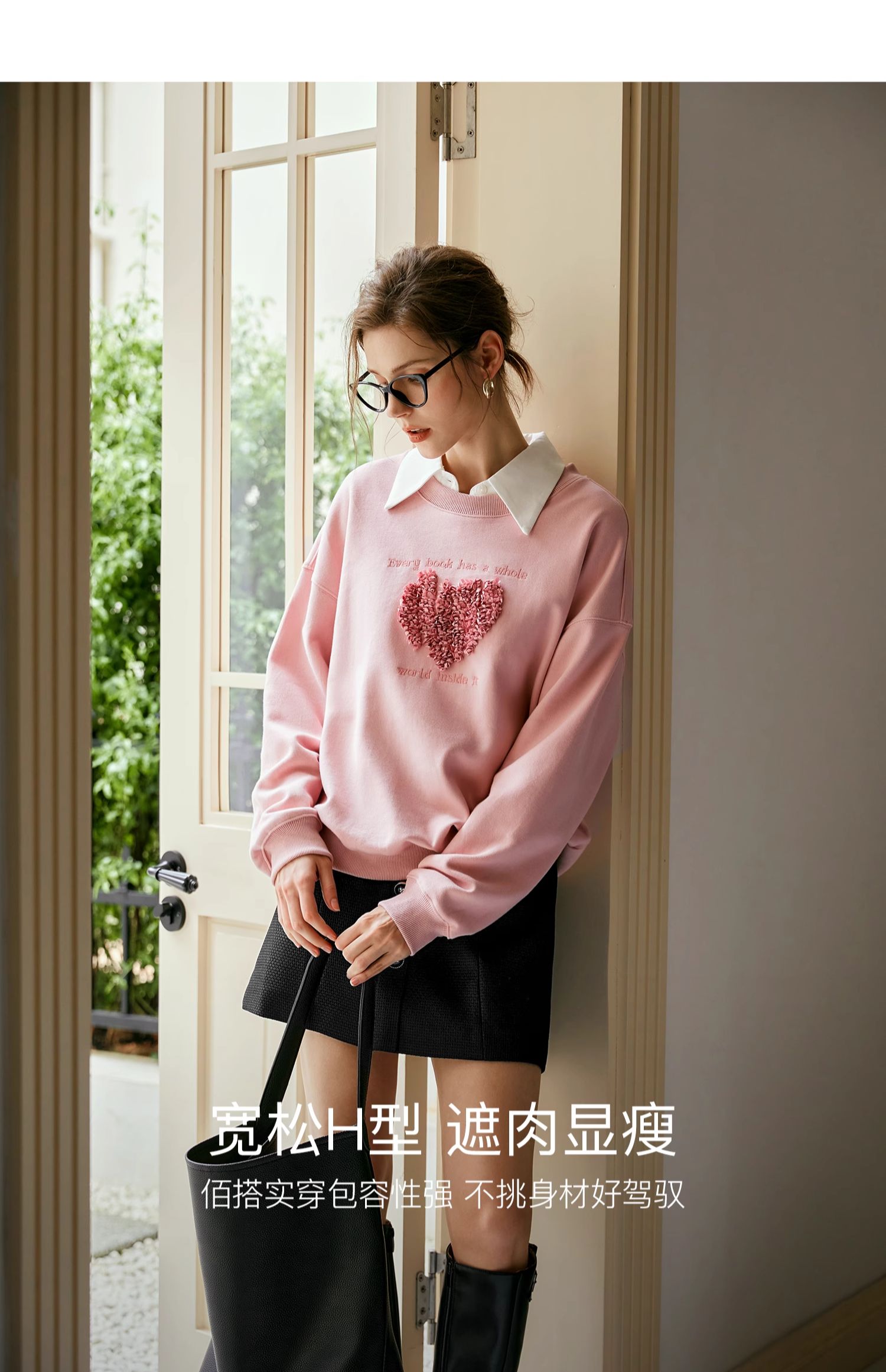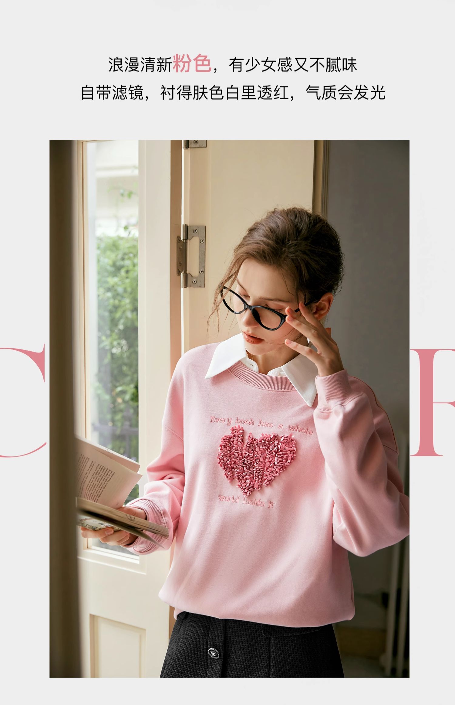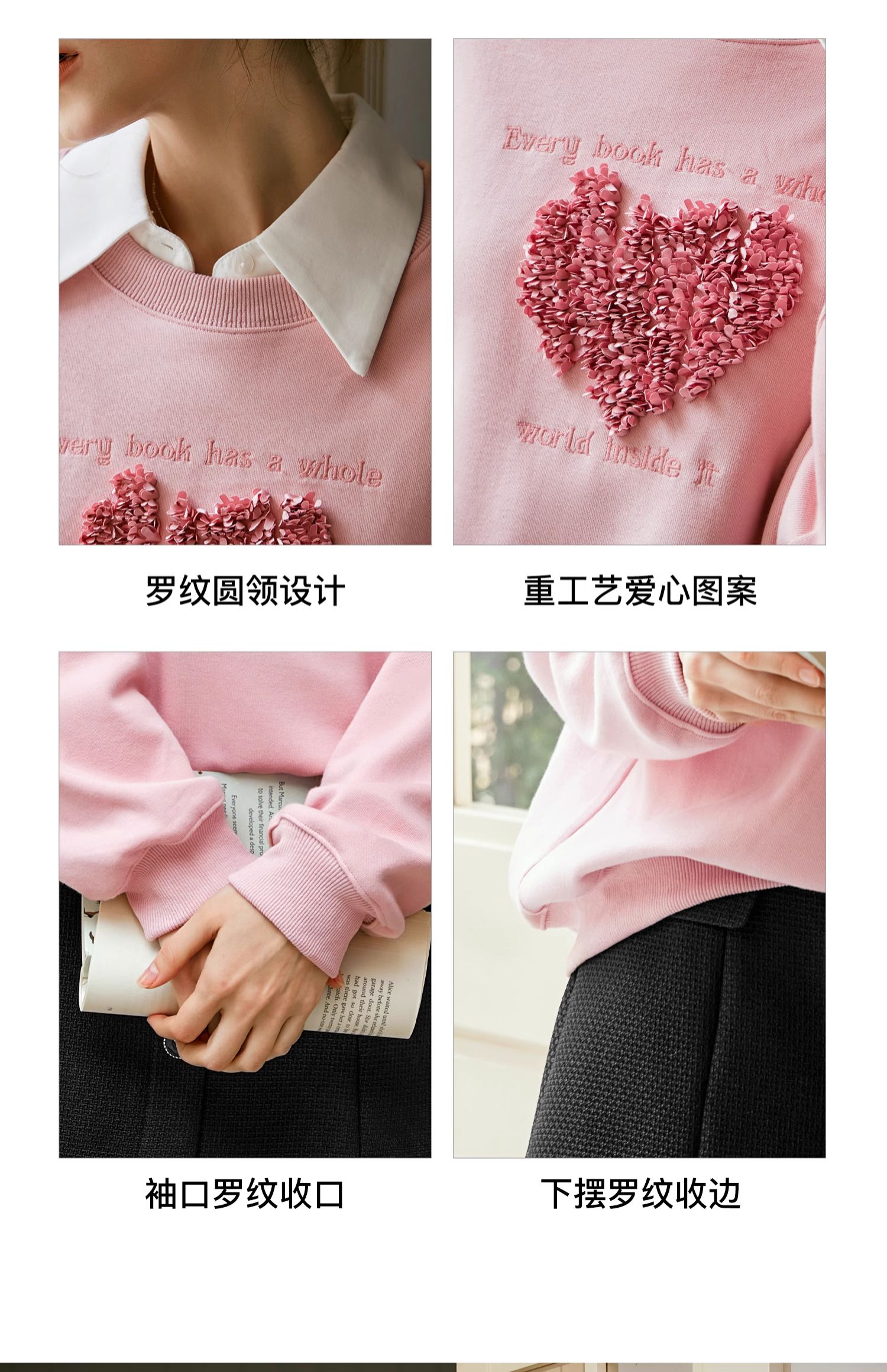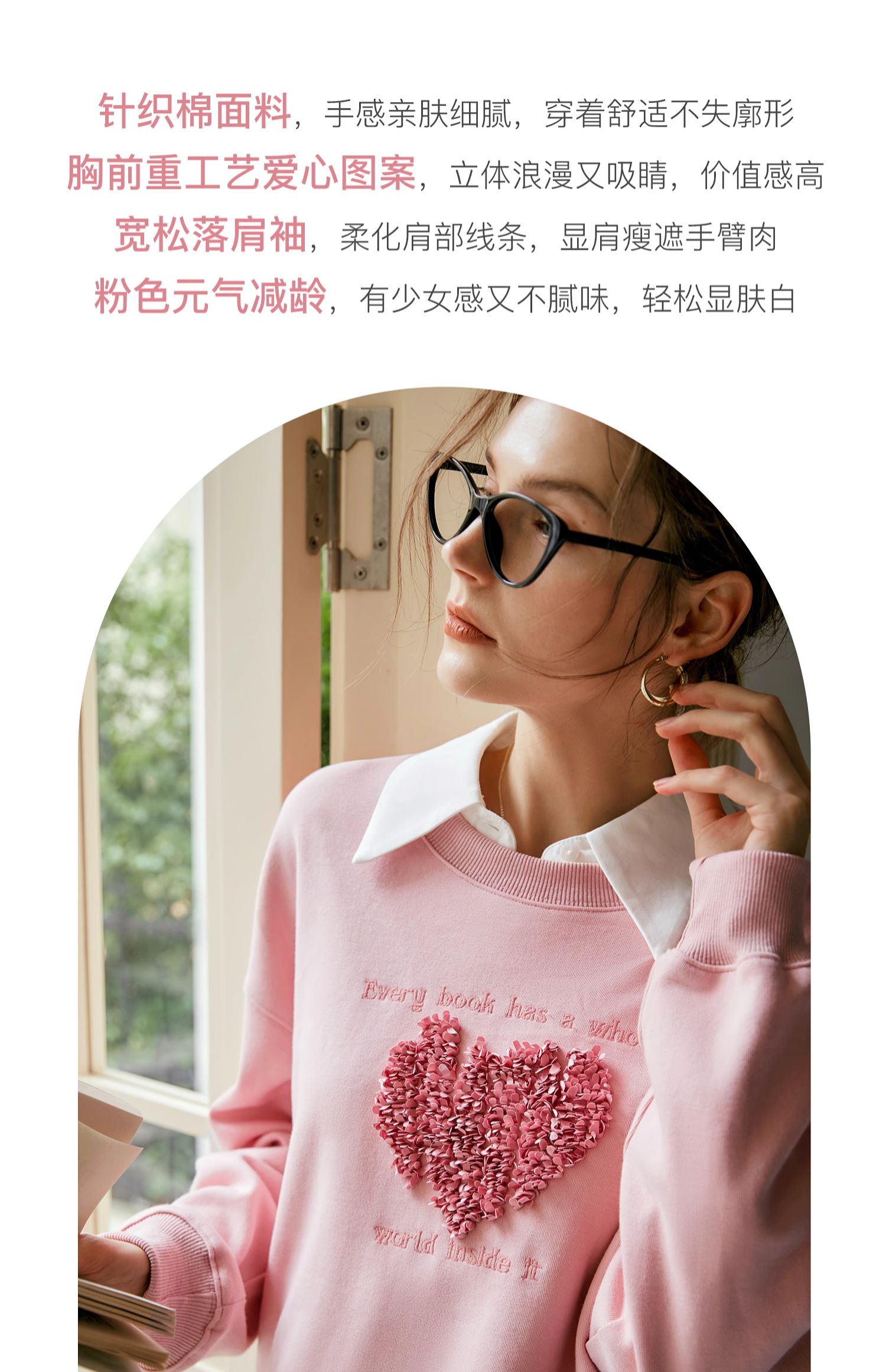OLrain欧芮儿法式粉色爱心卫衣女早秋2024年新款宽松休闲圆领上衣