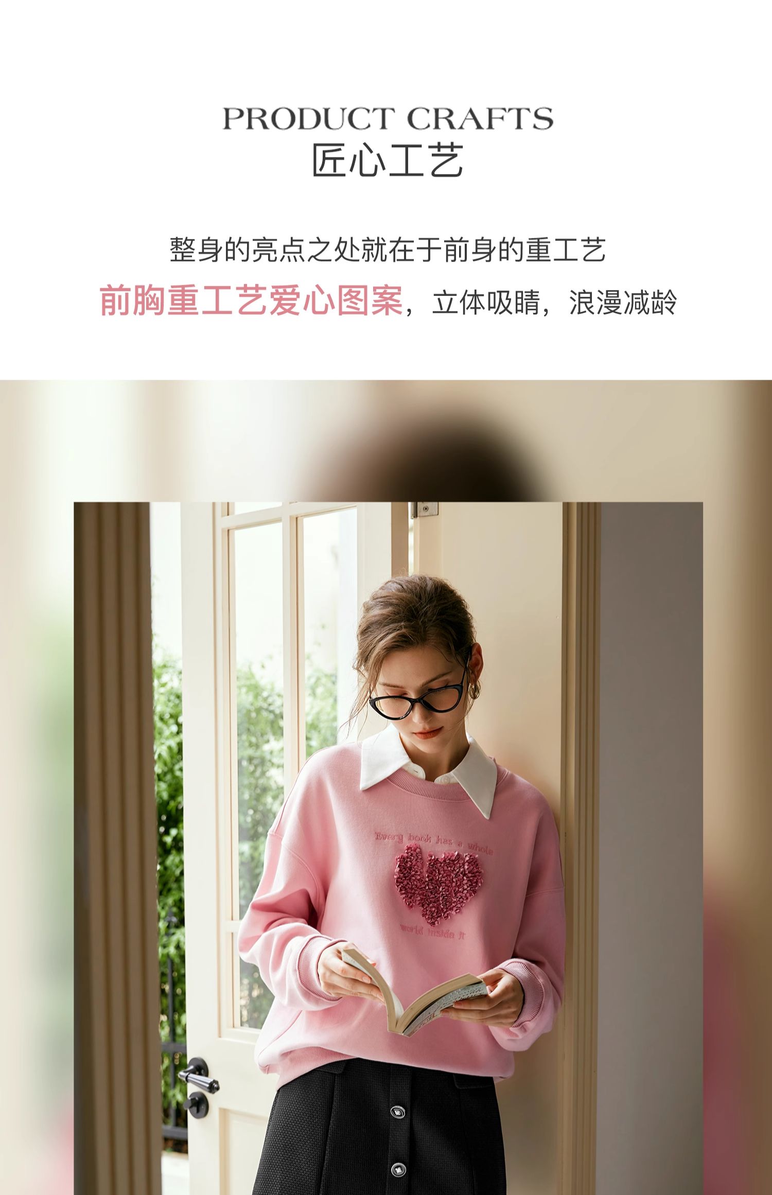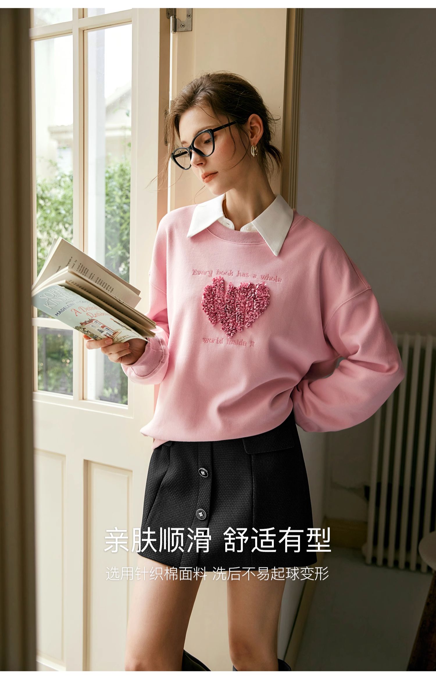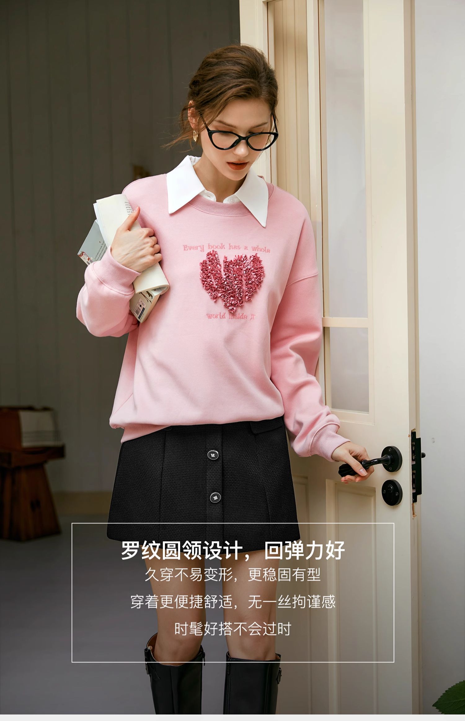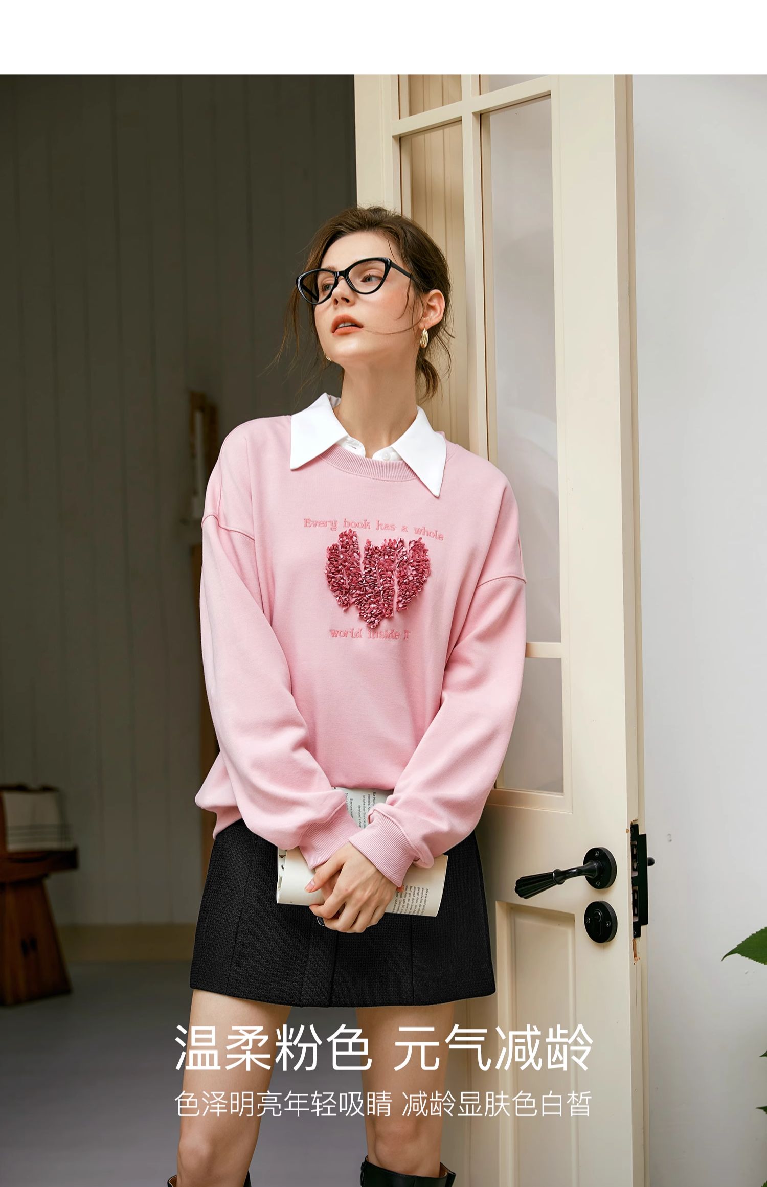 OLrain欧芮儿法式粉色爱心卫衣女早秋2024年新款宽松休闲圆领上衣