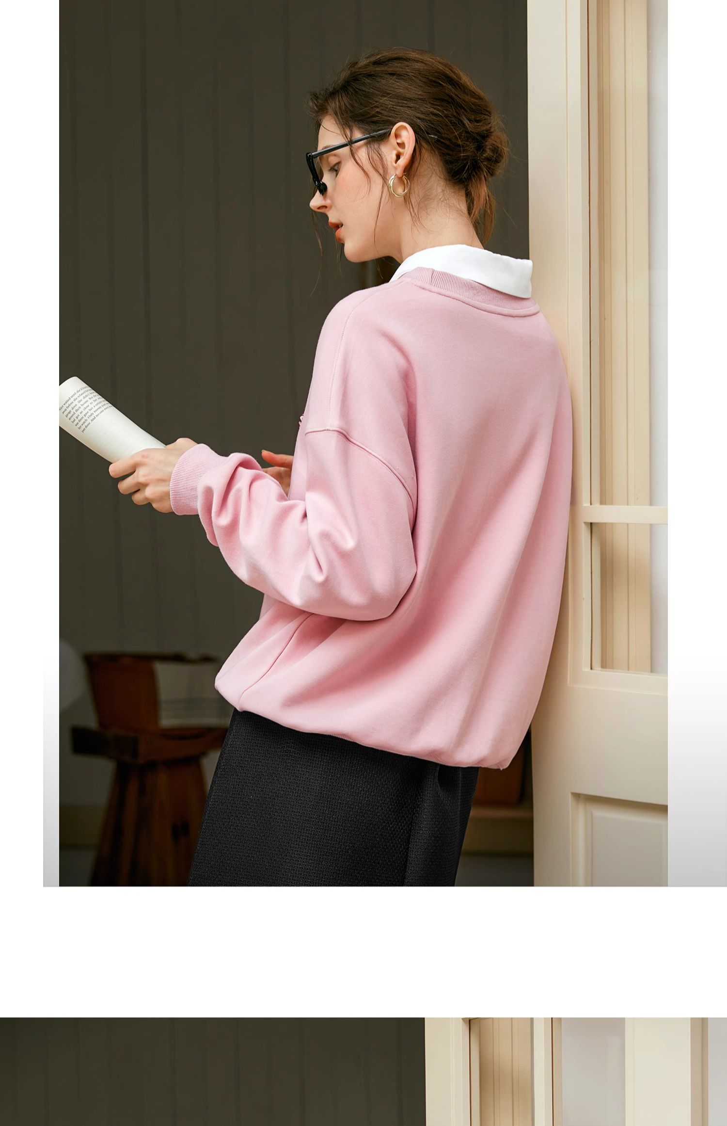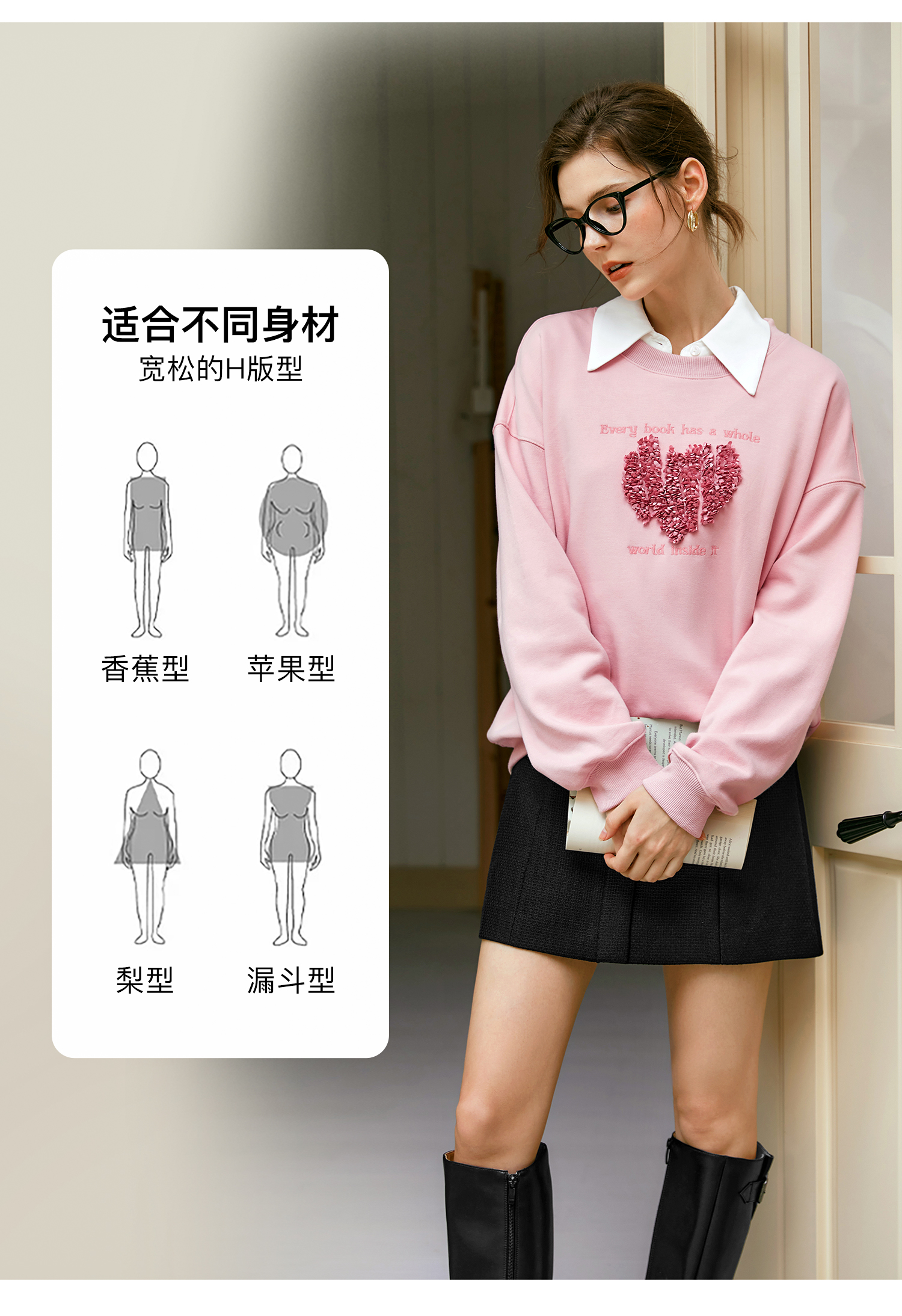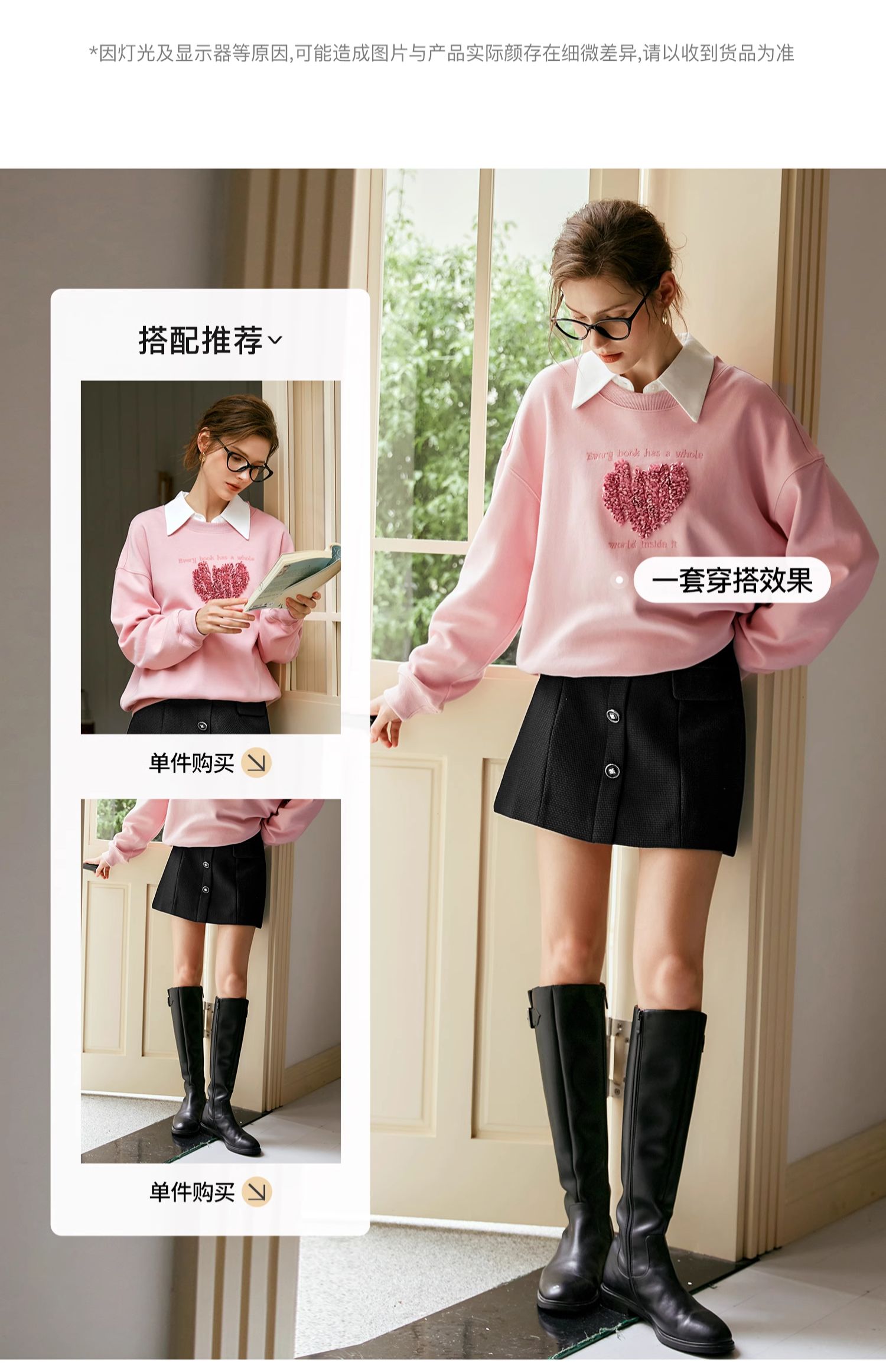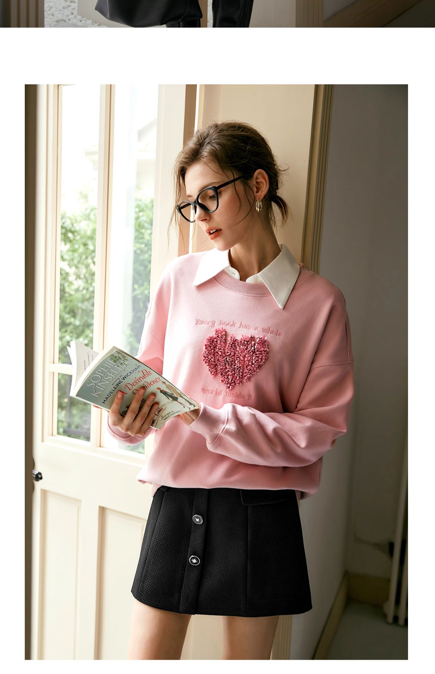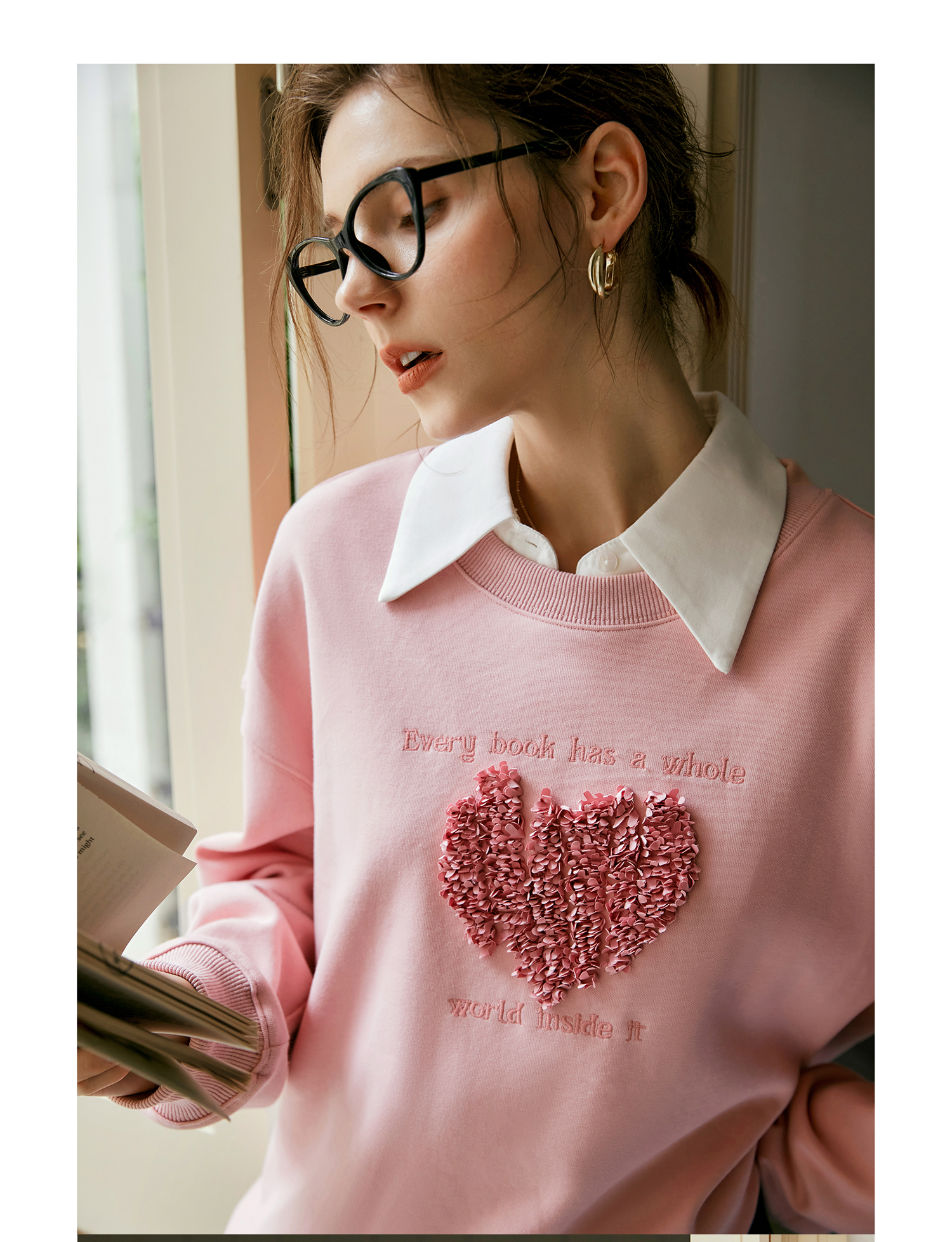 OLrain欧芮儿法式粉色爱心卫衣女早秋2024年新款宽松休闲圆领上衣
