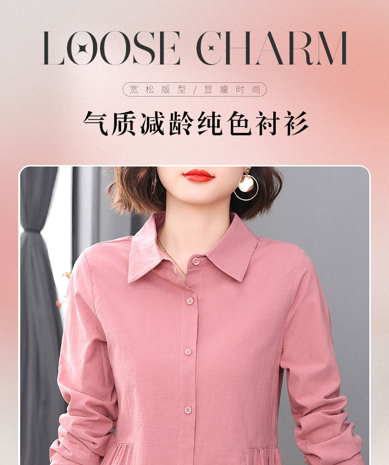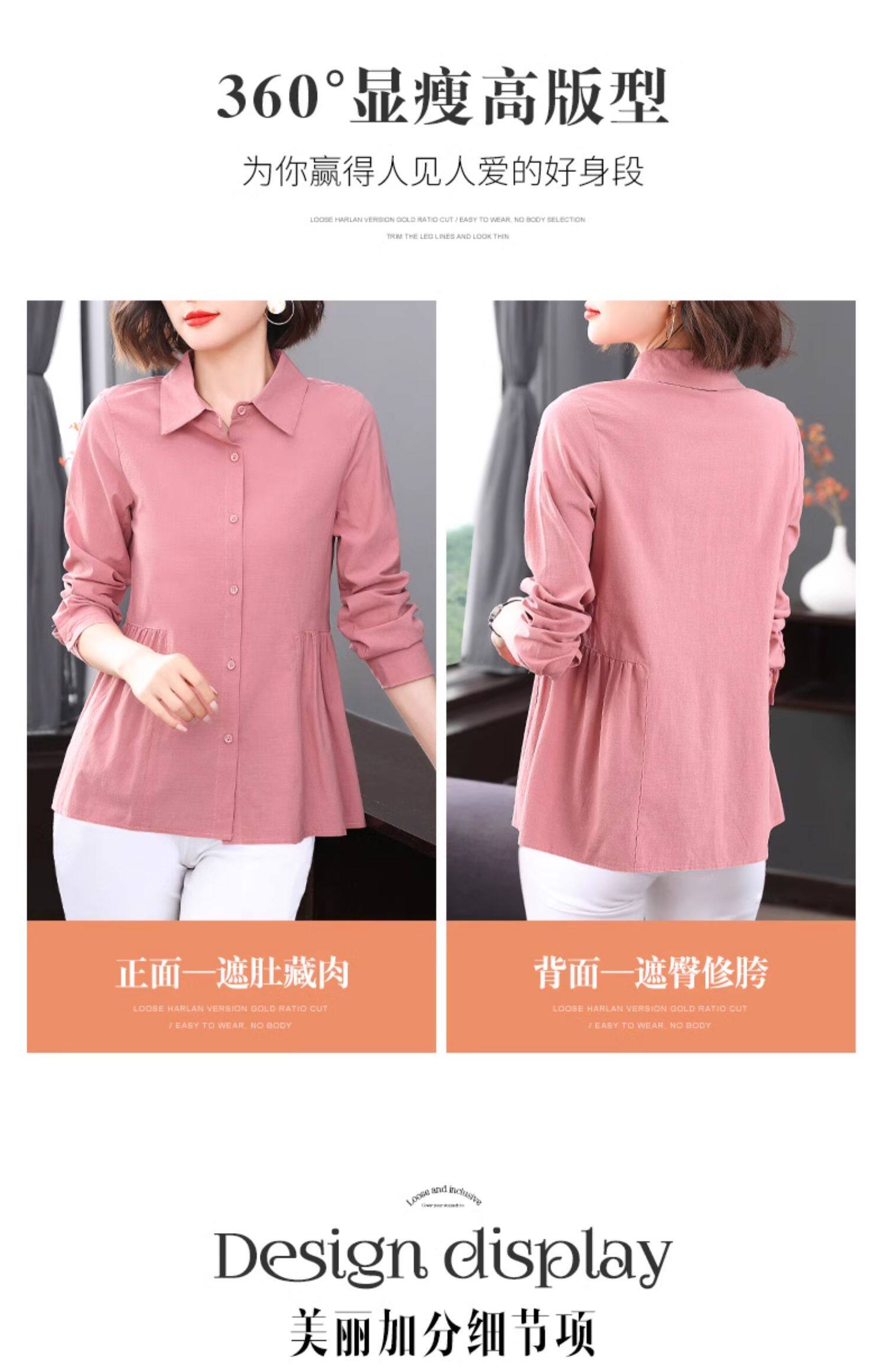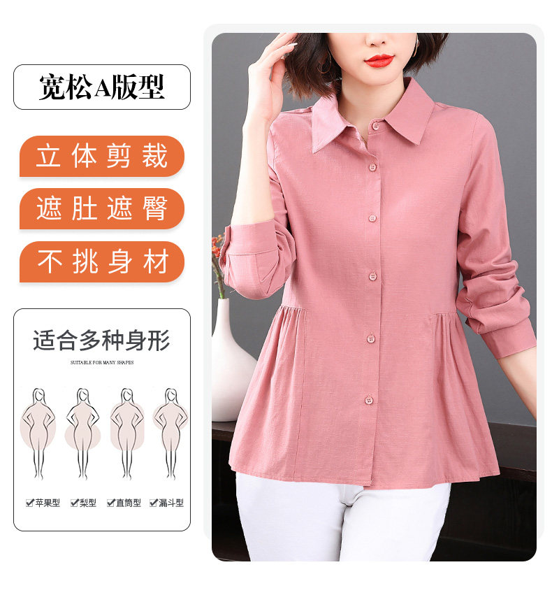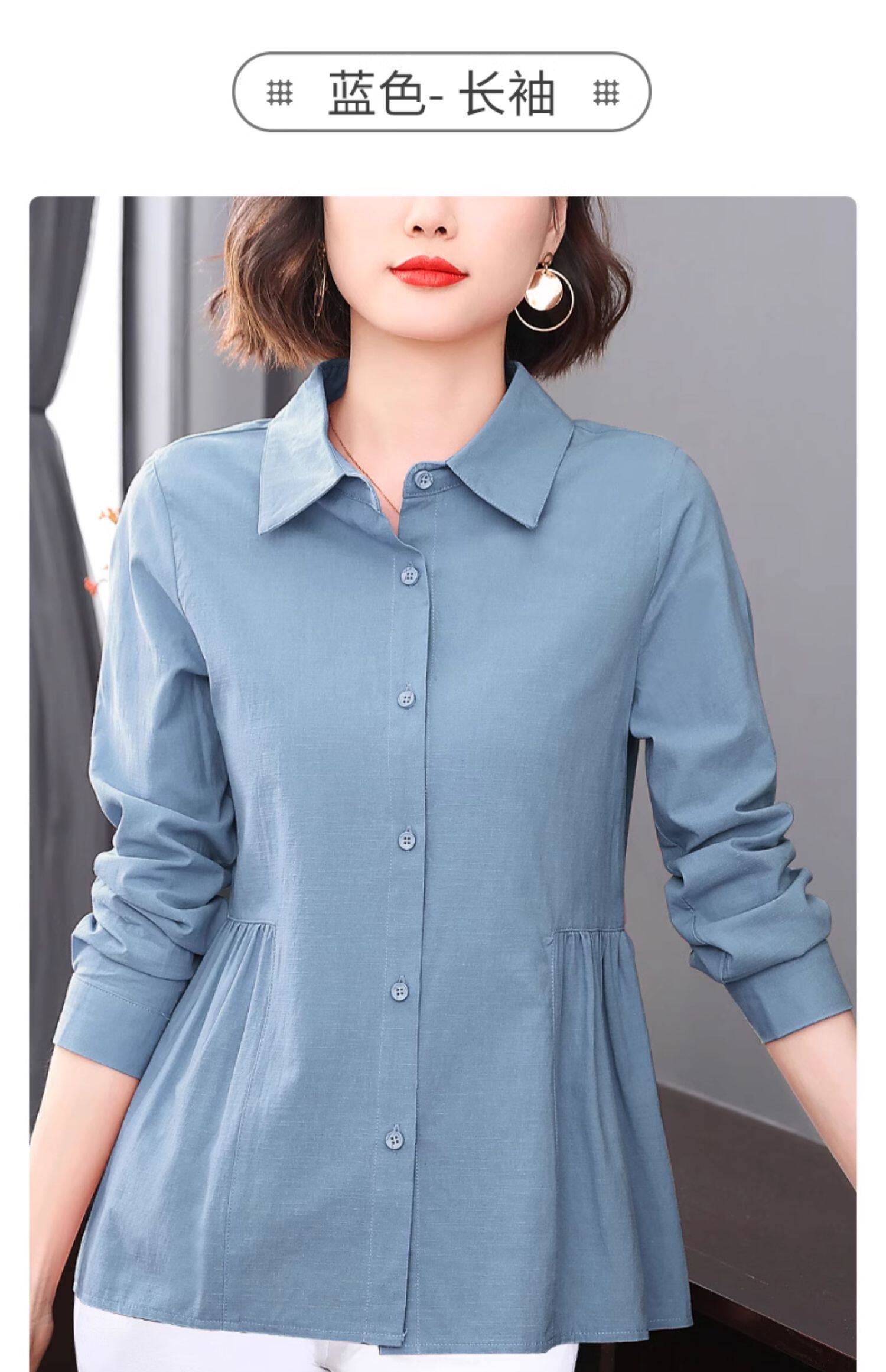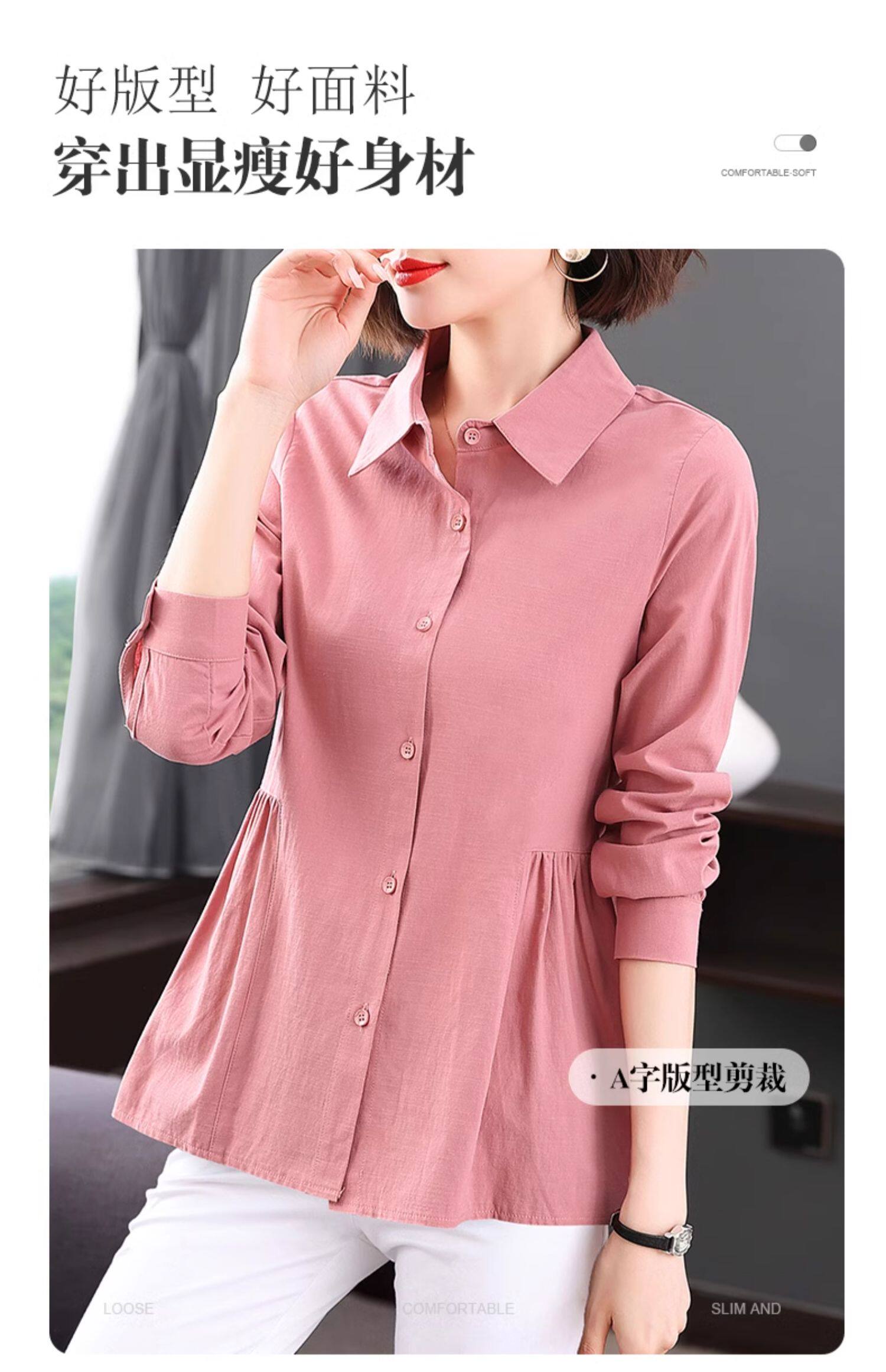 2026年新款大码女装女士衬衫长袖收腰衬衣中年妈妈春秋季裙摆上衣