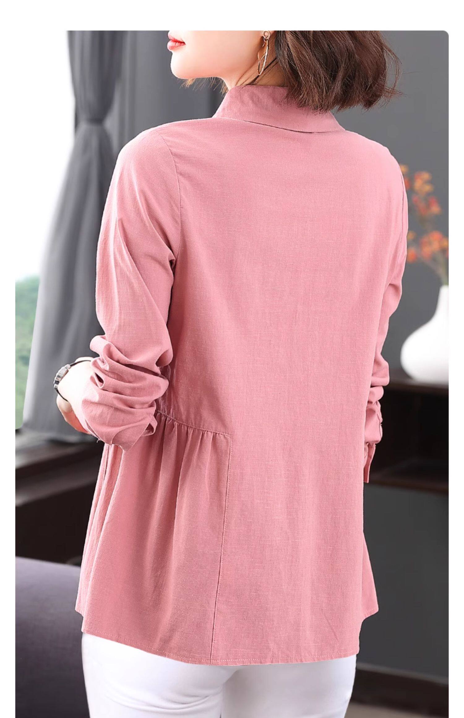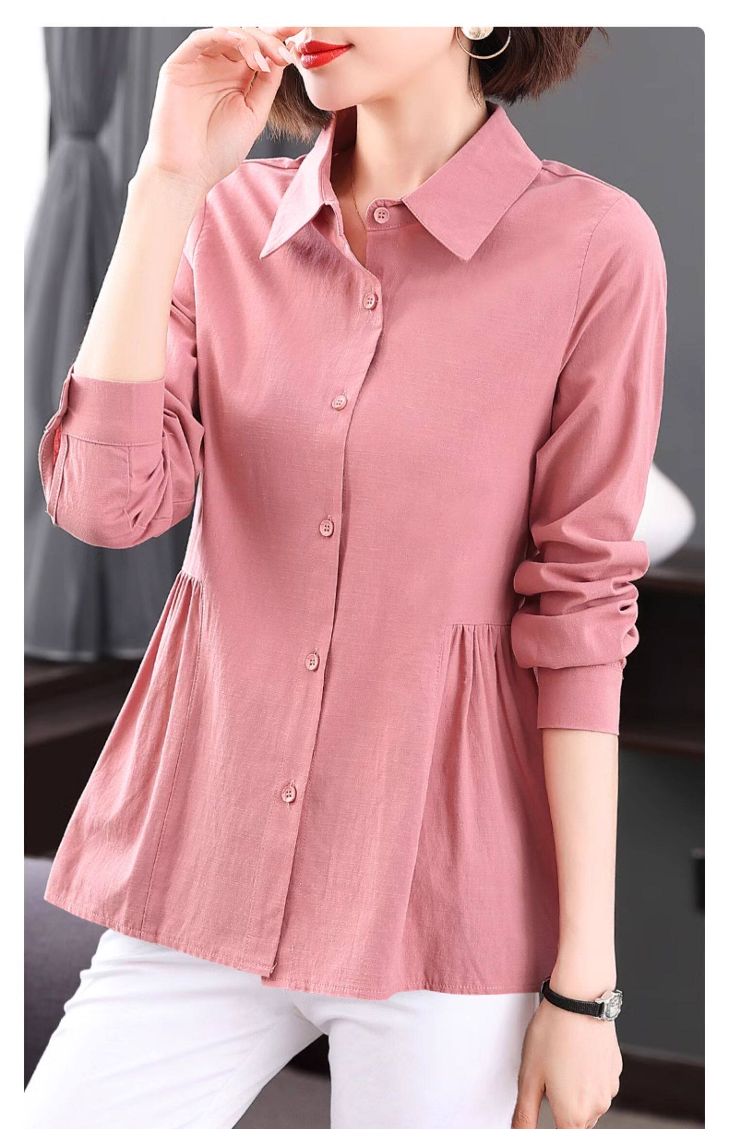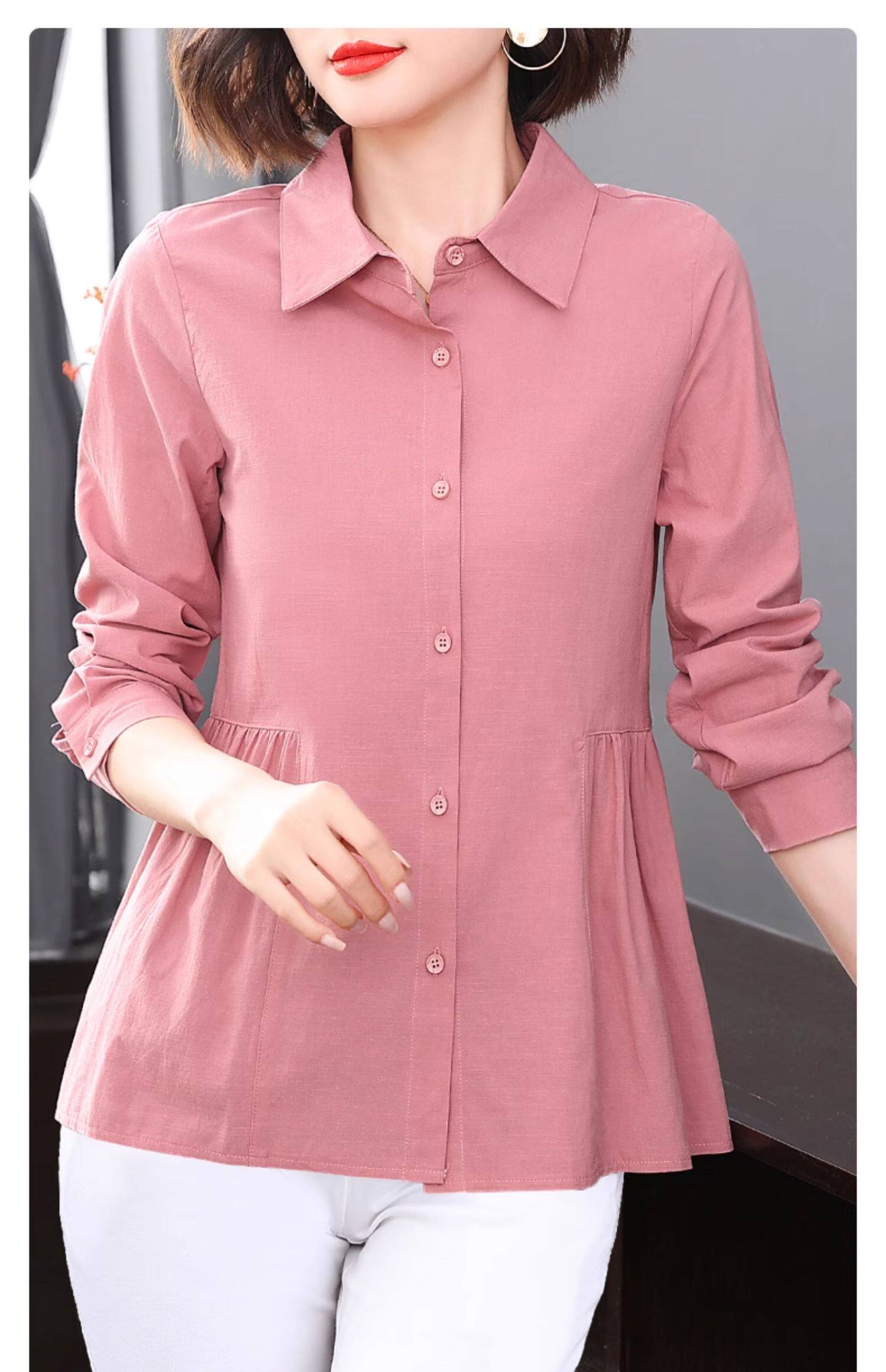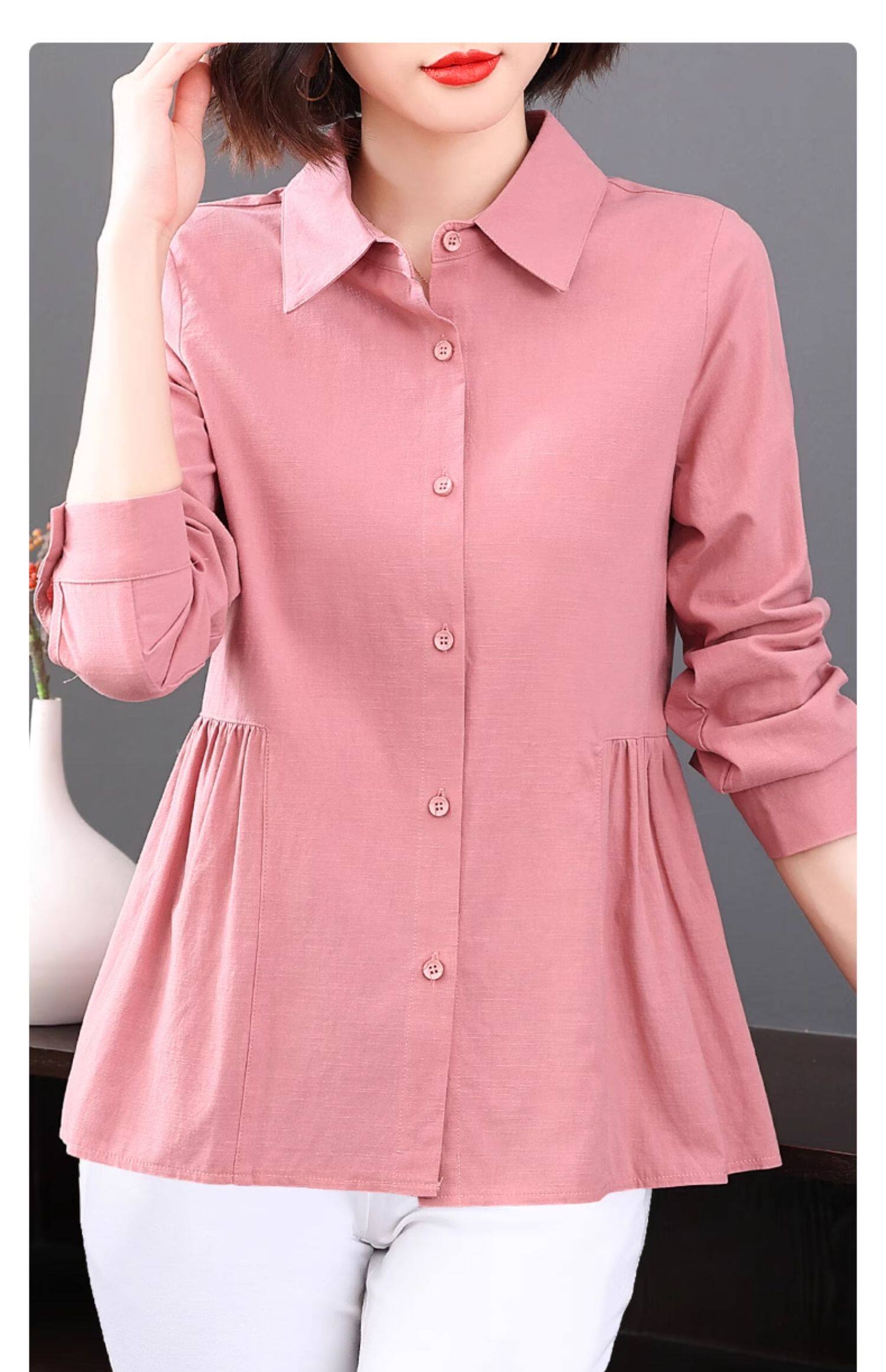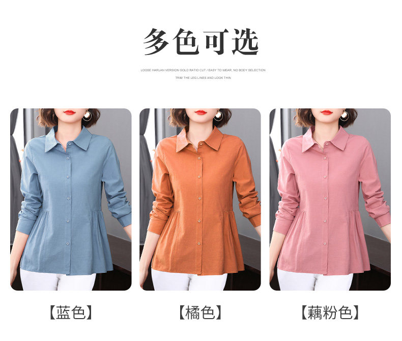 2026年新款大码女装女士衬衫长袖收腰衬衣中年妈妈春秋季裙摆上衣