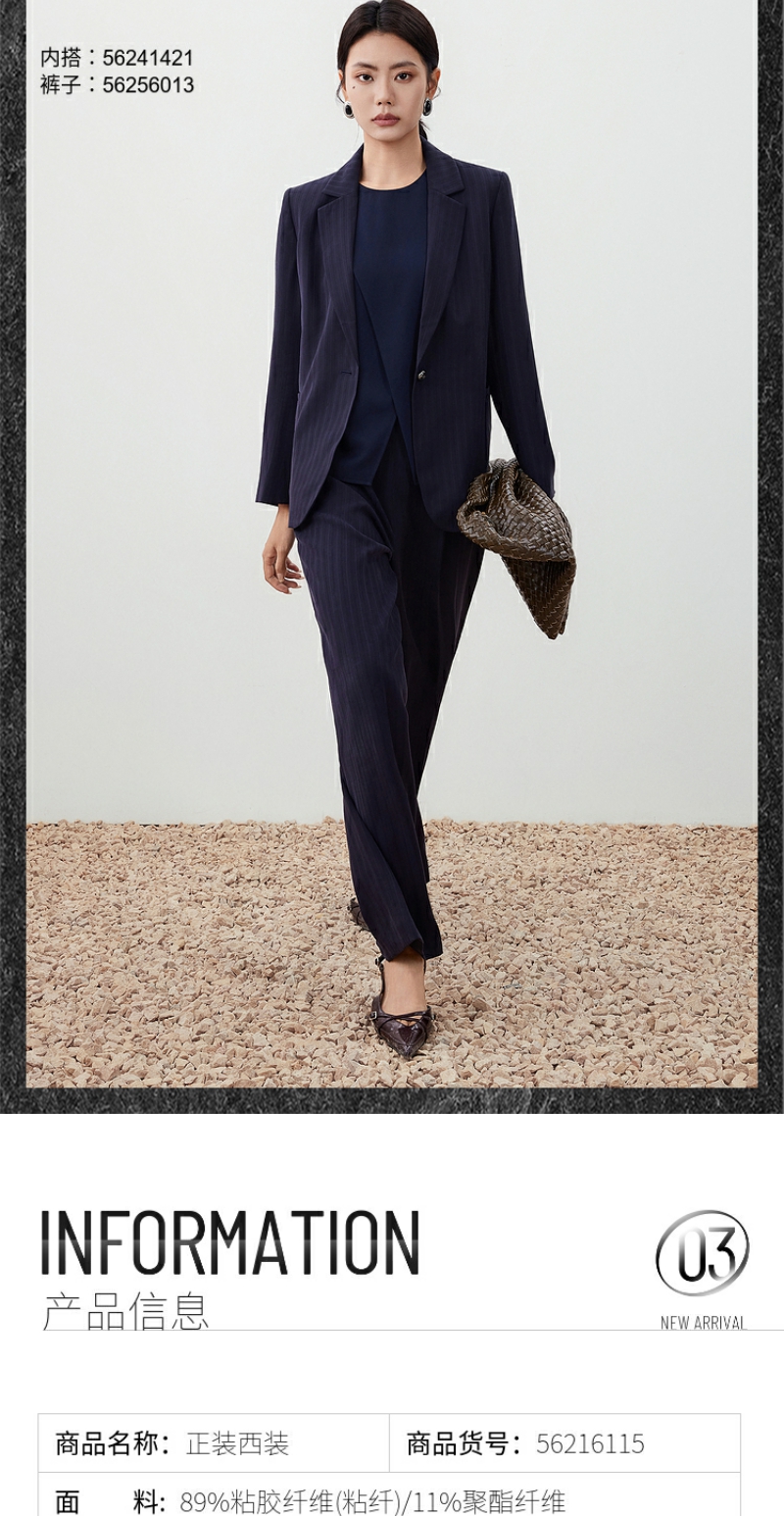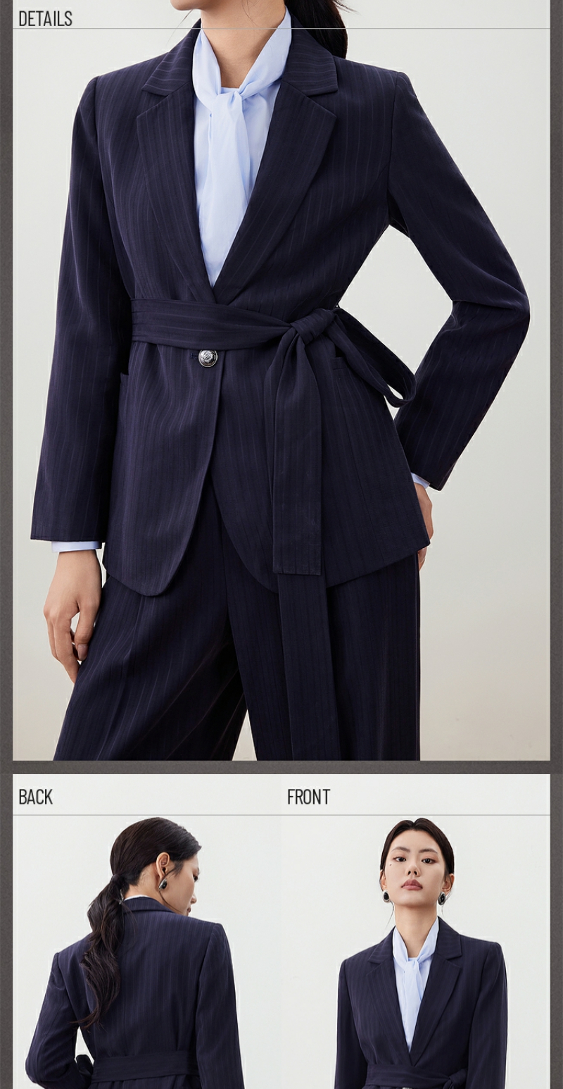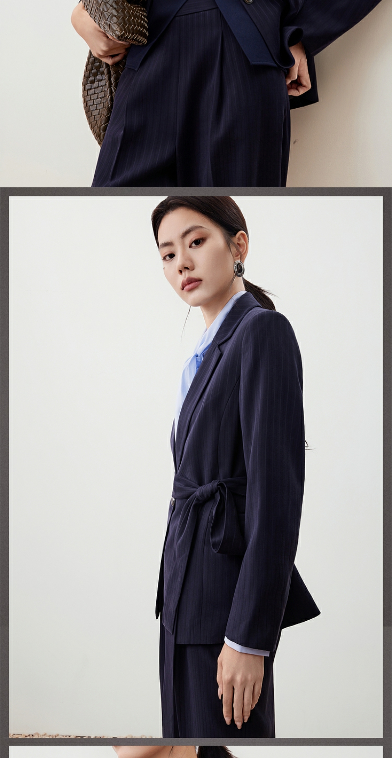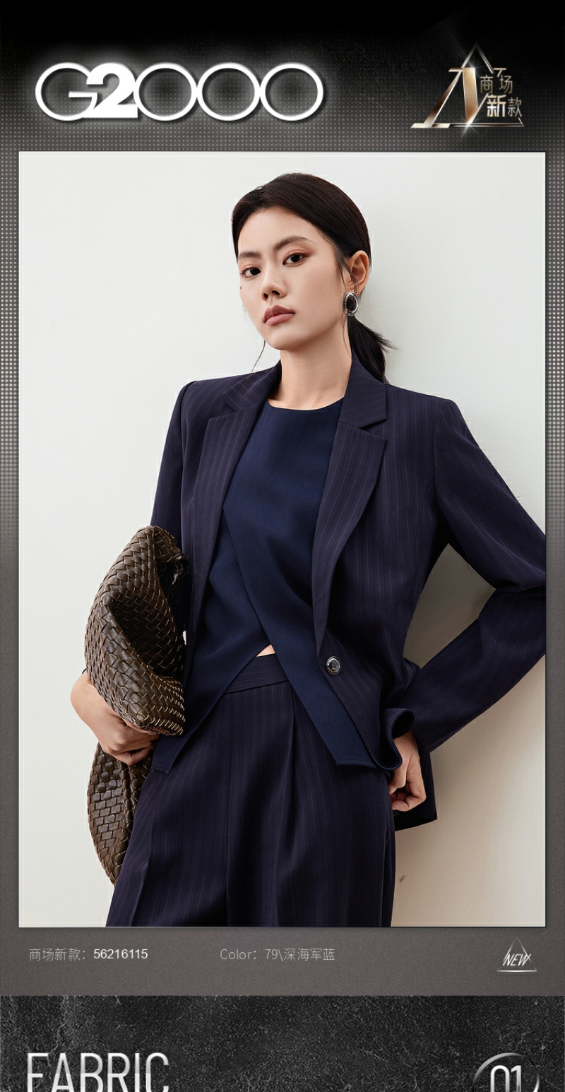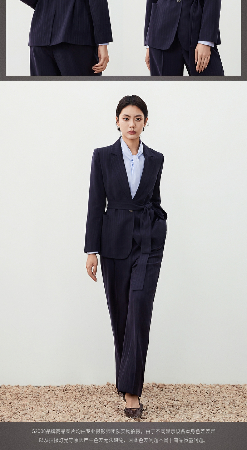 G2000女装FW25商场同款【配送绑带】柔软舒适暗条纹宽松剪裁西裤56256013