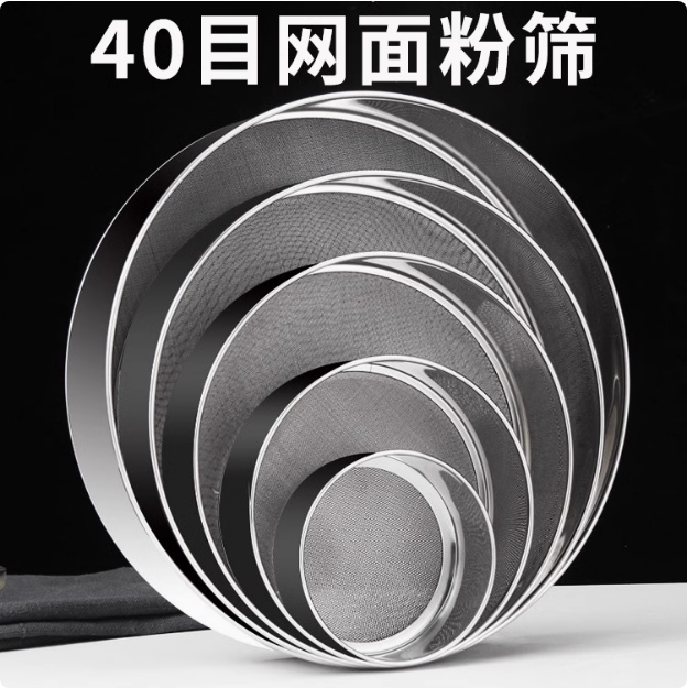 40目面粉筛 (14/15/17/17.5/18.5/19.5/20.5/21/23.5/24/26/27cm)圆形面粉筛 不锈钢材质 烘焙器具