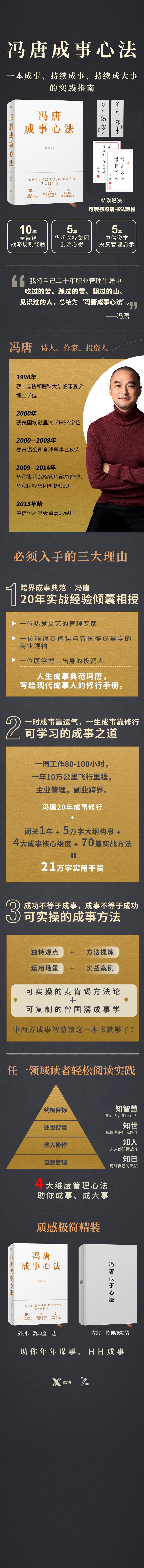 冯唐说:“我将自己二十年职业管理生涯中吃过的苦、踩过的雷、翻过的山、见识过的人,总结为'冯唐成事心法'。”