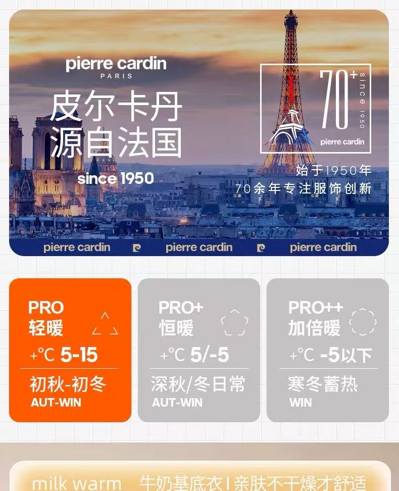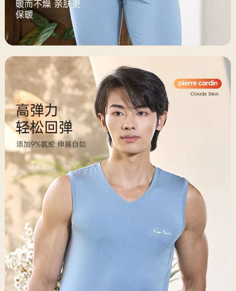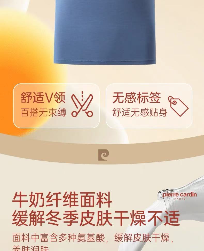 皮尔卡丹保暖内衣男牛奶V领内穿轻暖柔弹打底背心冬季棉毛衫上衣WP739196