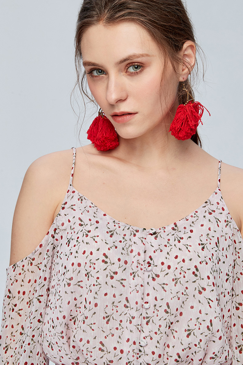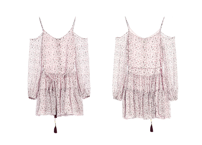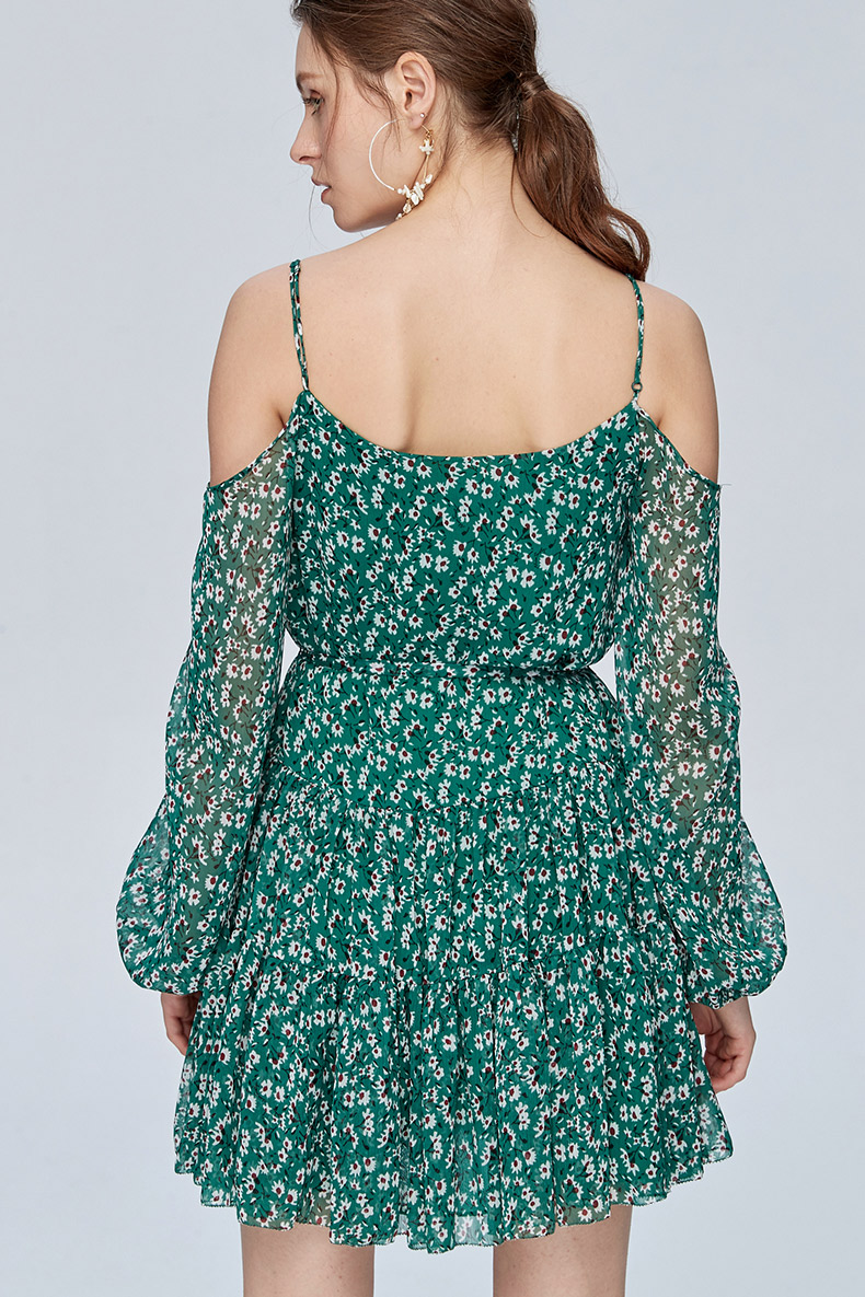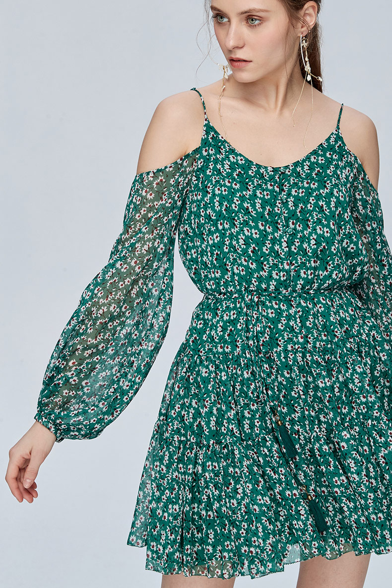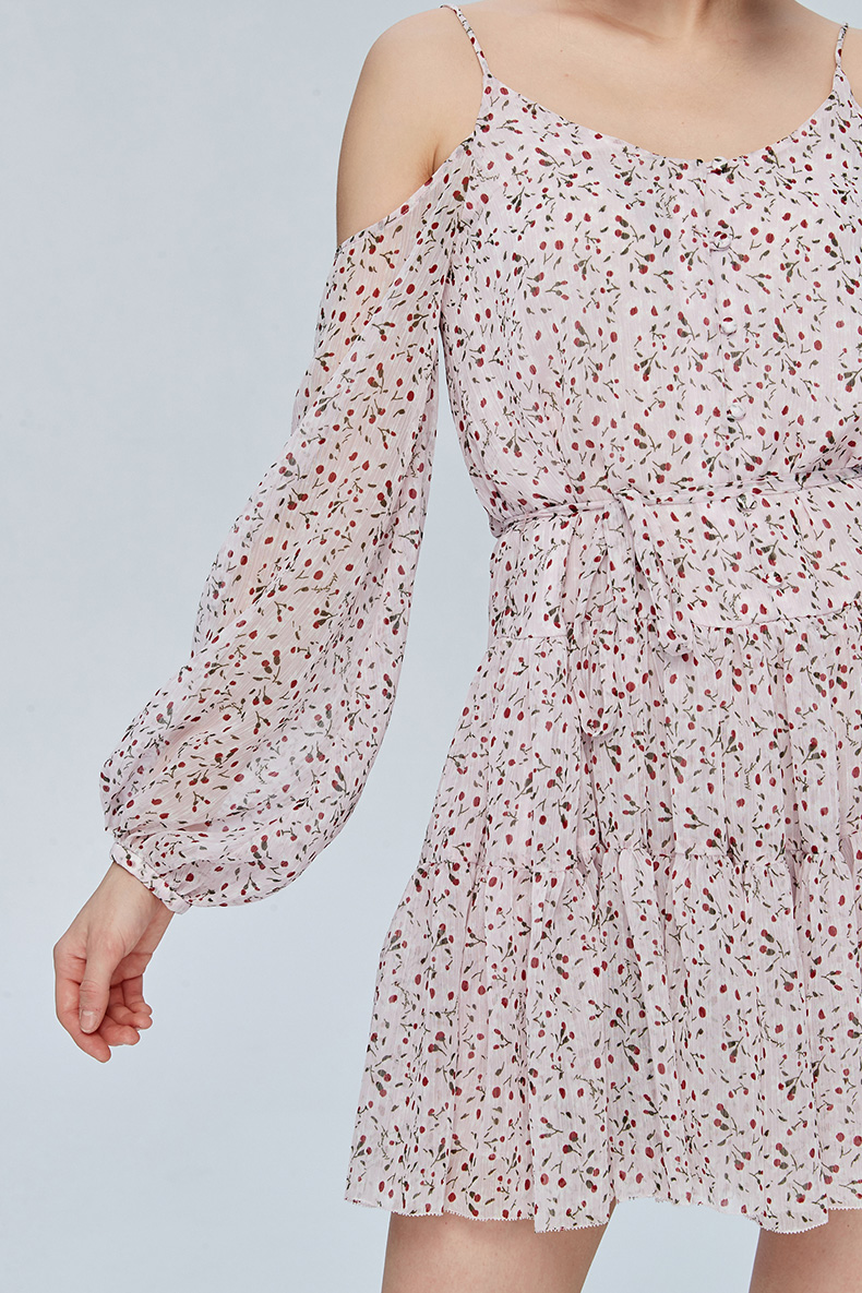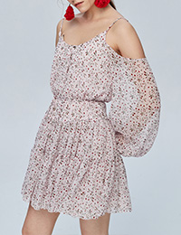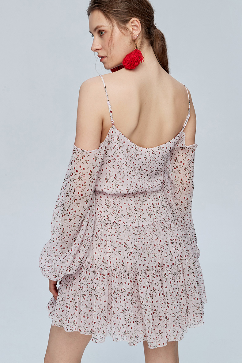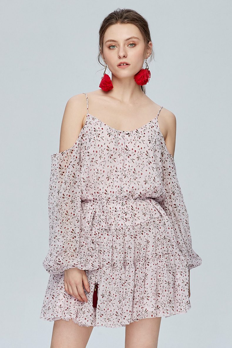 Miss Sixty吊带宽松长袖雪纺度假裙印花碎花连衣裙692DJ8260000