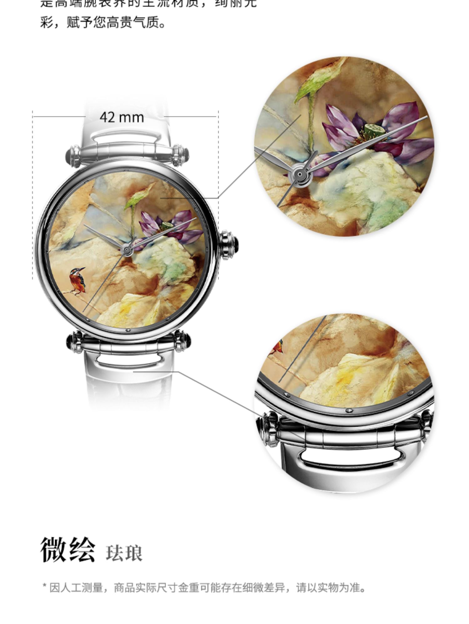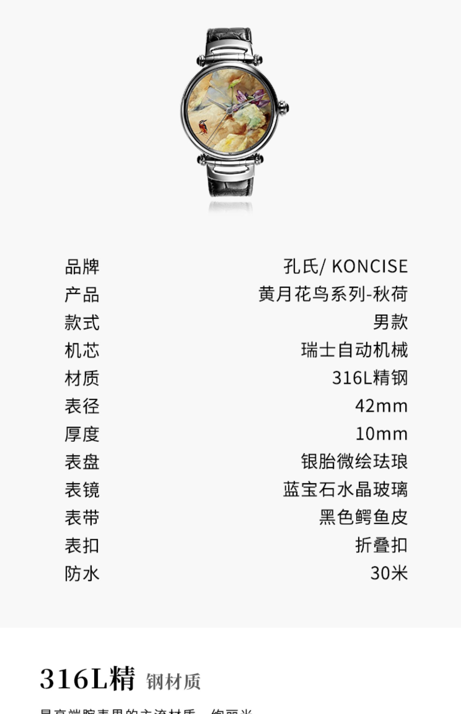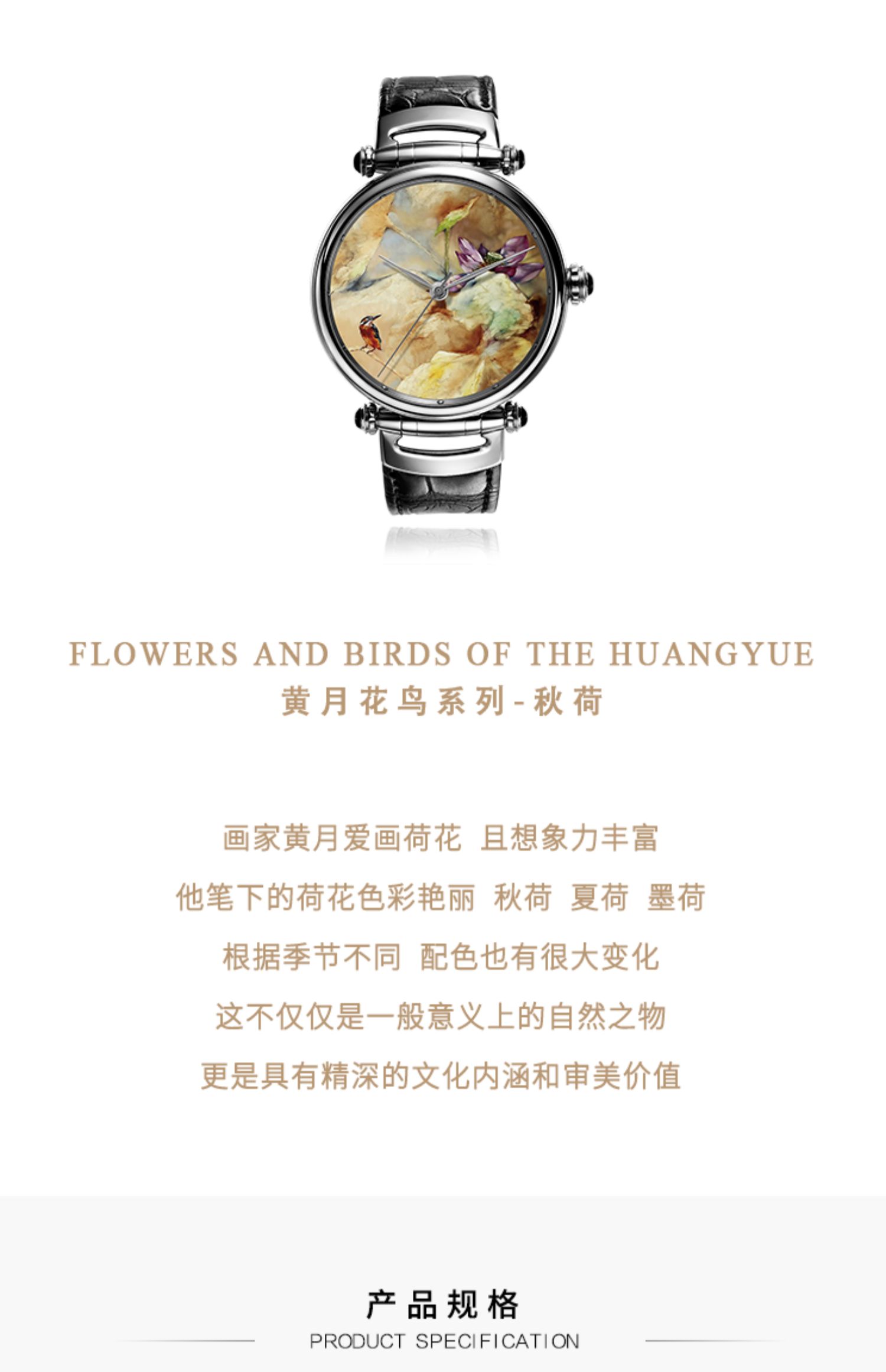 KONCISE孔氏珐琅 黄月花鸟系列-秋荷 微绘珐琅腕表