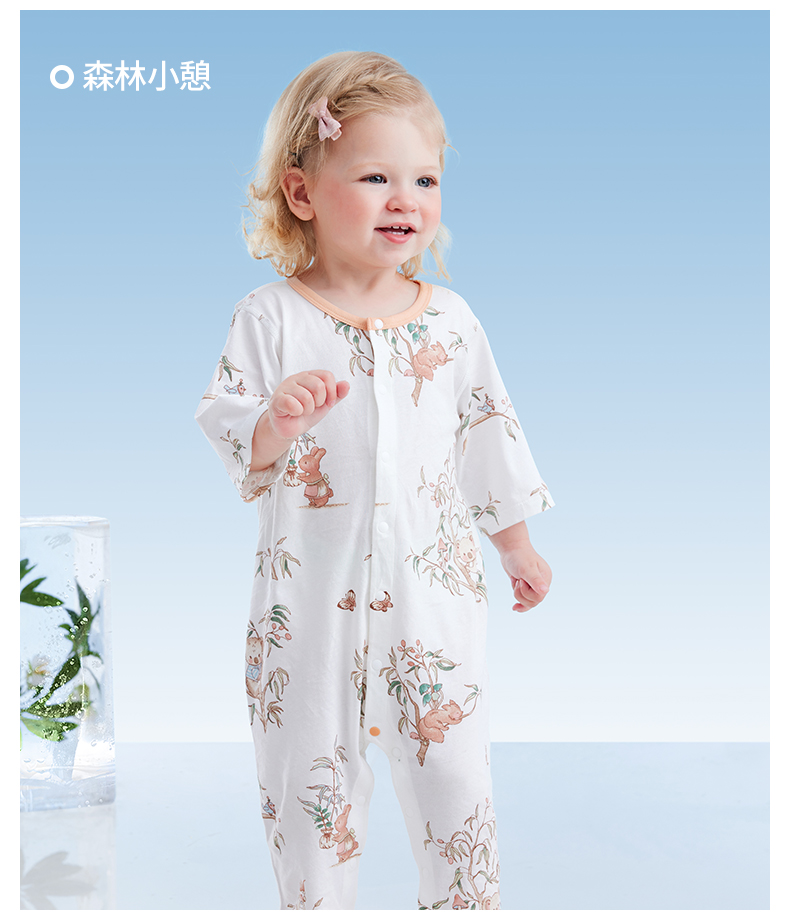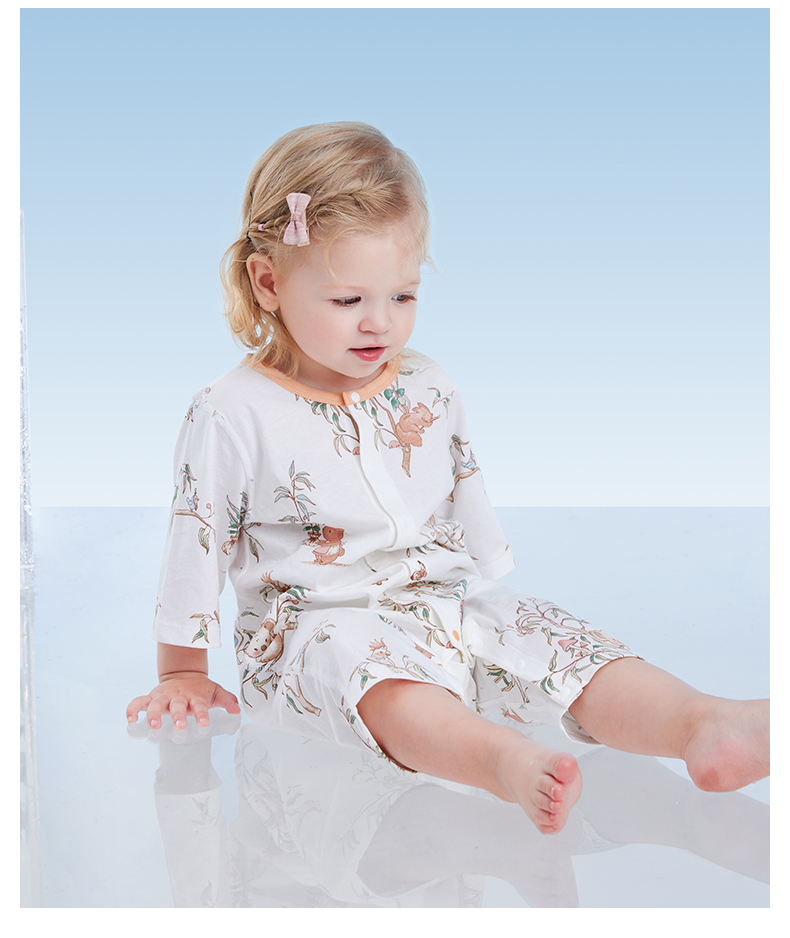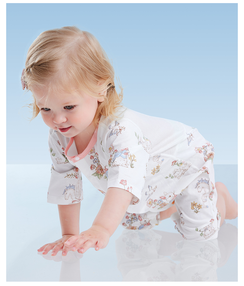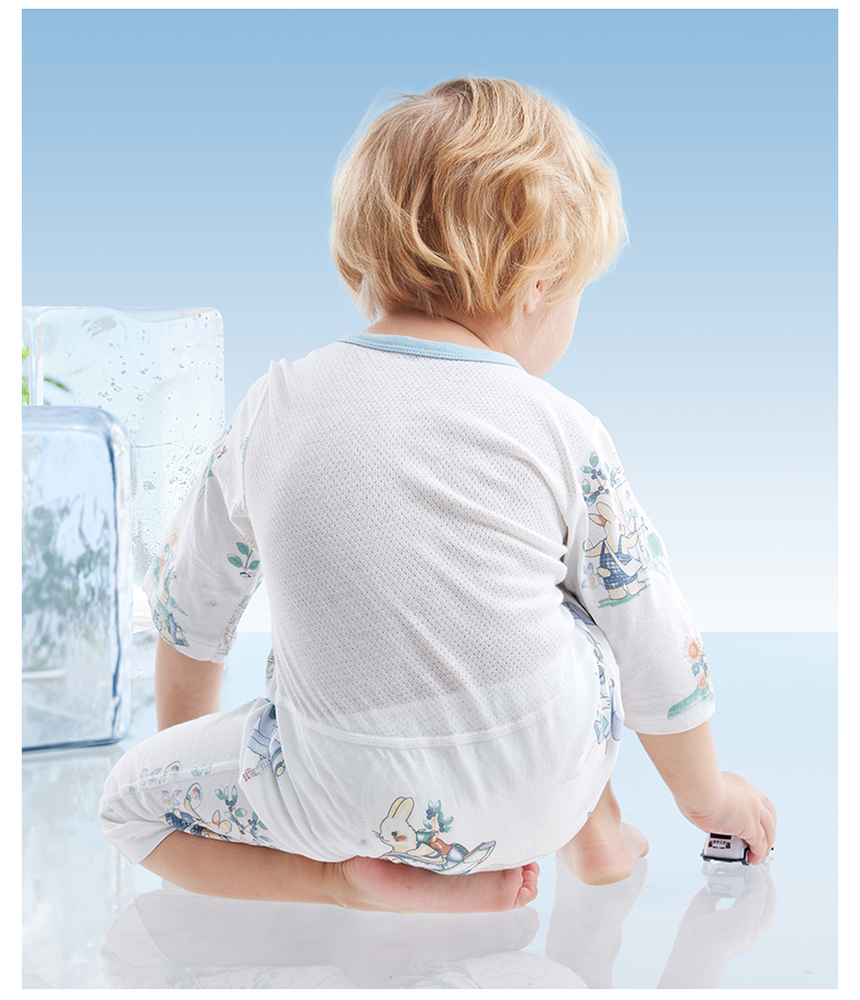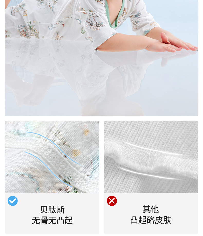 贝肽斯婴儿衣服夏季透气薄款网眼宝宝连体衣七分袖纯棉a类空调服