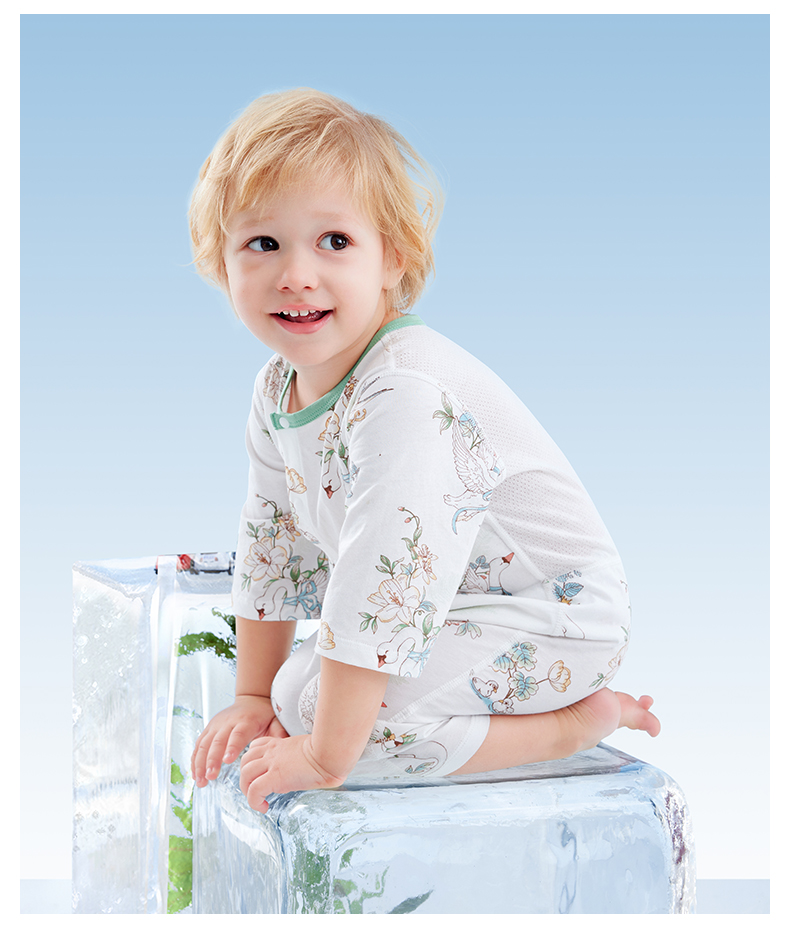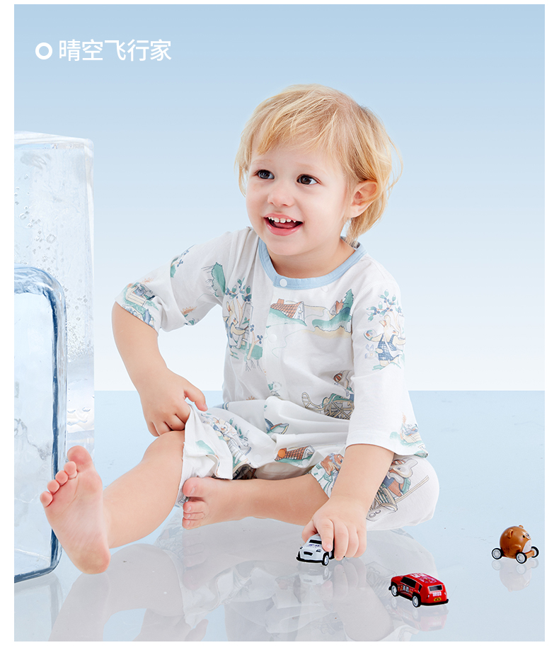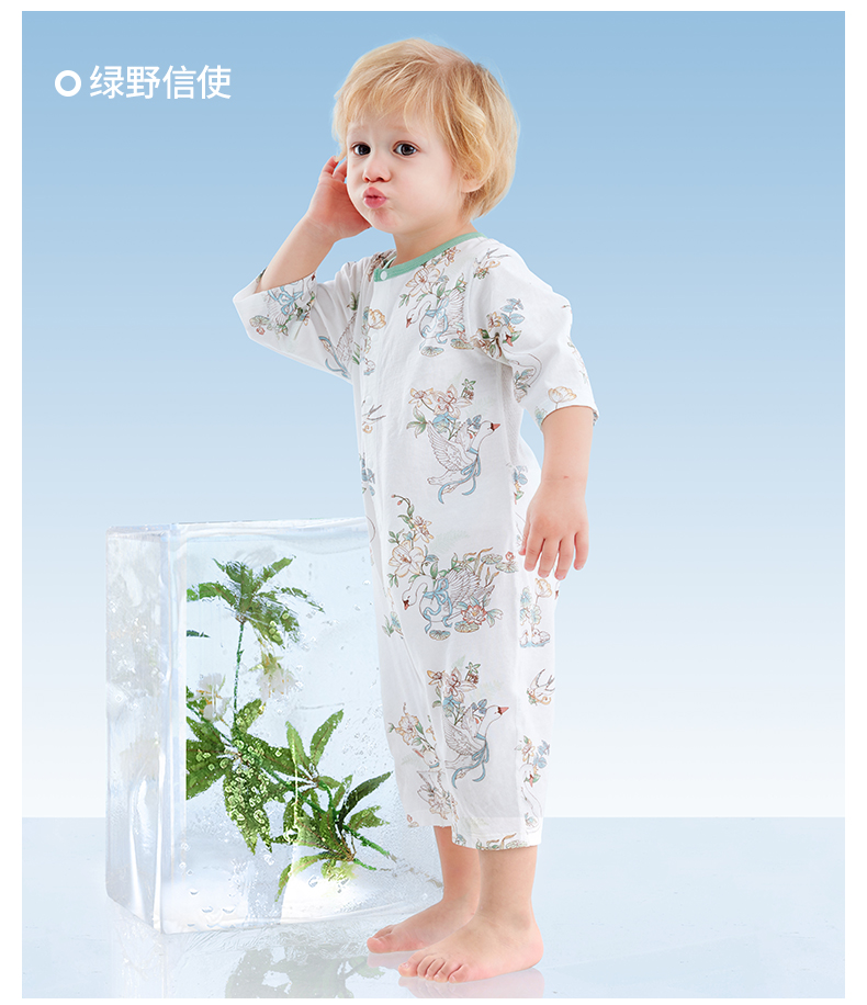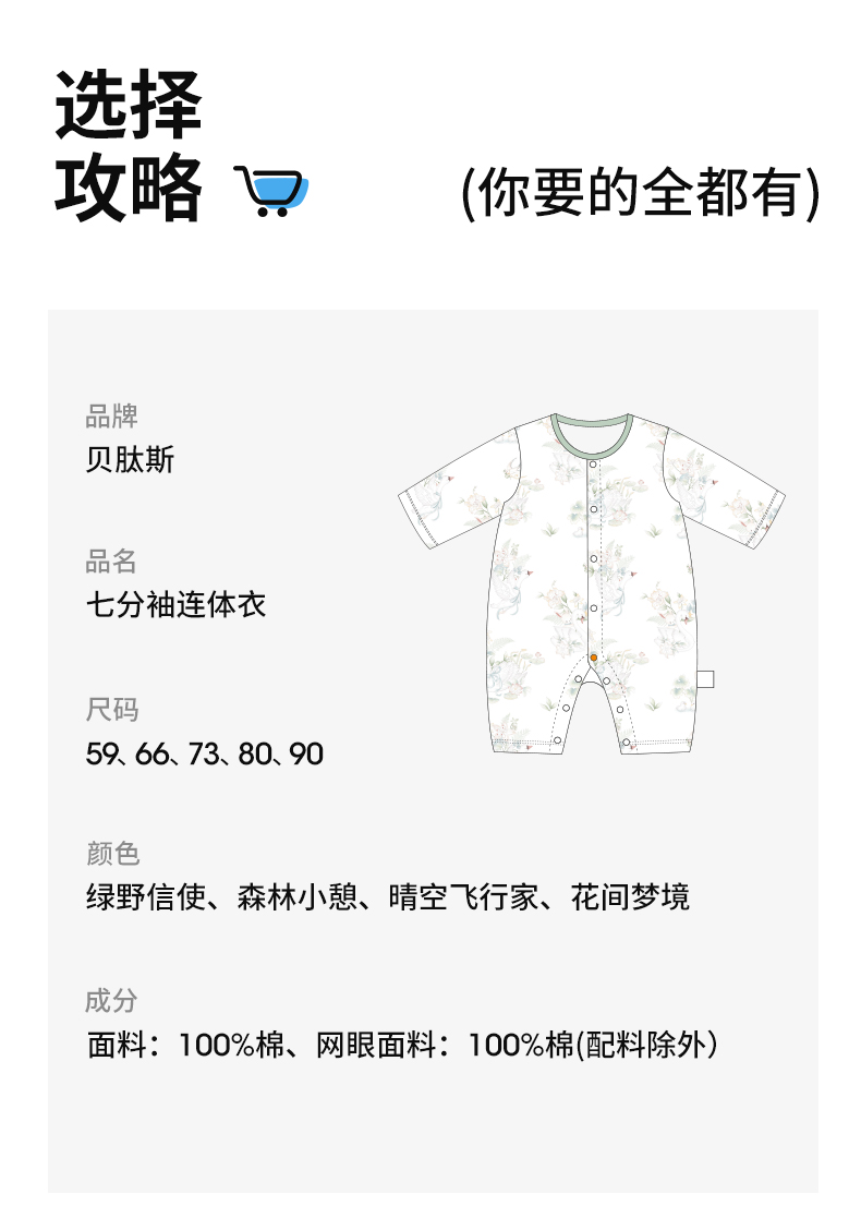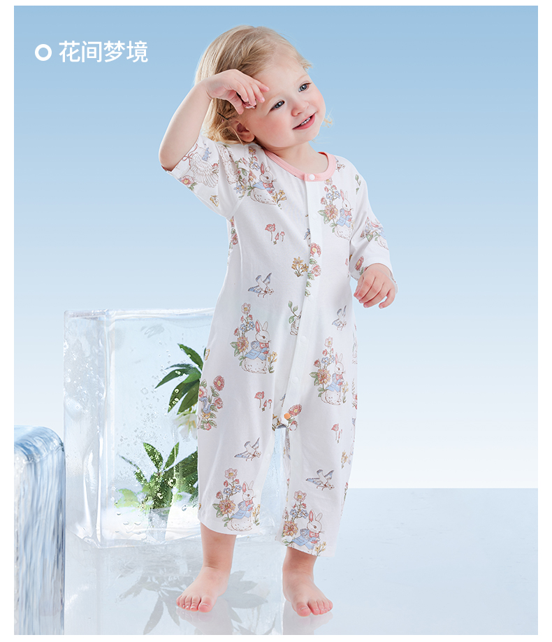 贝肽斯婴儿衣服夏季透气薄款网眼宝宝连体衣七分袖纯棉a类空调服