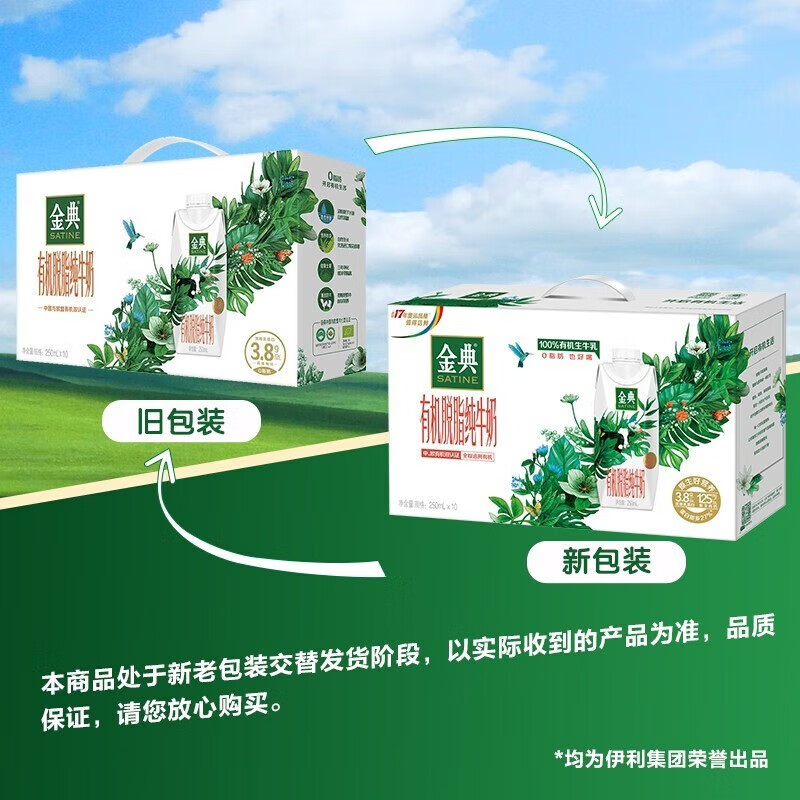 伊利 金典官方有机脱脂纯牛奶梦幻盖250ml*10瓶