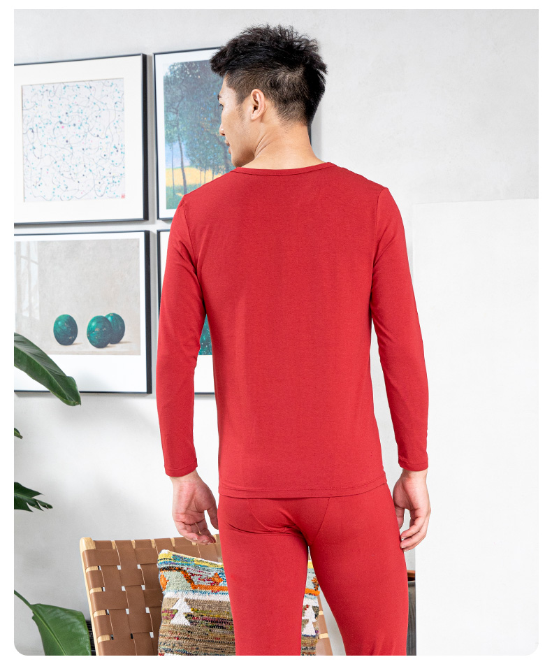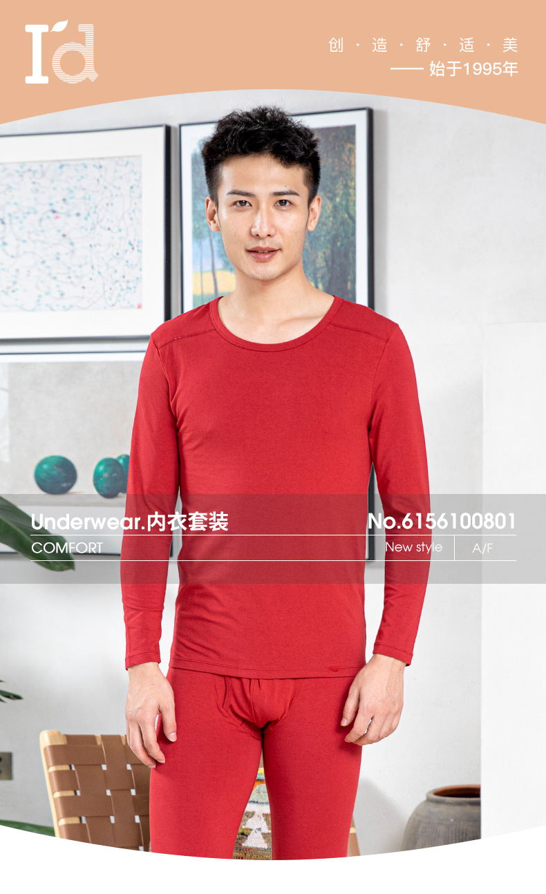 【舒肤棉套装】爱帝男士秋衣秋裤套装本命年红内衣