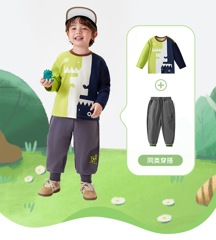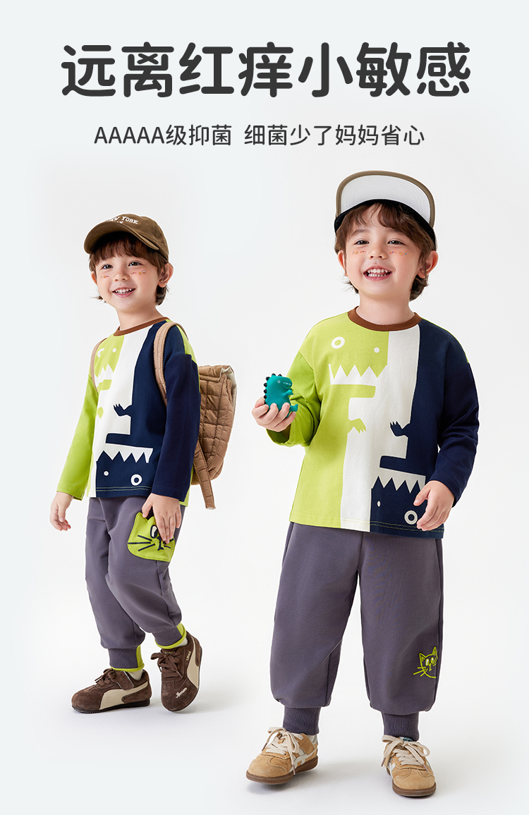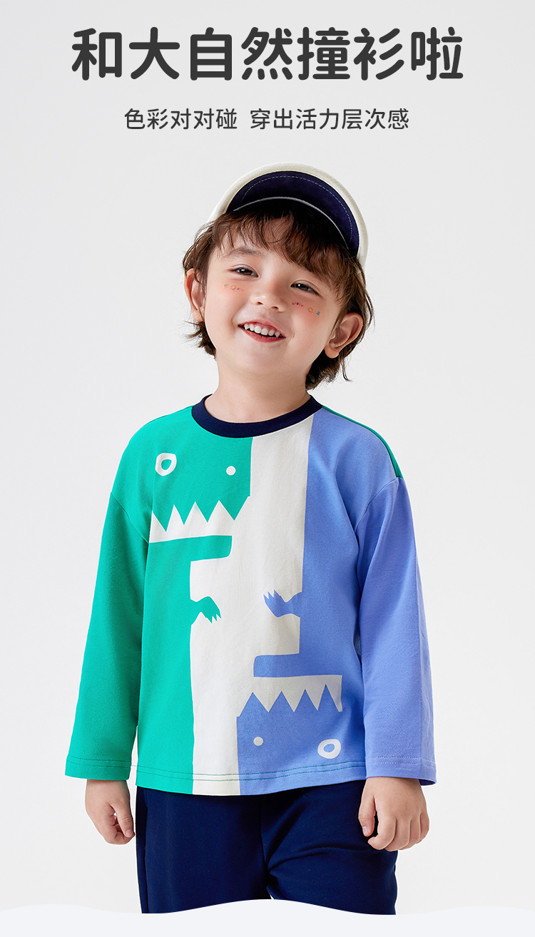 【5A抑菌】【90-140】【MQDmini】男童春秋长袖插肩袖T恤