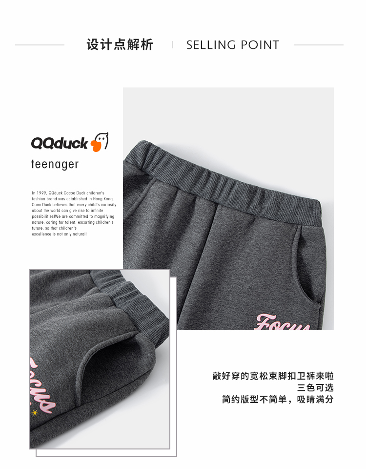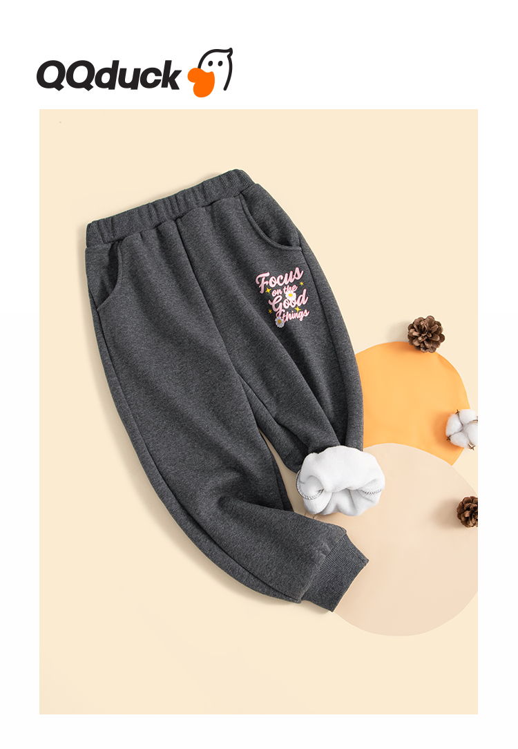 【薄绒】【QQduck可可鸭】【110-160】女童冬款百搭休闲卫裤