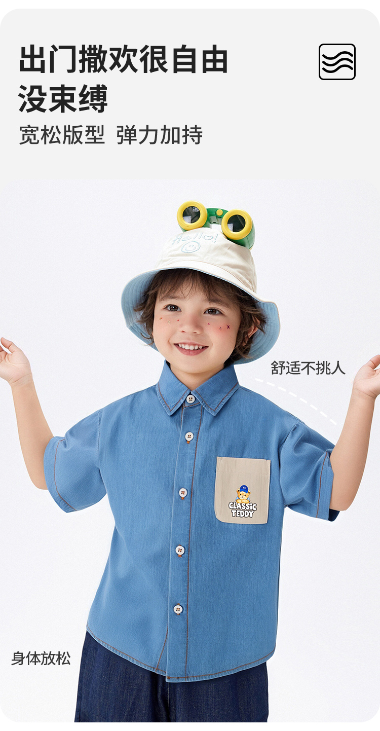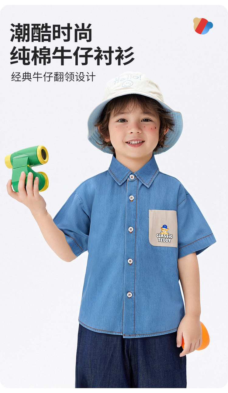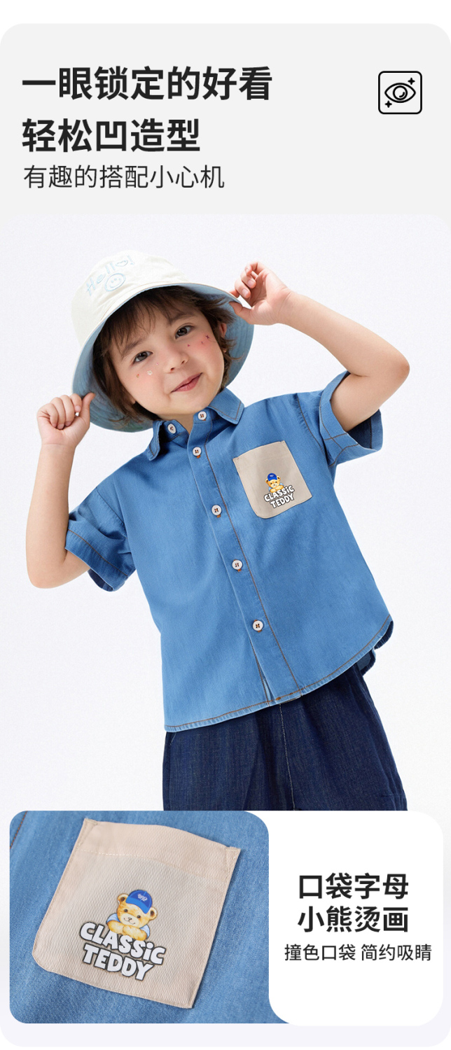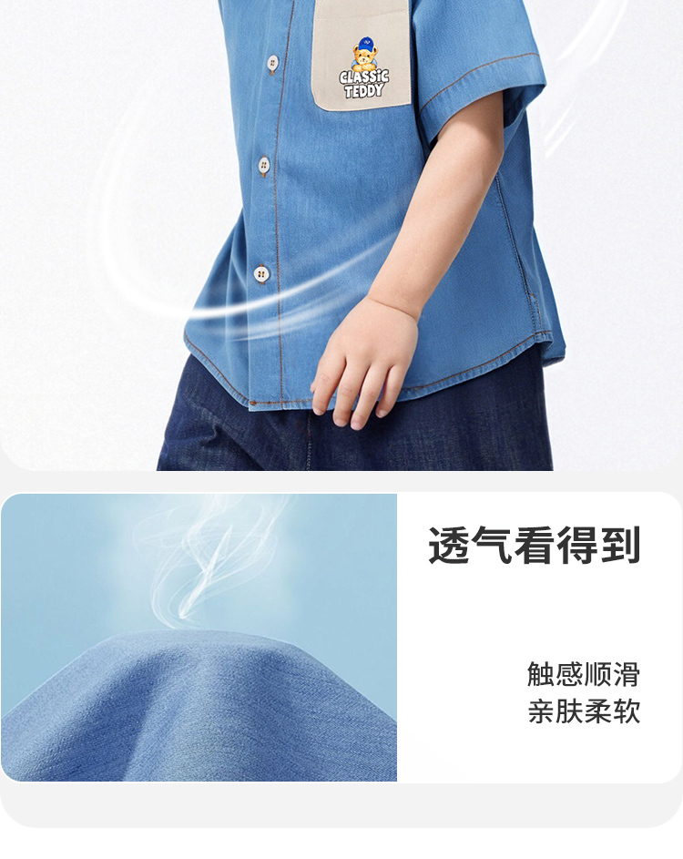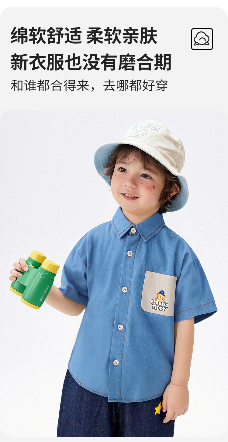 【110-140】【精典泰迪】男童夏季短袖衬衫薄款牛仔外套
