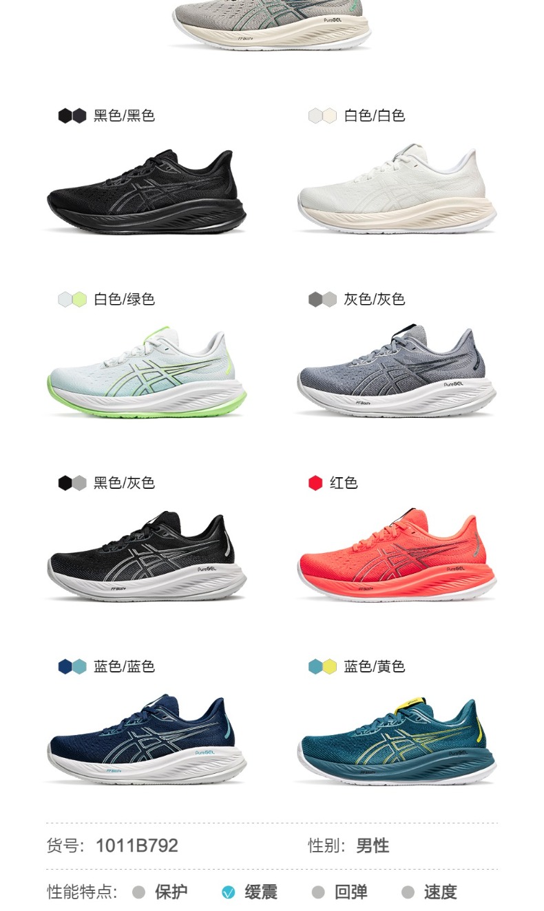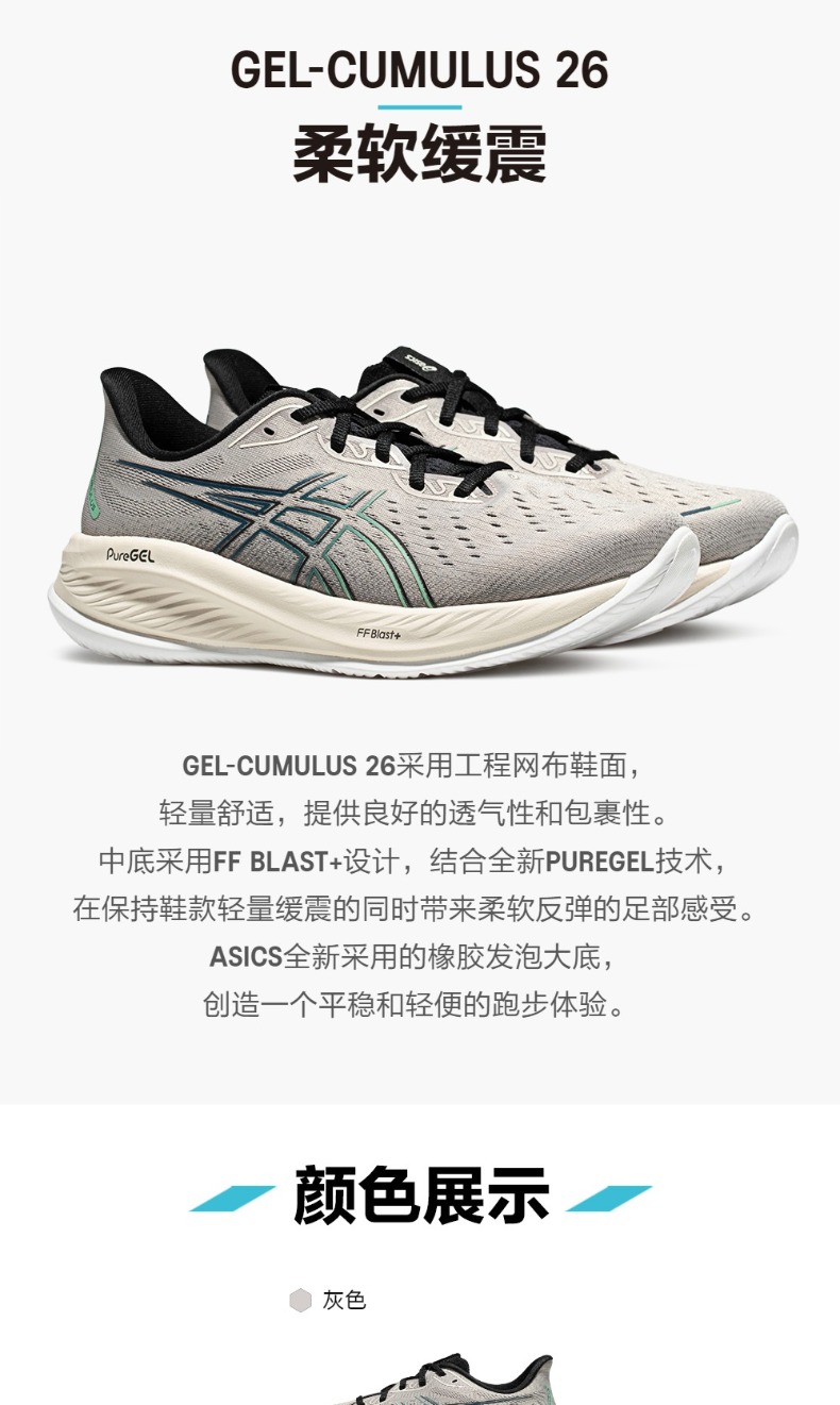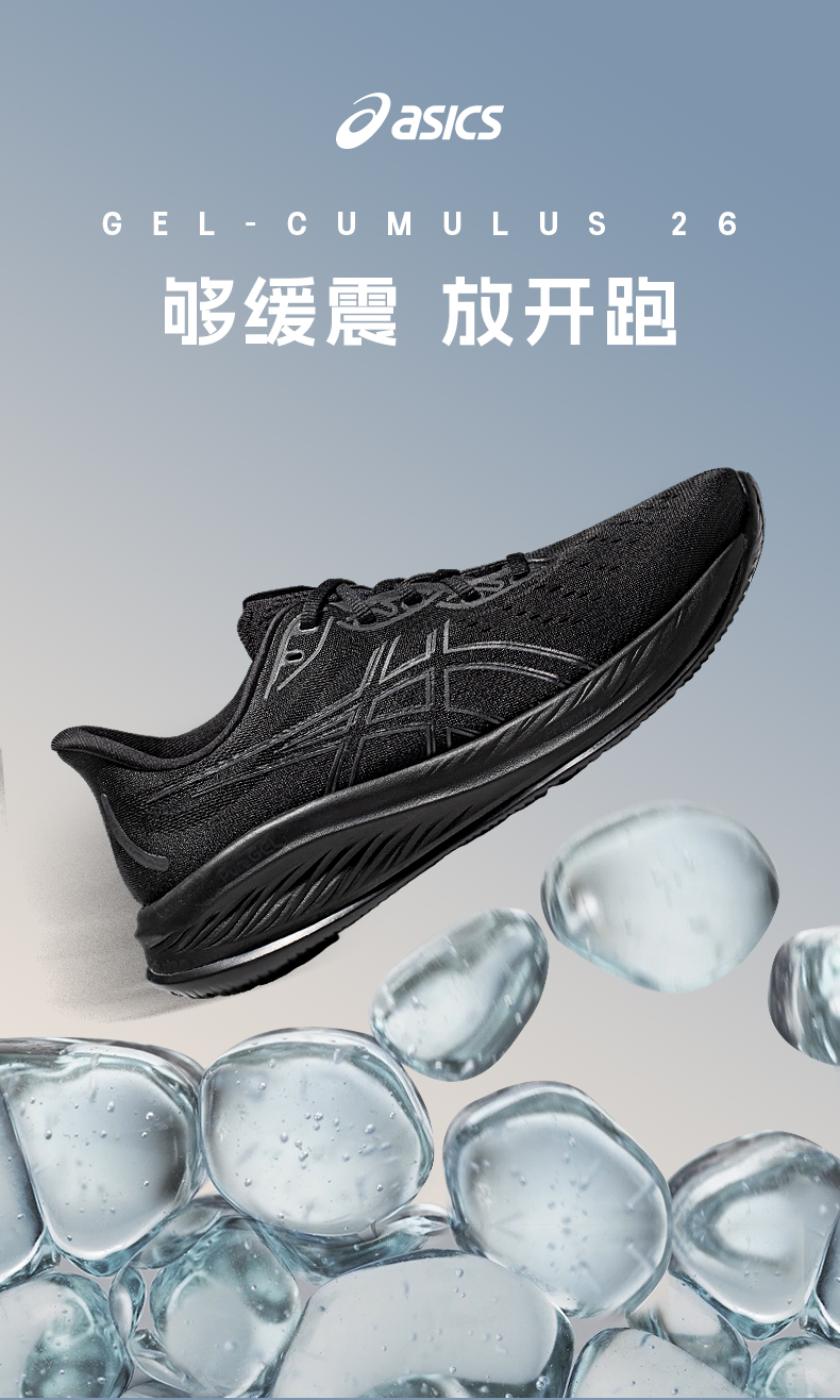 ASICS亚瑟士GEL-CUMULUS 26男子跑鞋耐磨透气轻量缓震回弹运动鞋1011B792