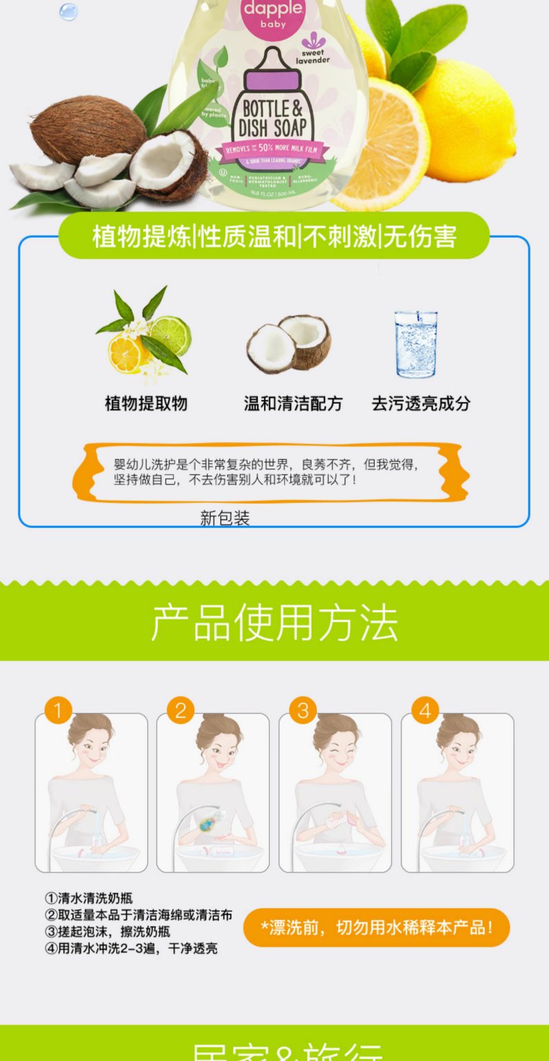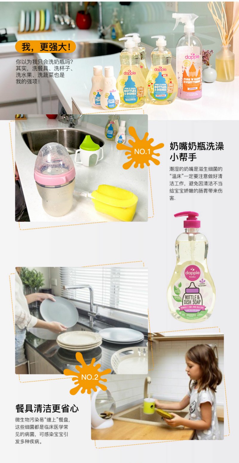 美国进口dapple达宝儿奶瓶清洗剂宝宝婴儿餐具玩具果蔬浓缩清洗液500ml