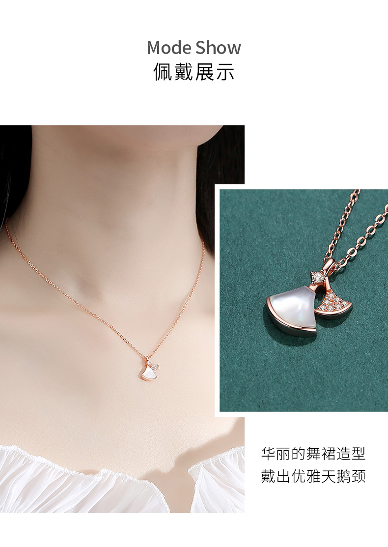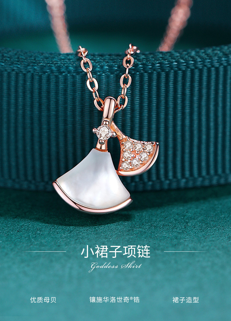 银千惠/银千惠小裙子扇形纯银贝壳项链女锁骨链白贝母扇子镶施华洛世奇锆