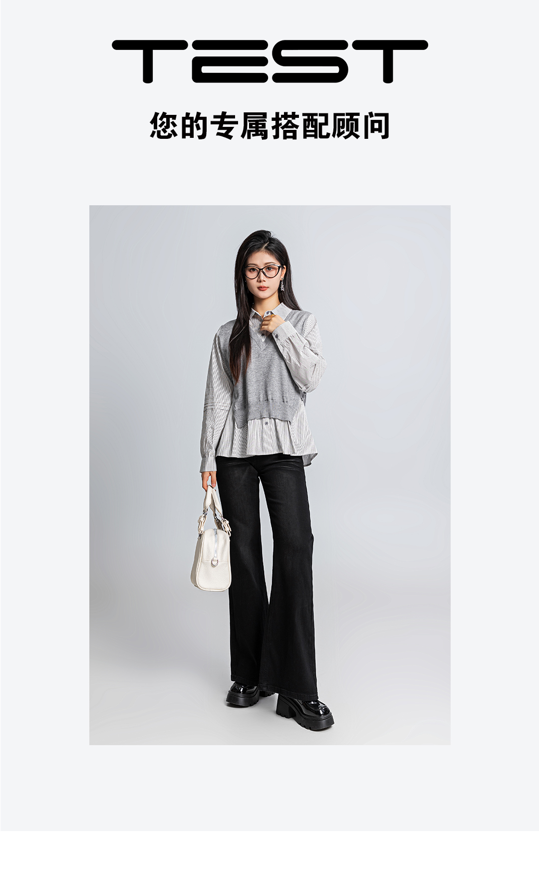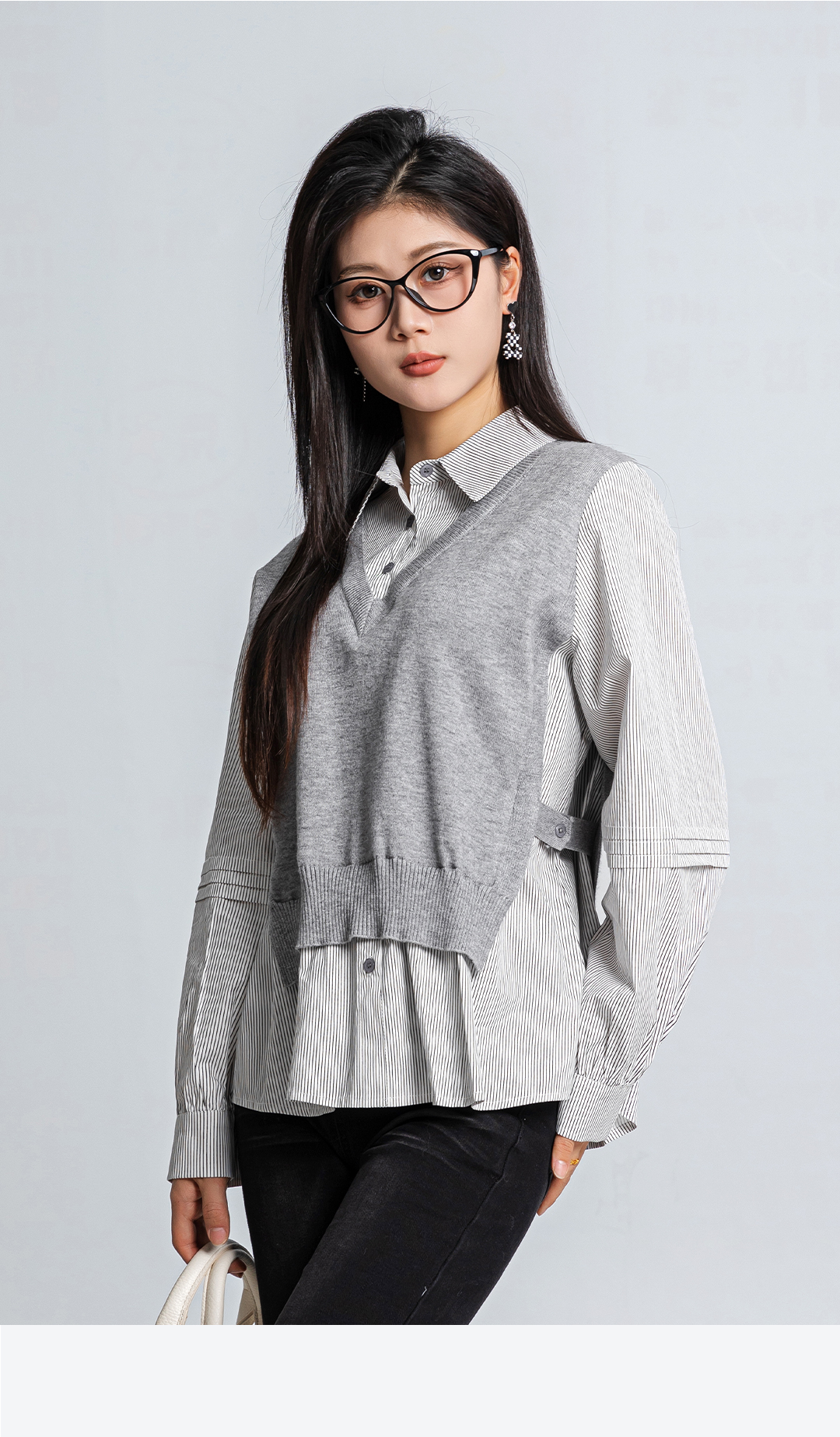 春上新层次氛围感假两件针织马甲拼接条纹宽松衬衣1261031
