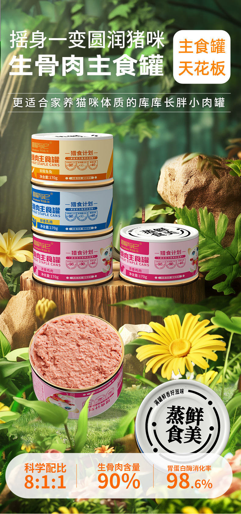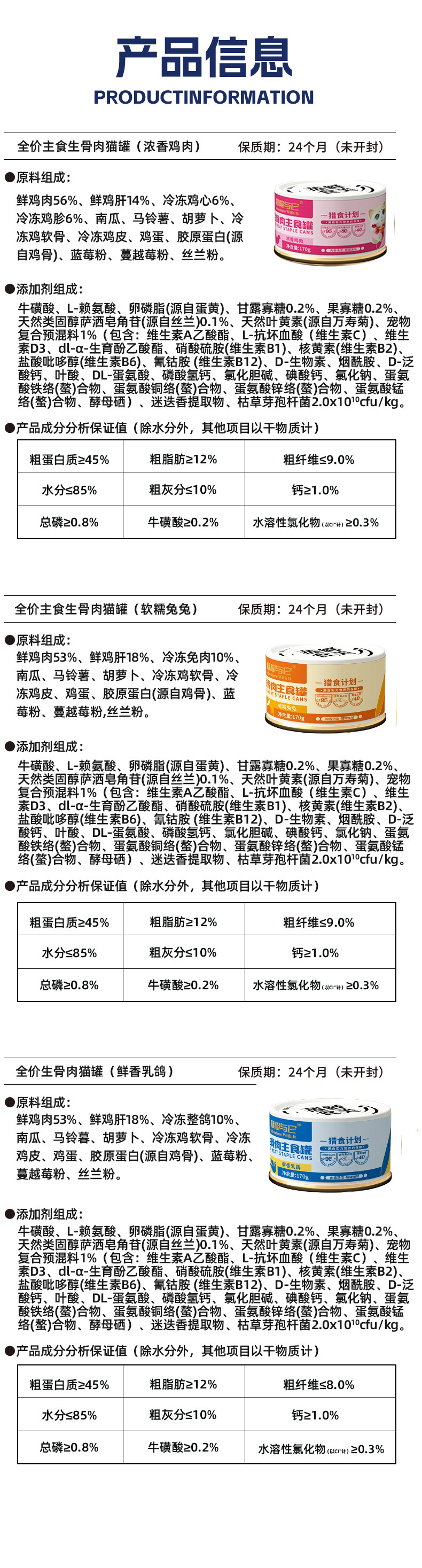 冒险与它生骨肉主食猫罐头170g兔肉乳鸽猫咪湿粮猫饭猫咪罐头批发