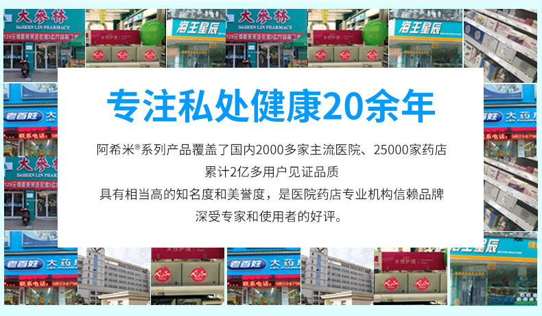 - 公司成立于2001年,专注妇科抗感染领域的研发。阿希米覆盖500多家主流医院和15000家药店,超过3亿人使用并见证了它的有效性和安全性,满足消费者不同阶段的私密护理需求,提供更全的日常私护美护产品。