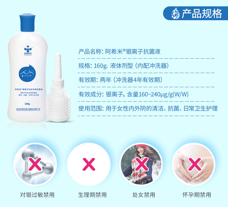 【医院同款】阿希米银离子抗菌液160ml(带冲洗器)私处抗菌清洁护理