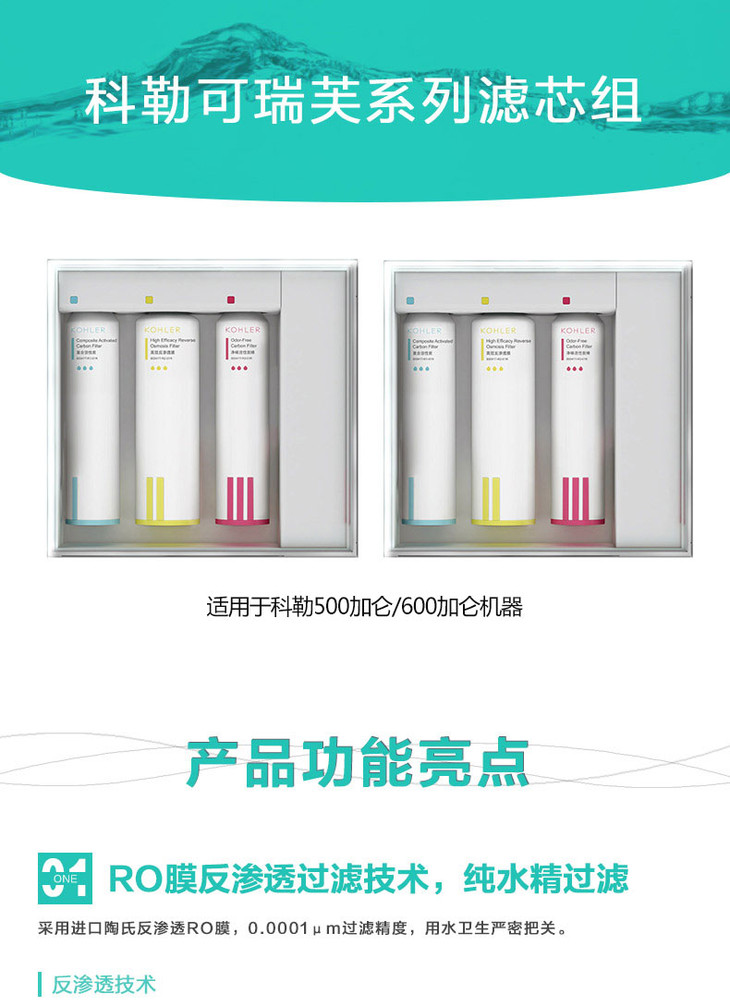 科勒(KOHLER)可瑞芙净水器KP060整套三支滤芯加常换两只共5只滤芯组合