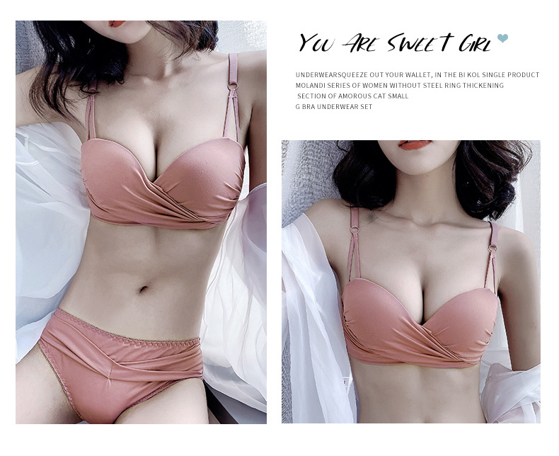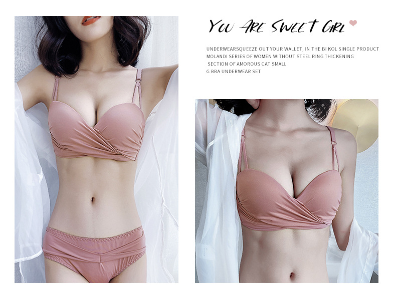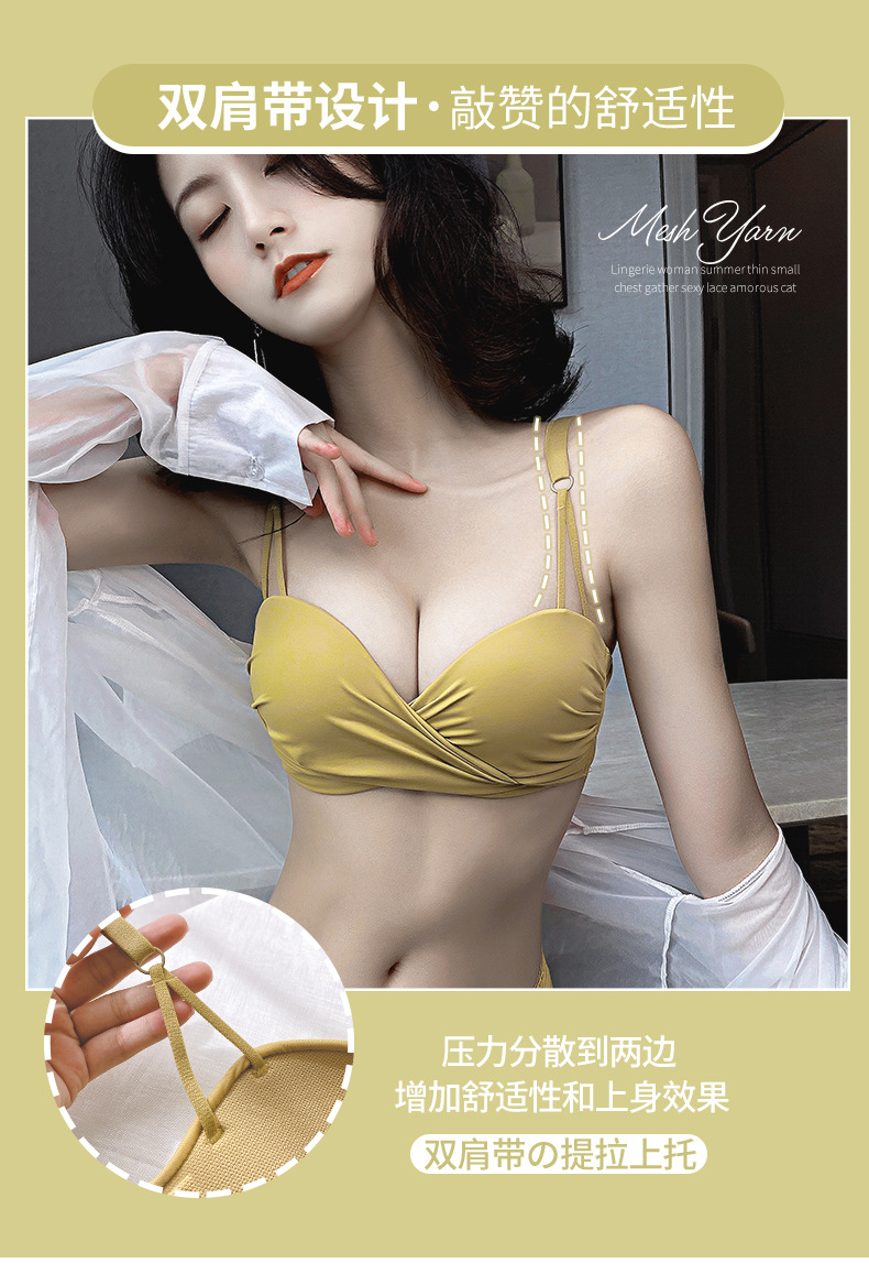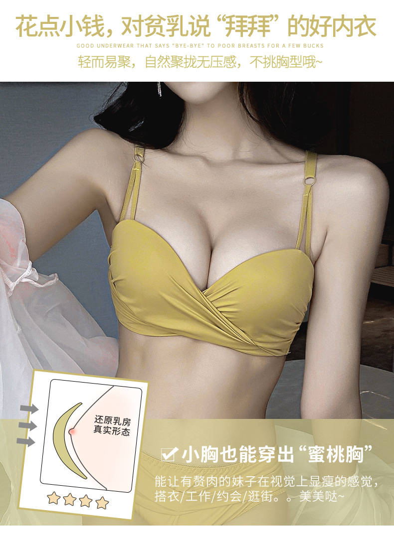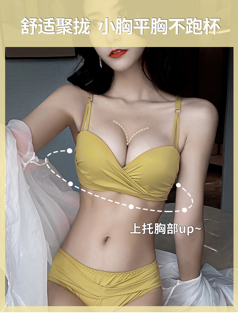 无痕内衣女无钢圈聚拢少女小胸显大平胸专用性感文胸罩套装加厚